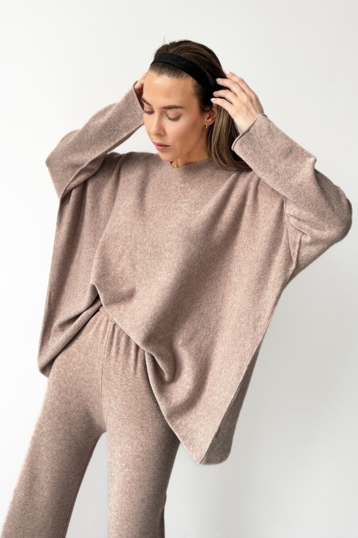Casualowy dzianinowy komplet z szerokimi spodniami Serene burgund