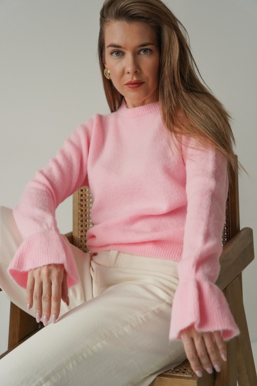 Sweter z falbankami baby alpaka i wełna dziewicza Elia baby pink