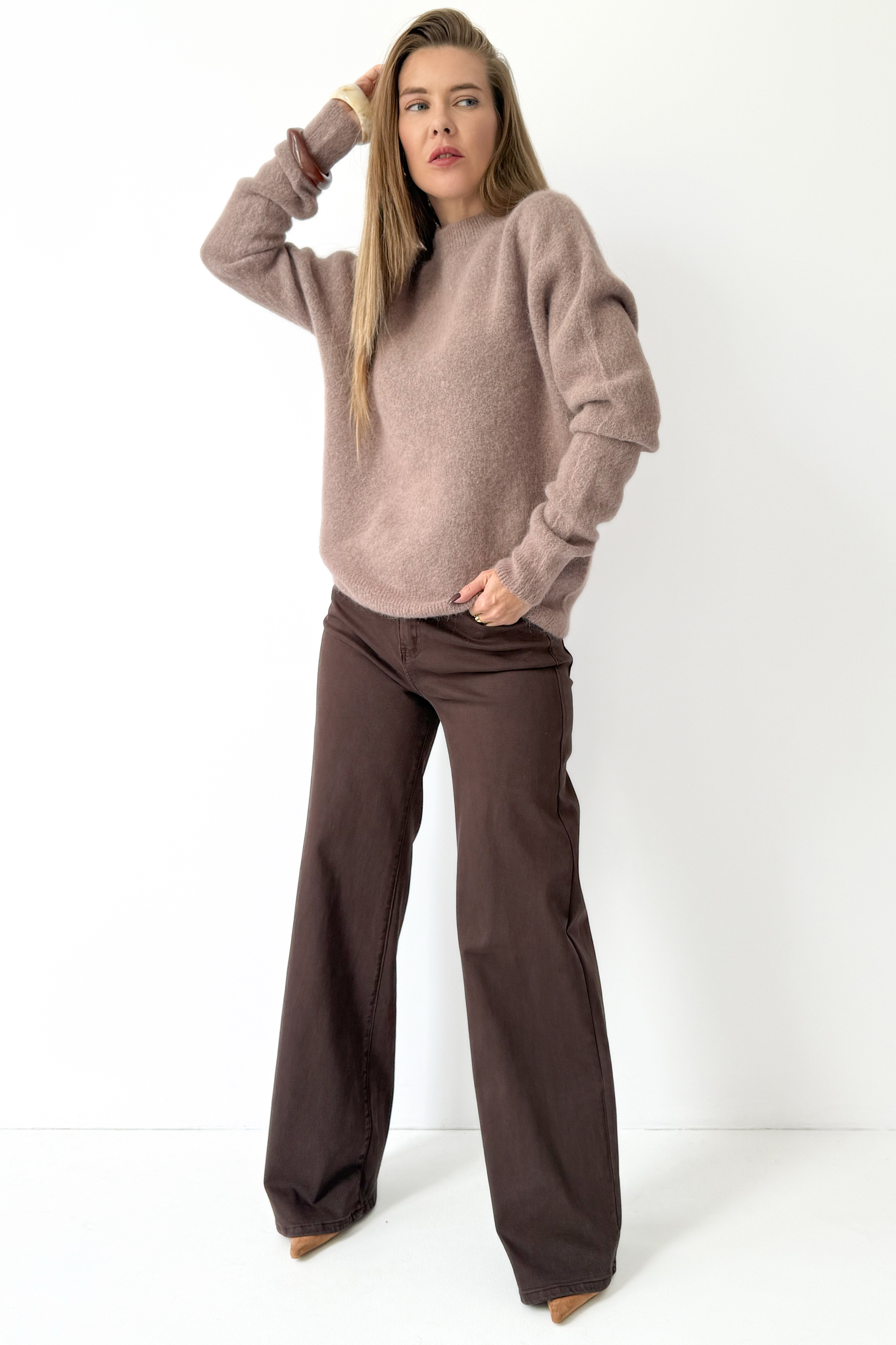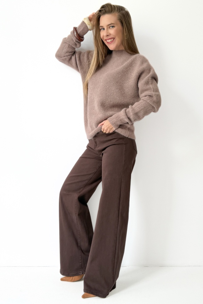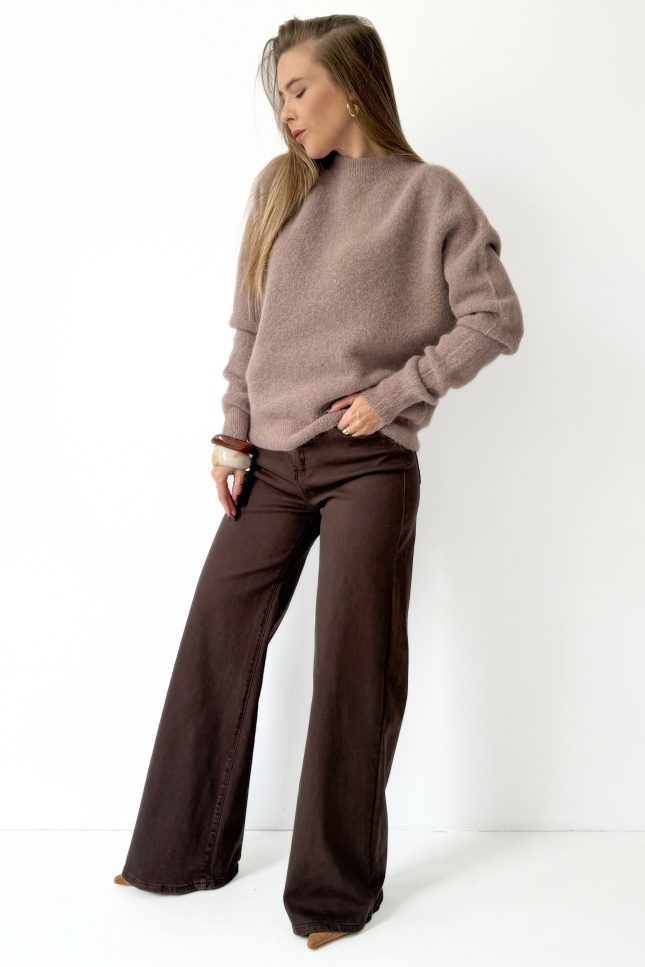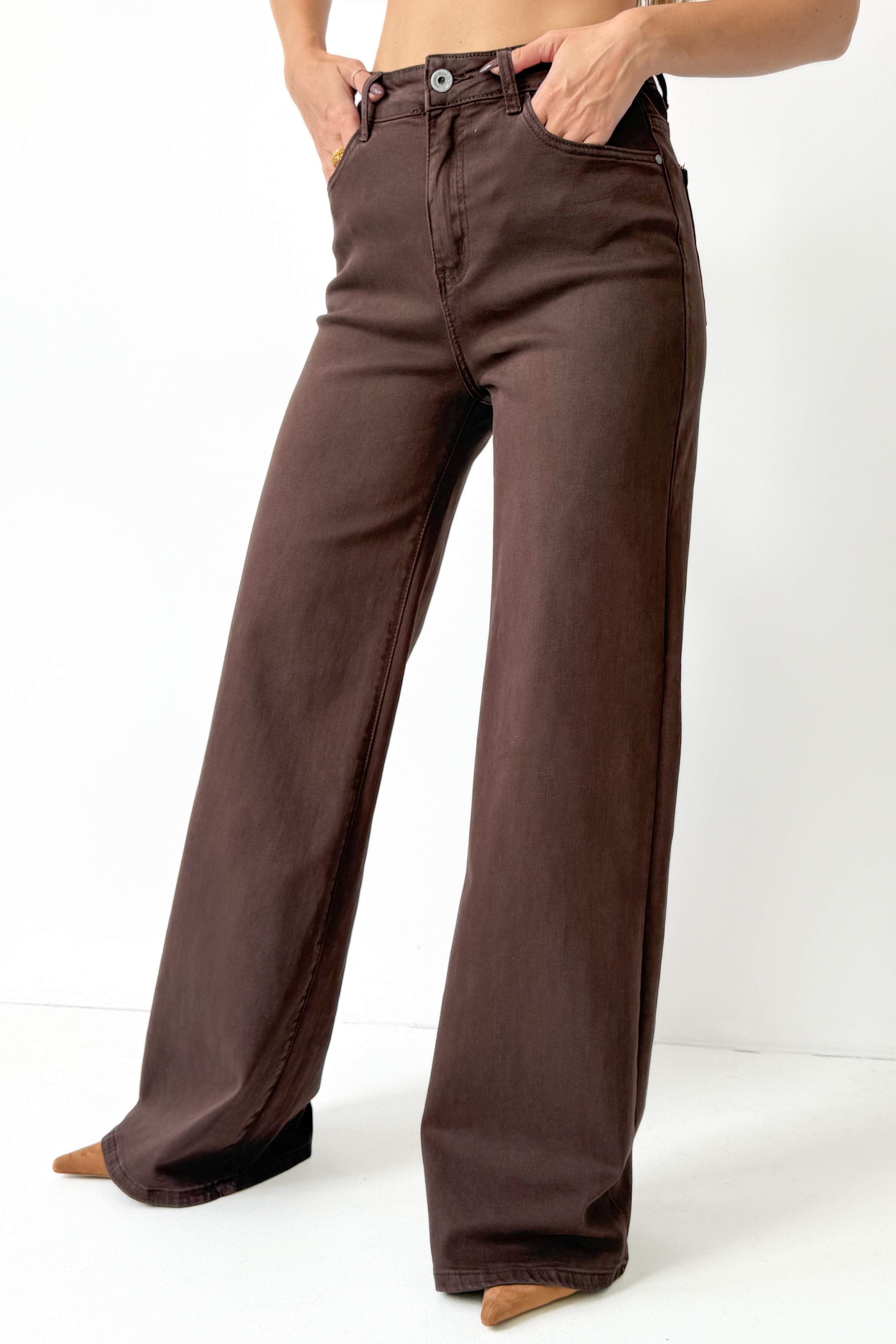 Jeansy „MAE” – nowoczesny komfort w czekoladowym tonie