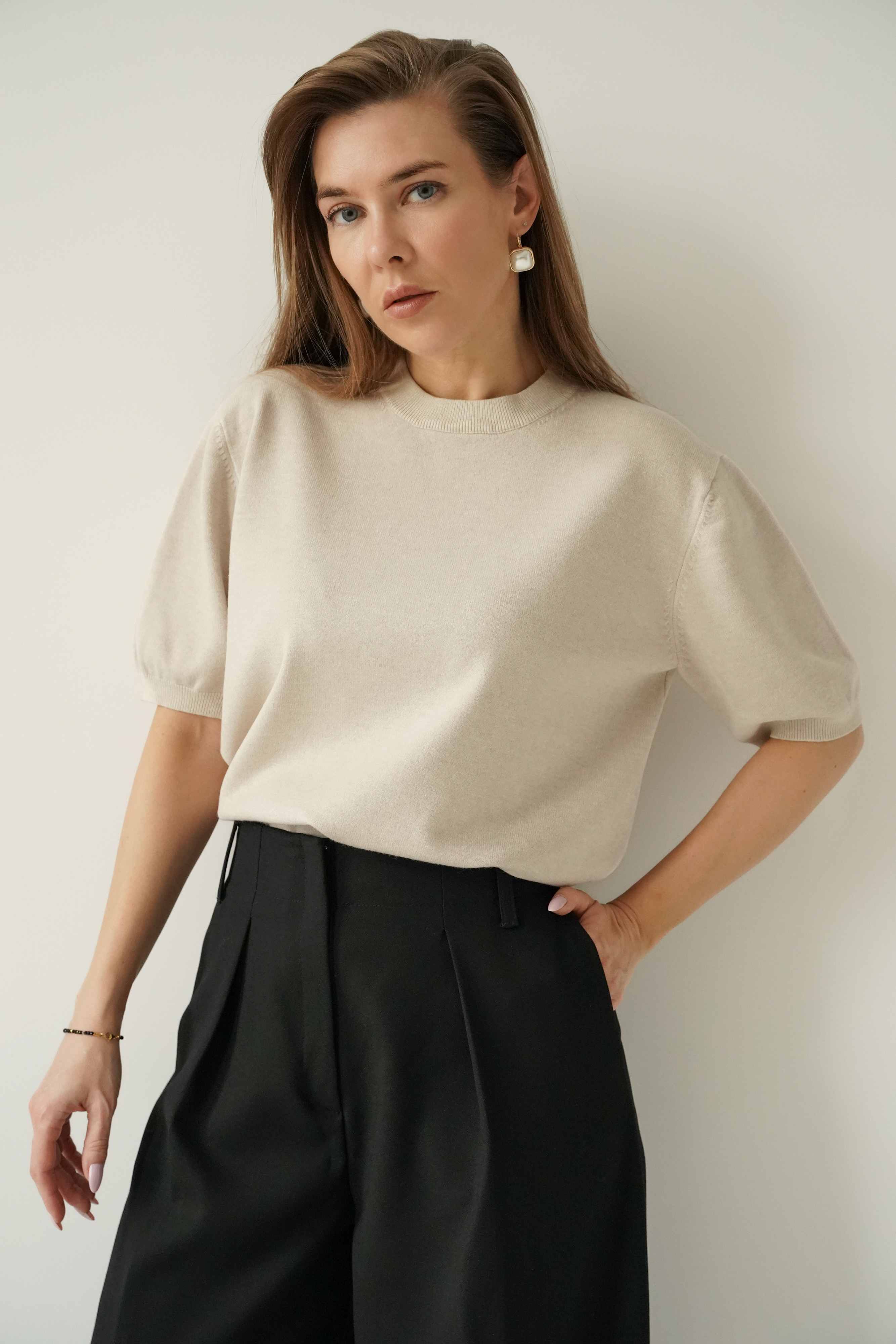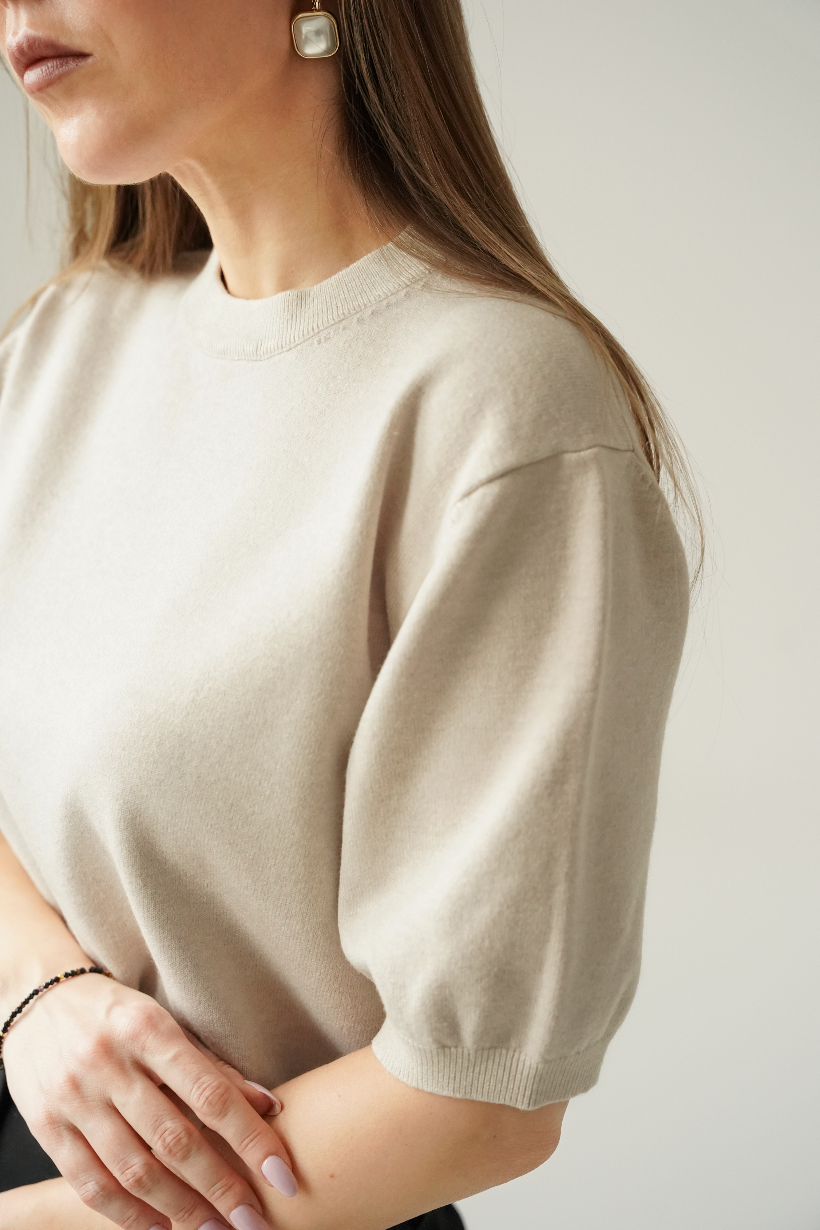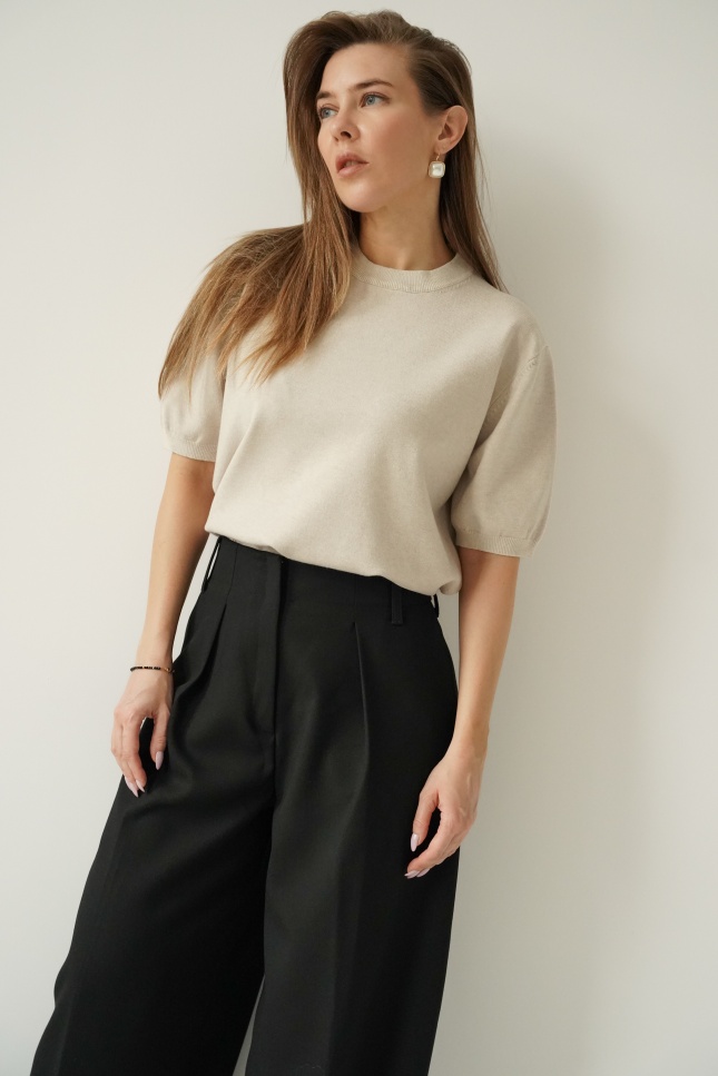 Elagancki sweterek z krótkim rękawem Amelia beżowy