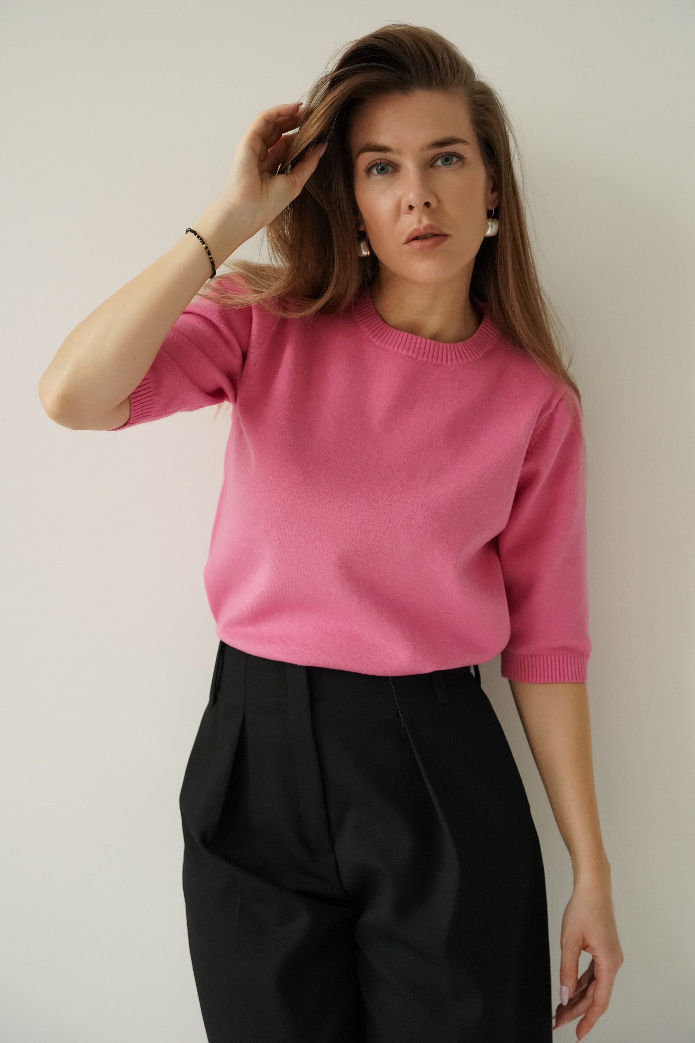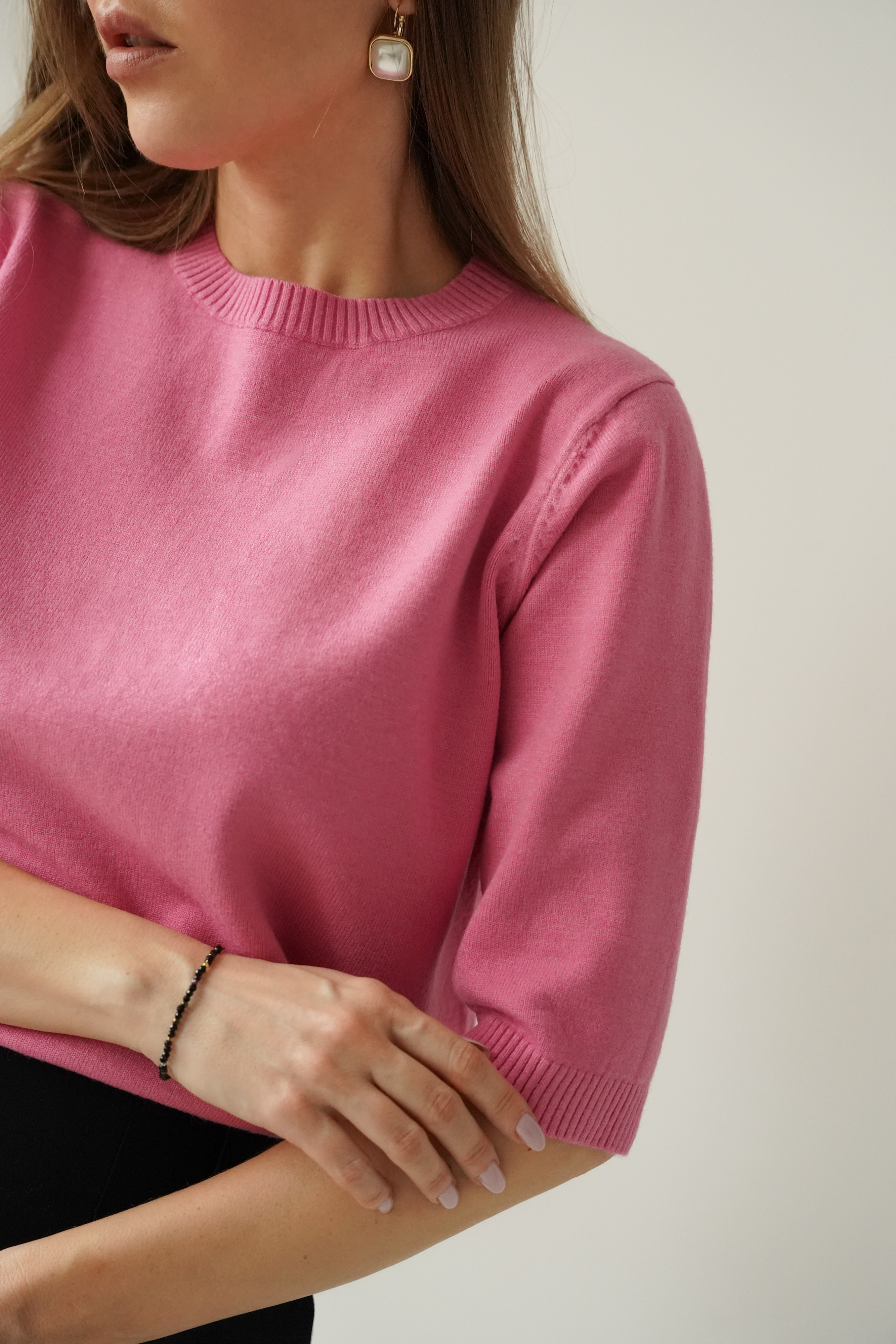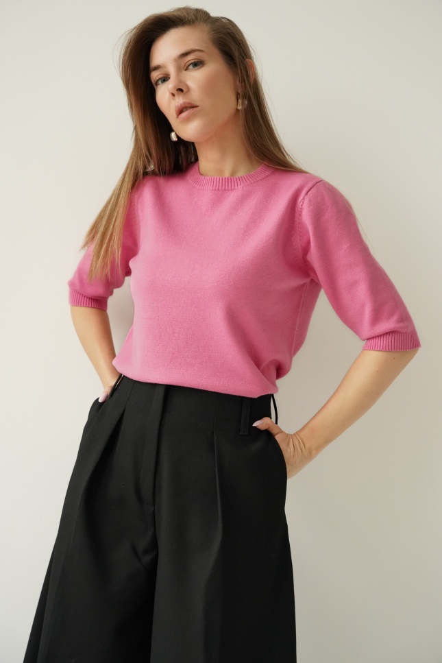 AMÉLIA to klasyczny sweterek z krótkim rękawem, wykonany z miękkiej, oddychającej przędzy z wiskozy (48%) i bawełny (40%). Lekki, przyjemny dla skóry, idealny do codziennych i eleganckich stylizacji. Ponadczasowy fason inspirowany paryskim stylem.