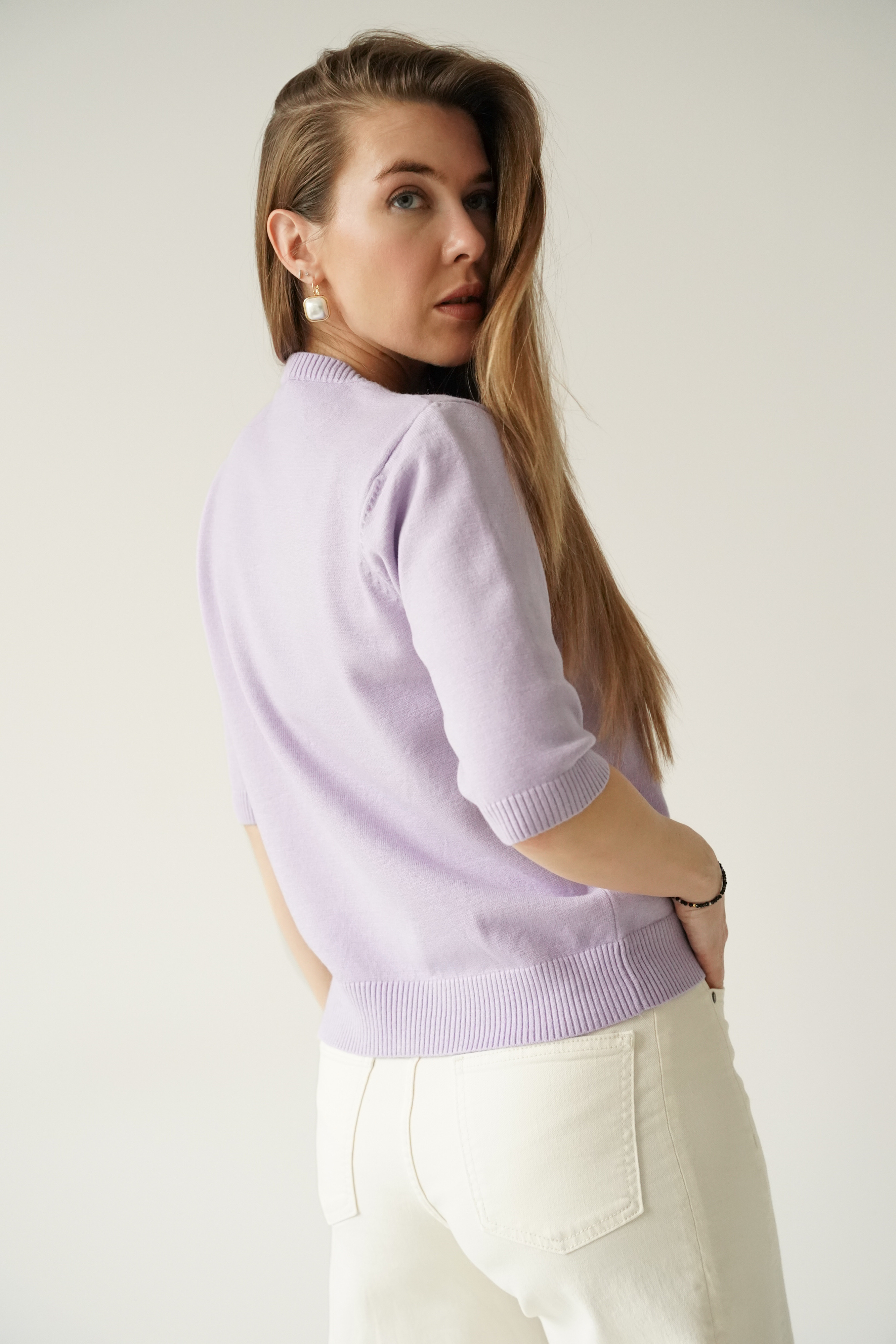 Elagancki sweterek z krótkim rękawem Amelia lila