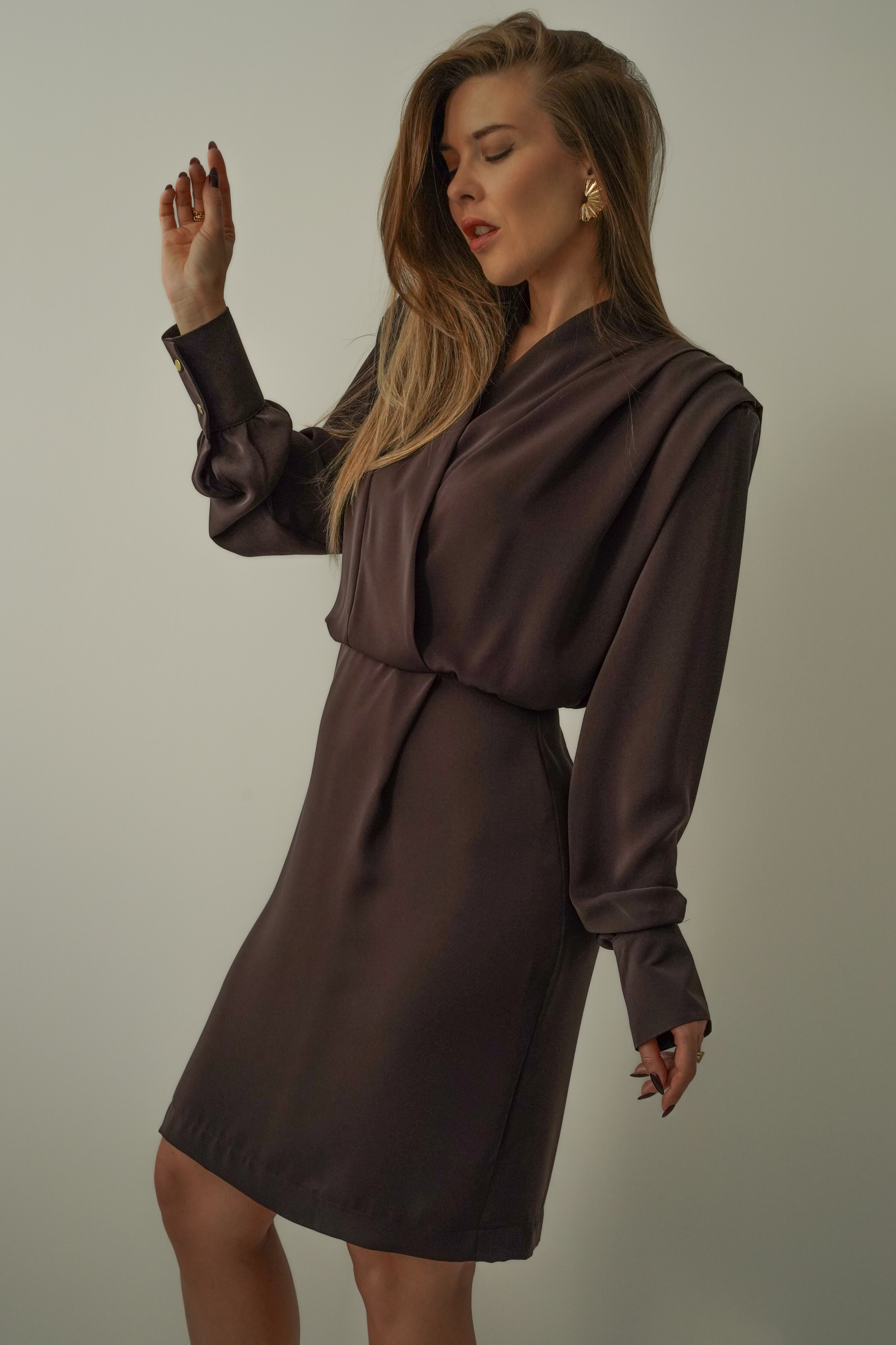 Sukienka Éloise to kwintesencja paryskiej elegancji — minimalistyczna, z kopertowym dekoltem, wzmocnioną linią ramion oraz mankietami, które dodają jej wyrafinowanej struktury. Nowoczesna, kobieca, idealna na każdą okazję, gdy chcesz wyglądać szykownie i z klasą.