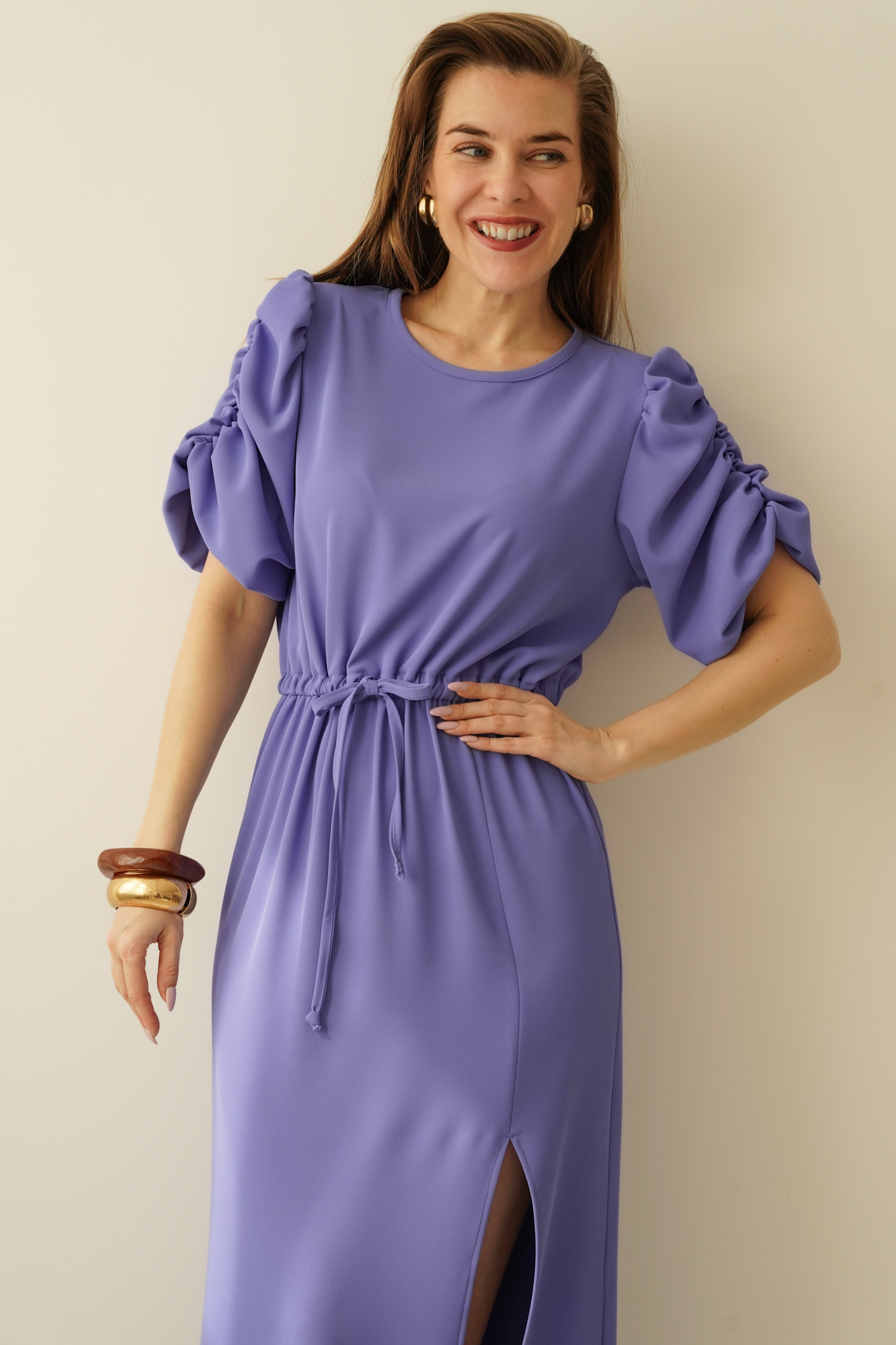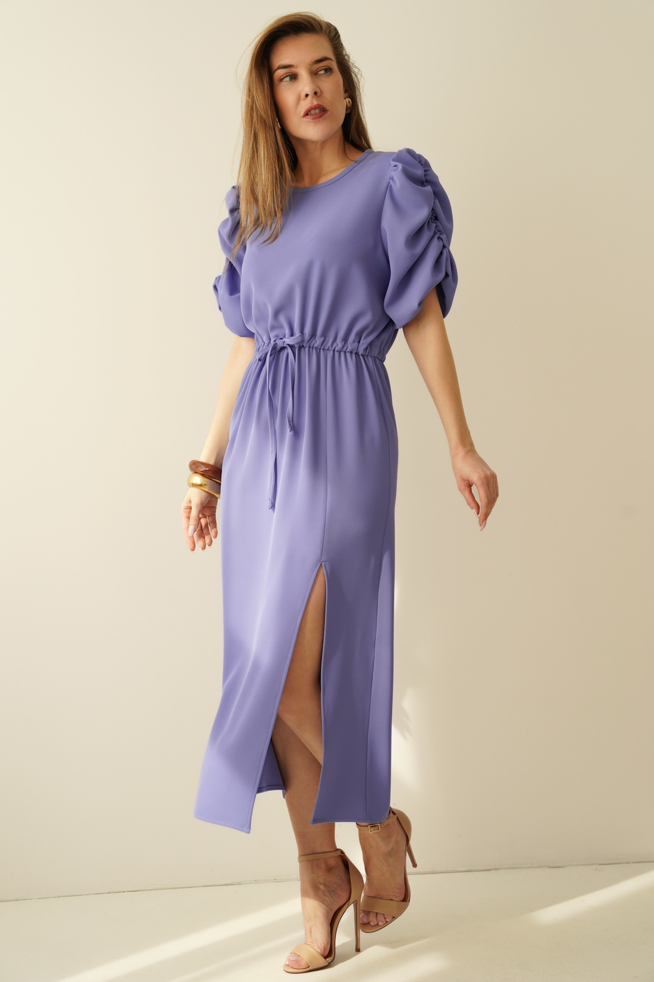 Celine to elegancka sukienka damska z charakterystycznymi bufiastymi rękawkami, która łączy ponadczasową kobiecość z nowoczesną formą. Uszyta w polskiej szwalni, zachwyca dopracowanym fasonem i uniwersalnym charakterem. Doskonale sprawdzi się na ważne uroczystości, do pracy oraz na co dzień w stylizacjach premium casual. To model dla kobiet ceniących elegancję, jakość wykonania i modowe detale, które pozostają актуalne przez wiele sezonów.