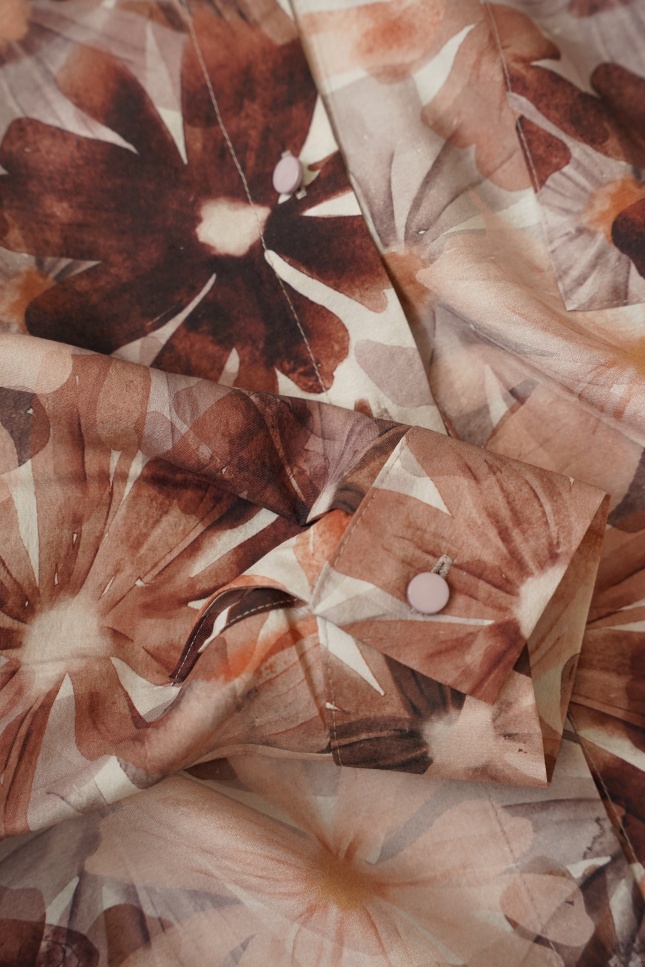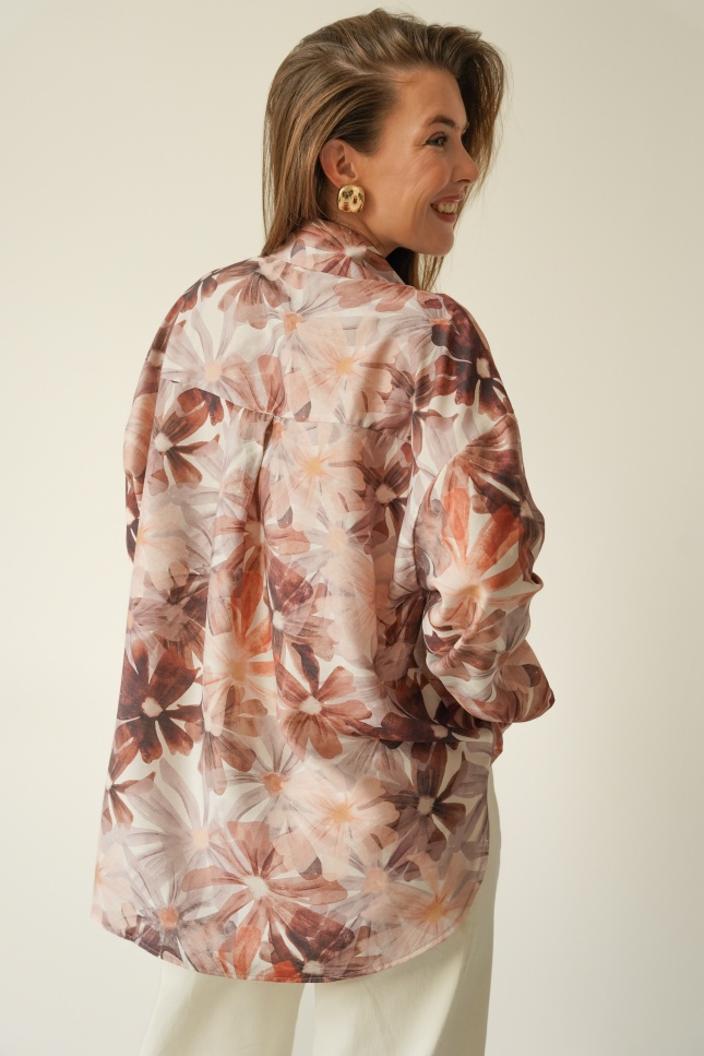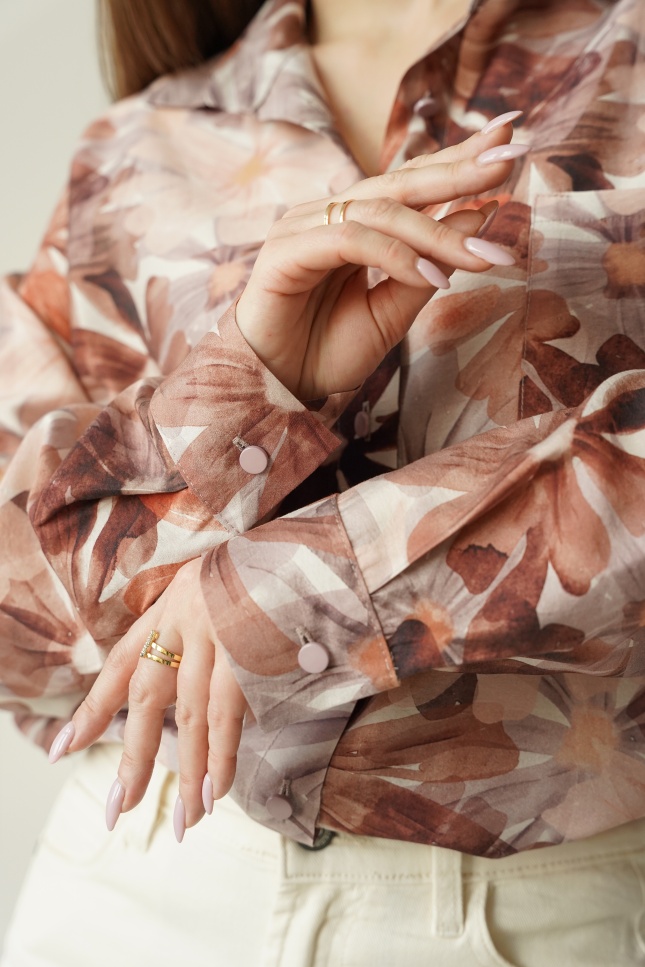 FLORAIS to klasyczna koszula o nowoczesnym, luźniejszym kroju z lekko przedłużonym tyłem. Wykonana z luksusowej mieszanki wiskozy (90%) i jedwabiu (10%), zachwyca lekkością, miękkością i subtelnym, kwiatowym wzorem w pastelowych tonach. Idealna do stylizacji codziennych, biurowych i weekendowych.