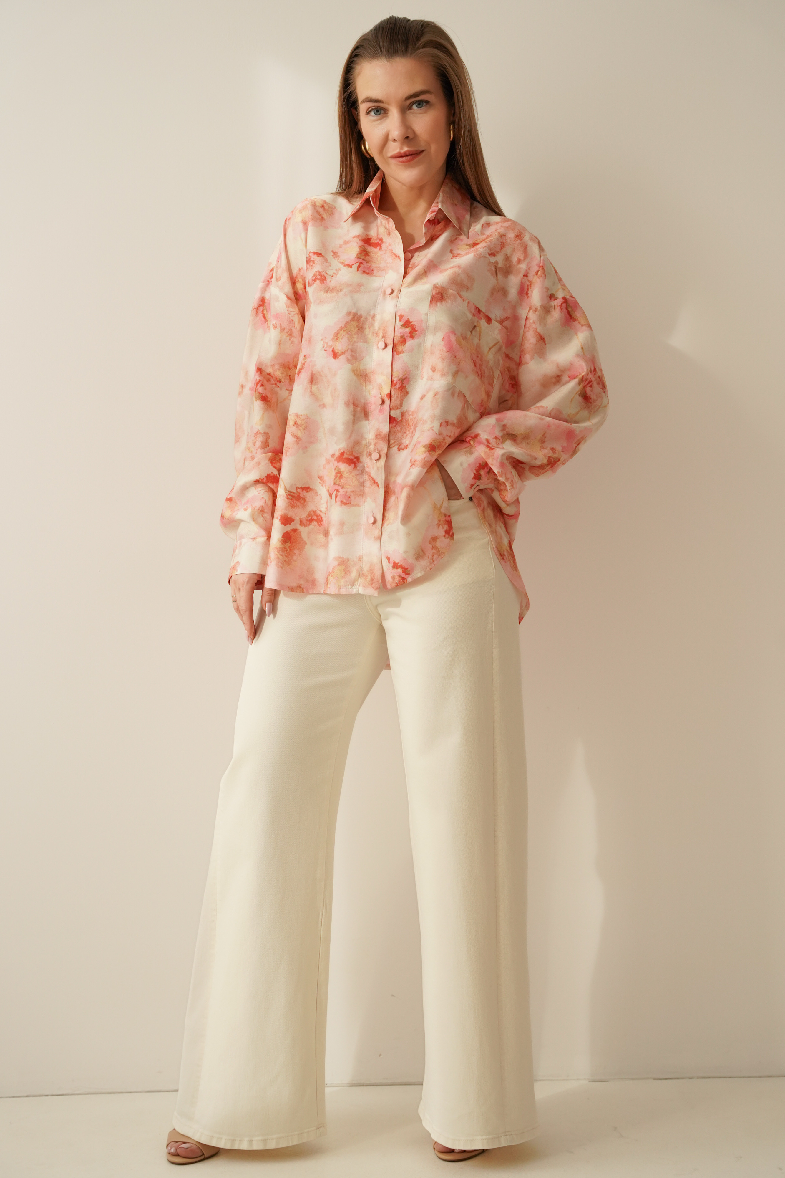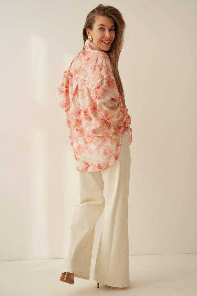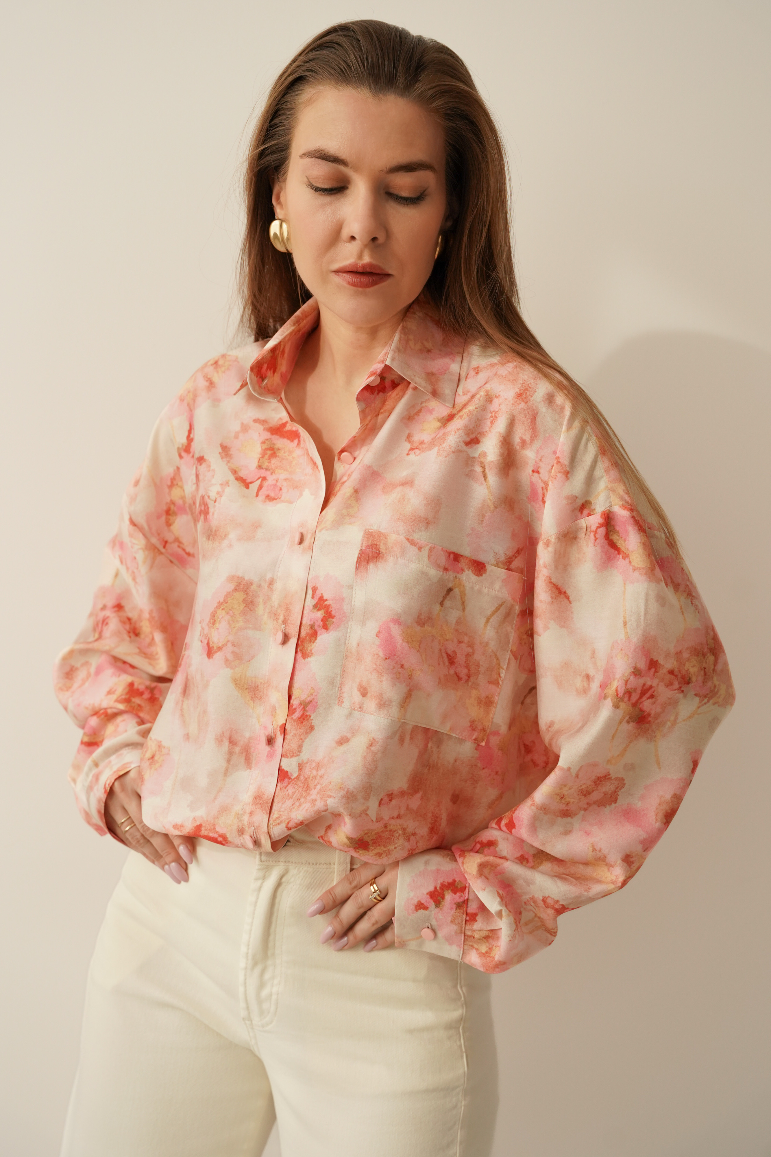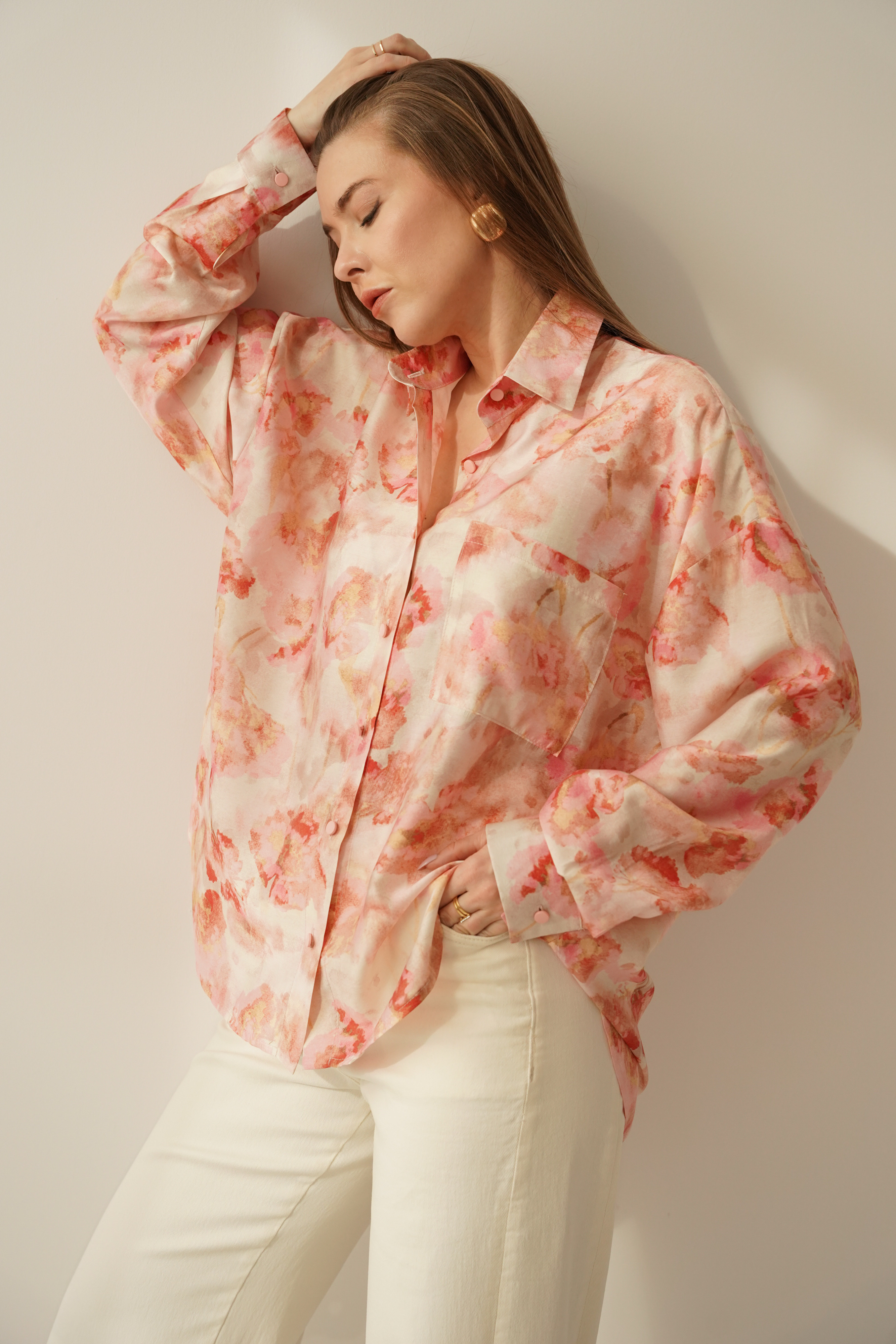FLORAIS to klasyczna koszula o nowoczesnym, luźniejszym kroju z lekko przedłużonym tyłem. Wykonana z luksusowej mieszanki wiskozy (90%) i jedwabiu (10%), zachwyca lekkością, miękkością i subtelnym, kwiatowym wzorem w pastelowych tonach. Idealna do stylizacji codziennych, biurowych i weekendowych.