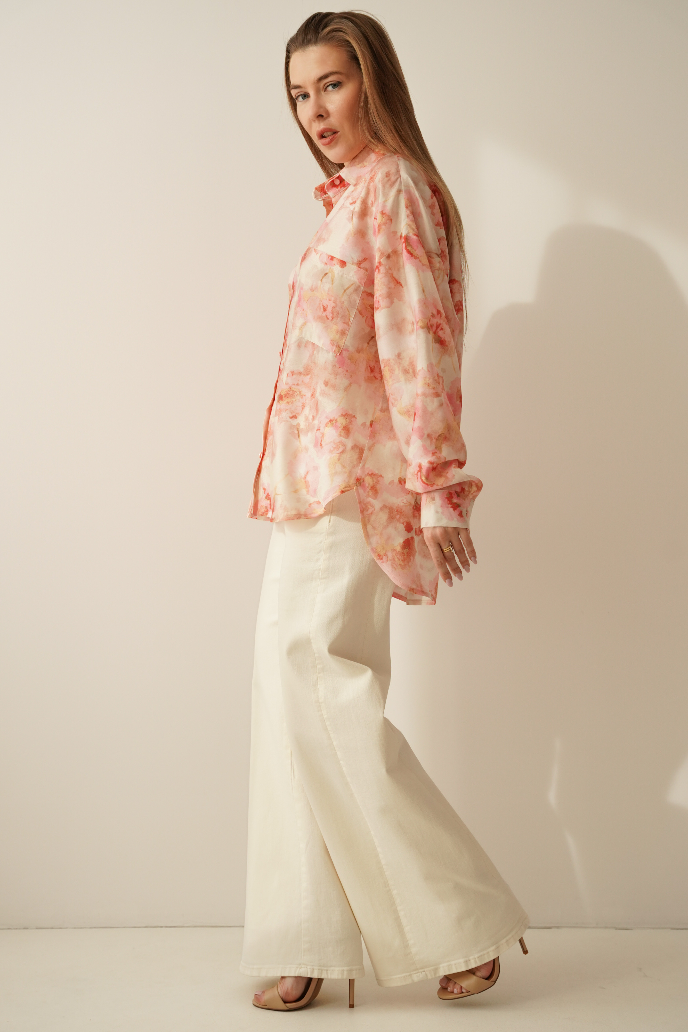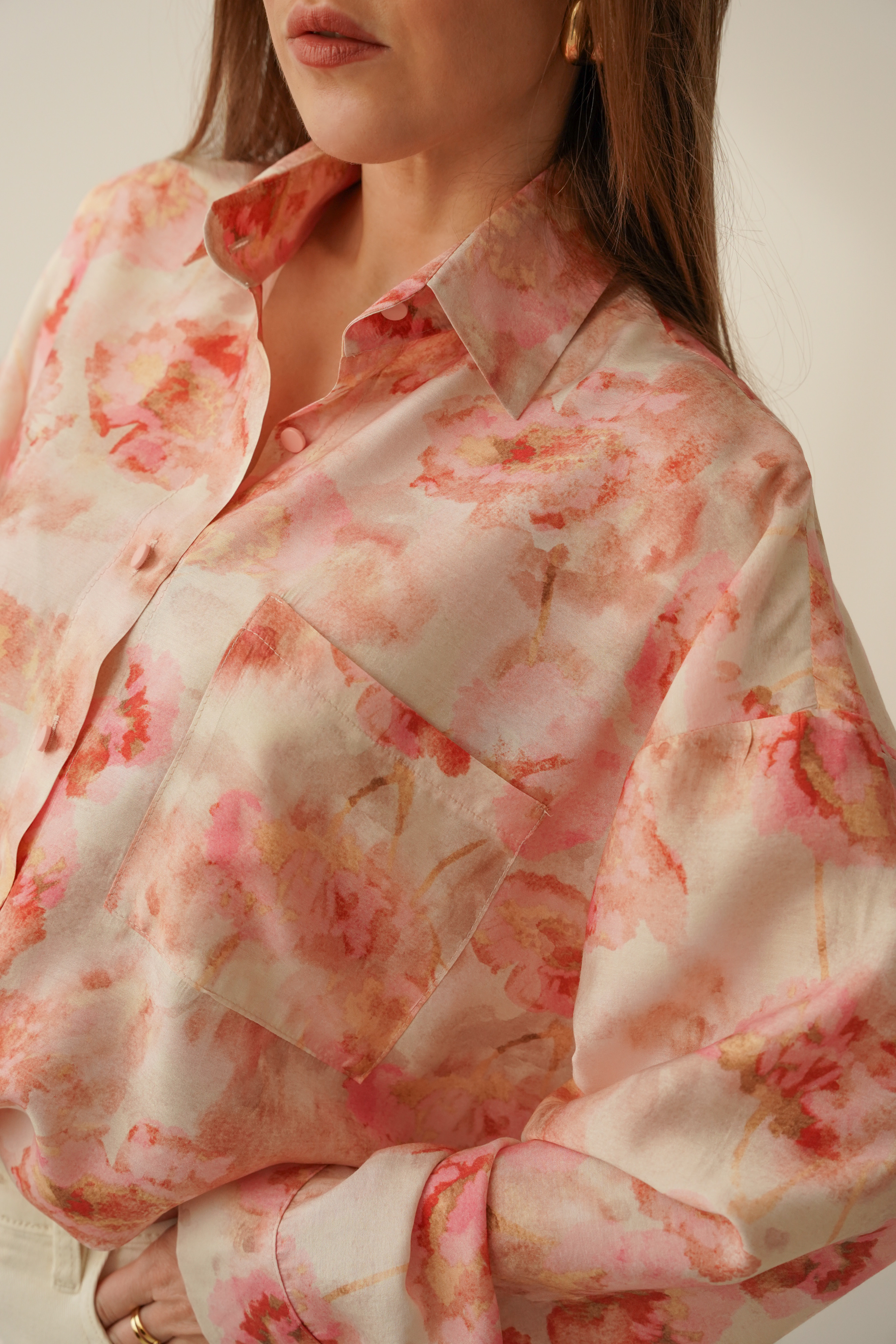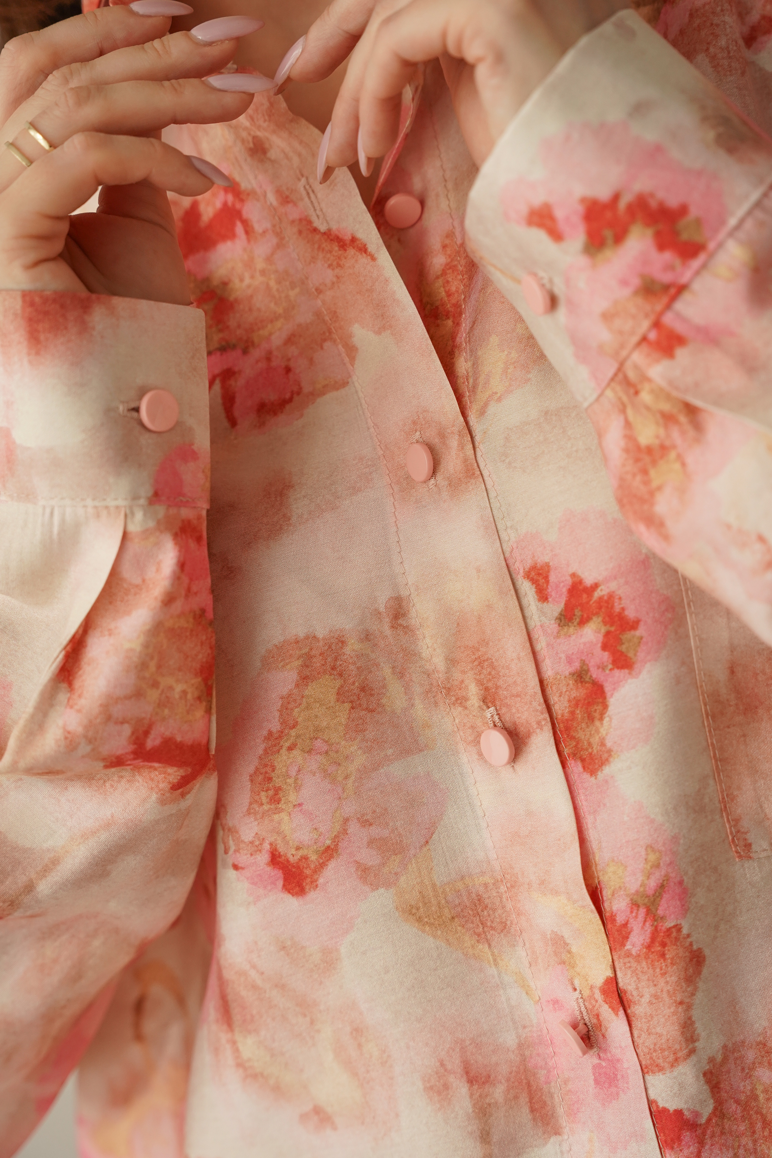 FLORAIS to klasyczna koszula o nowoczesnym, luźniejszym kroju z lekko przedłużonym tyłem. Wykonana z luksusowej mieszanki wiskozy (90%) i jedwabiu (10%), zachwyca lekkością, miękkością i subtelnym, kwiatowym wzorem w pastelowych tonach. Idealna do stylizacji codziennych, biurowych i weekendowych.