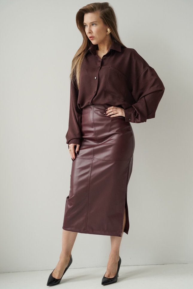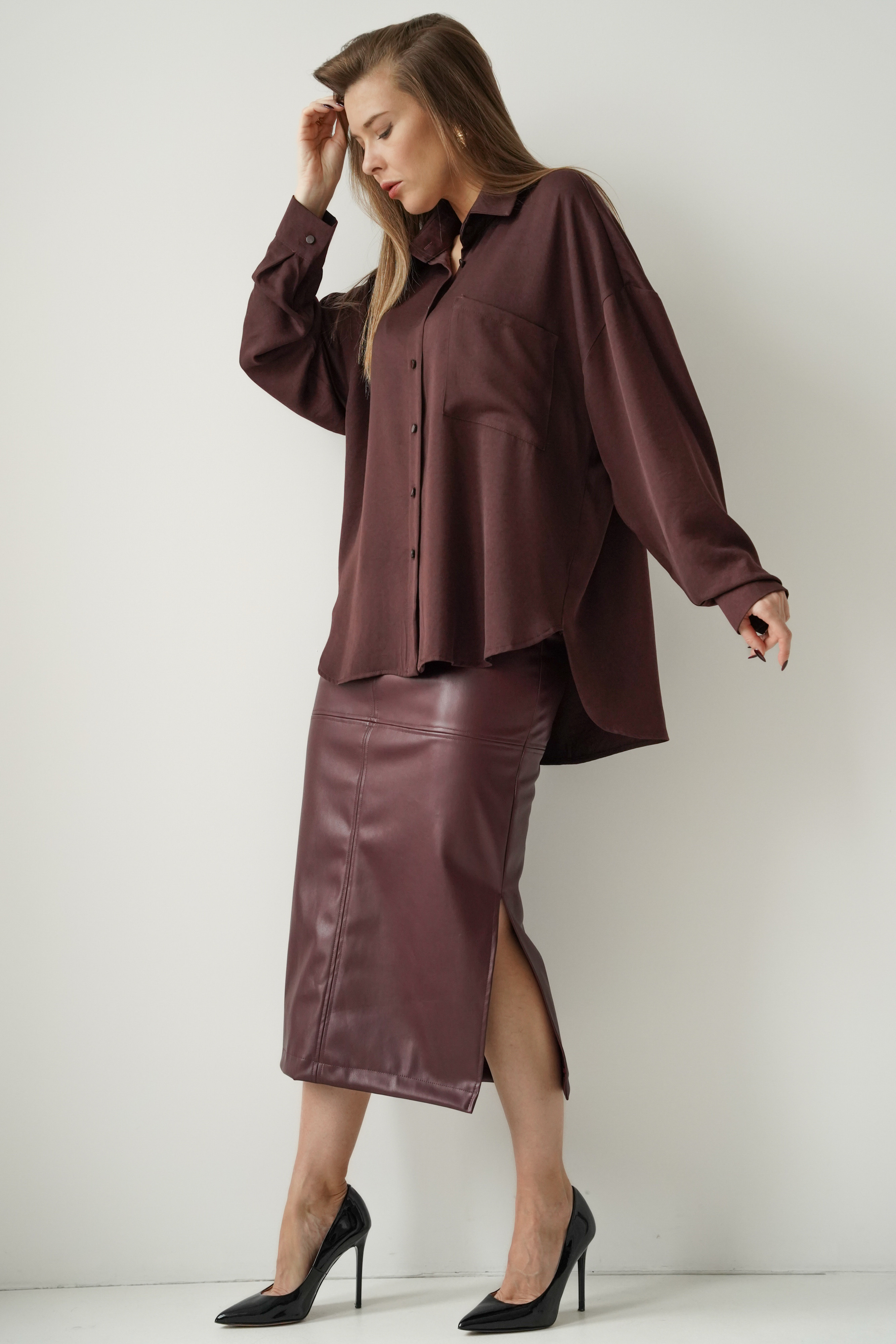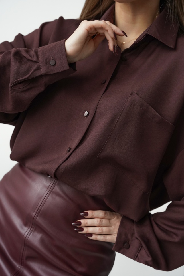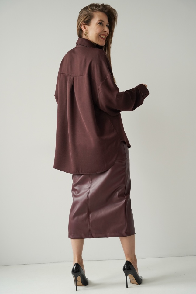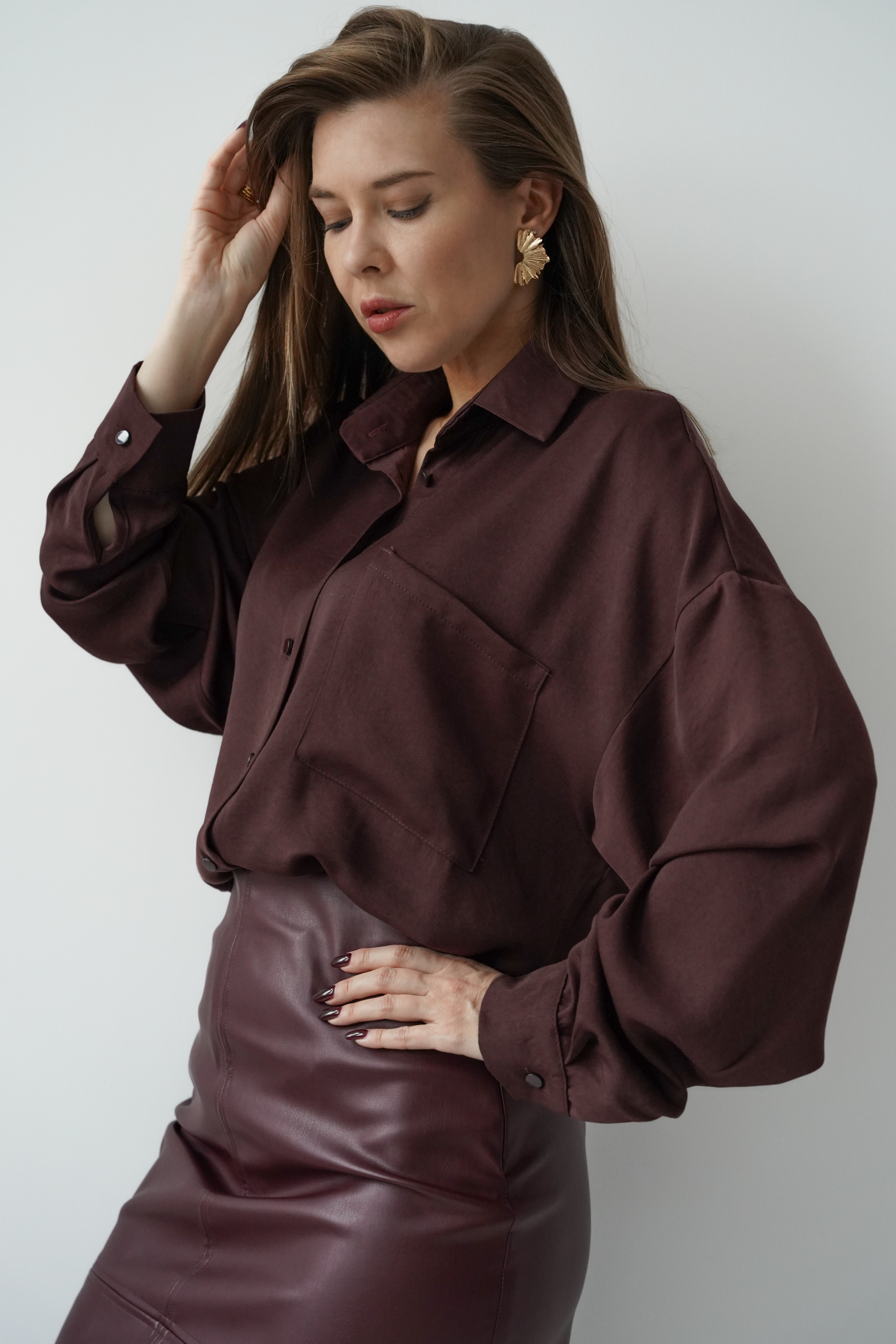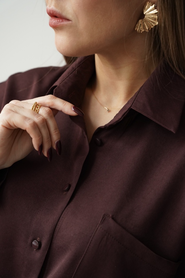 Adele” to elegancka koszula z kołnierzykiem, uszyta z luksusowej mieszanki wiskozy i cupro o jedwabistym wykończeniu. Klasyczny krój przełamany delikatnie przedłużonym tyłem tworzy nowoczesny, lekko casualowy efekt. Perfekcyjne mankiety, subtelny połysk i miękkie układanie materiału czynią ją idealną bazą stylizacji na każdy dzień.