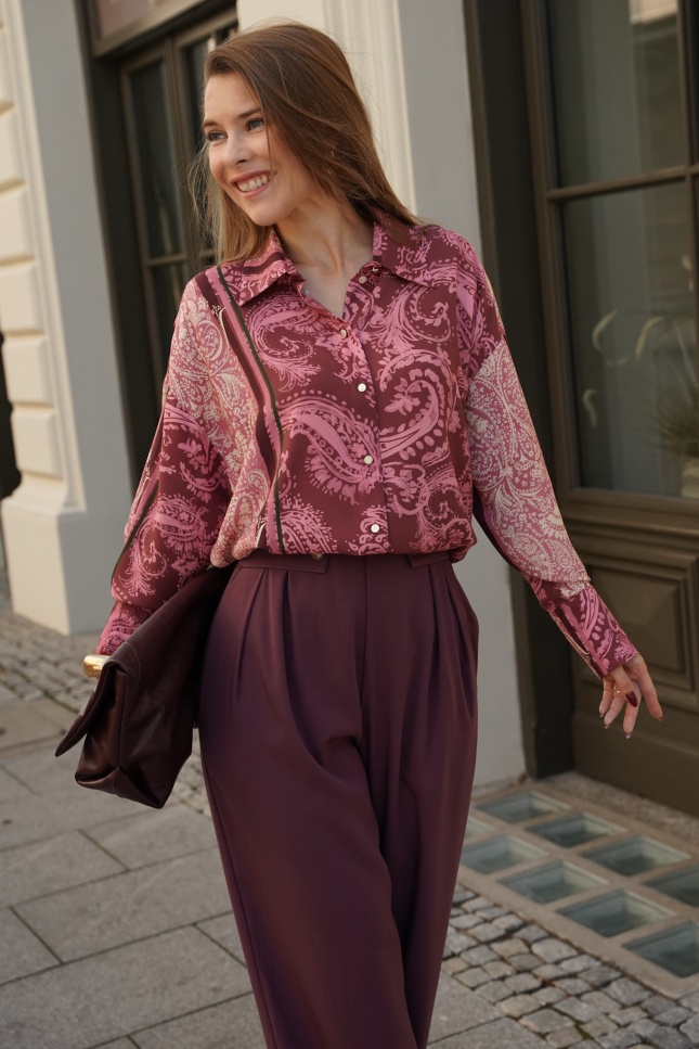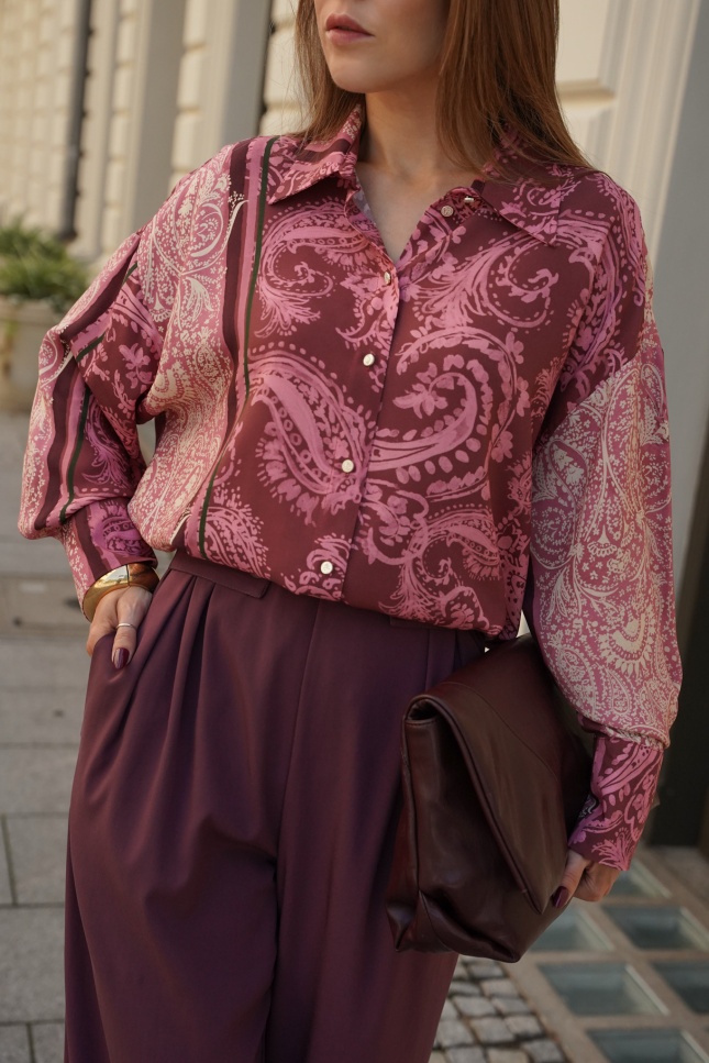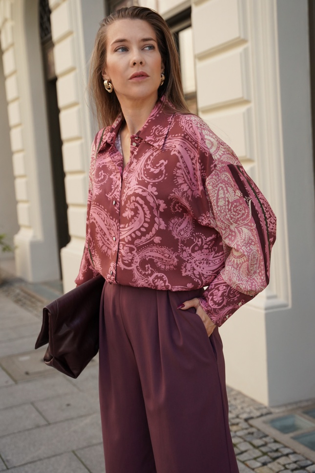 Elegancka koszula z kołnierzykiem, zapinana na guziki i wykończona mankietami. Luźny, wygodny fason i 100% wiskoza sprawiają, że jest lekka, oddychająca i idealna na co dzień. Oryginalne printy dodają charakteru – od paisley, przez animal, po graficzne wzory. Świetnie komponuje się zarówno z jeansami, jak i eleganckimi spodniami czy spódnicą.