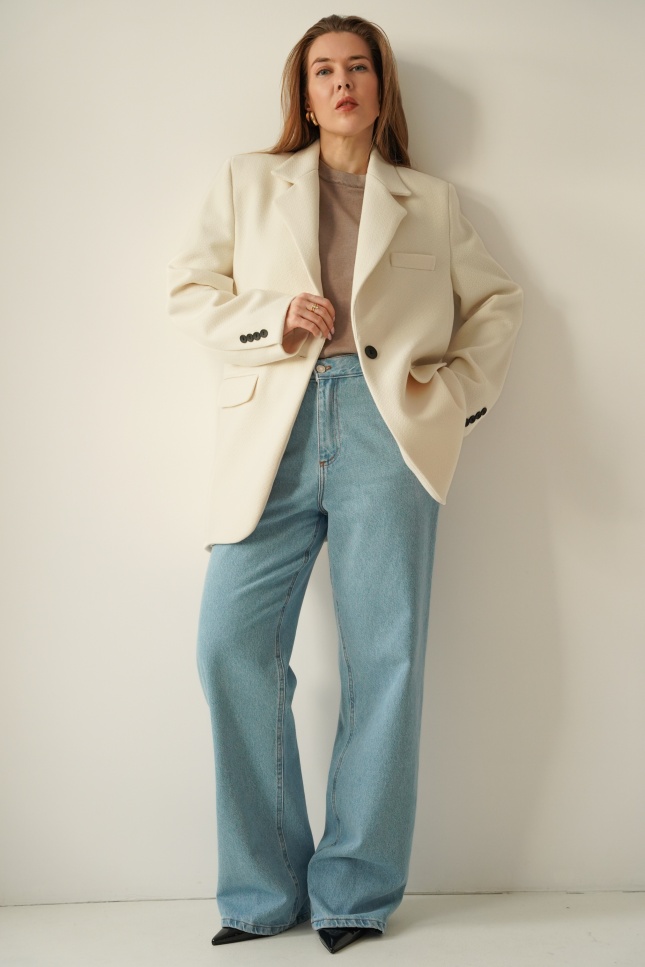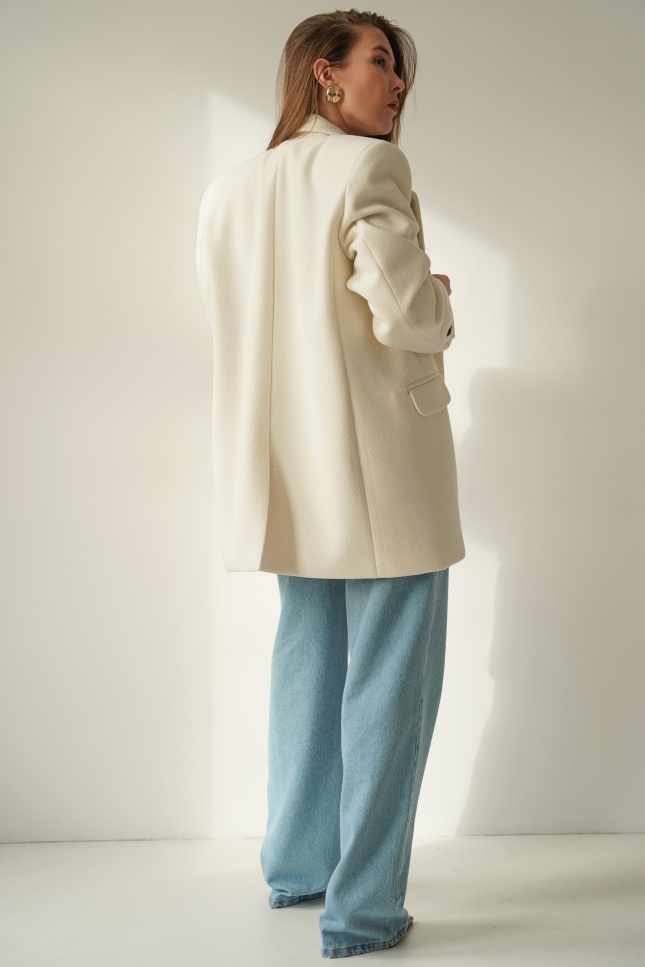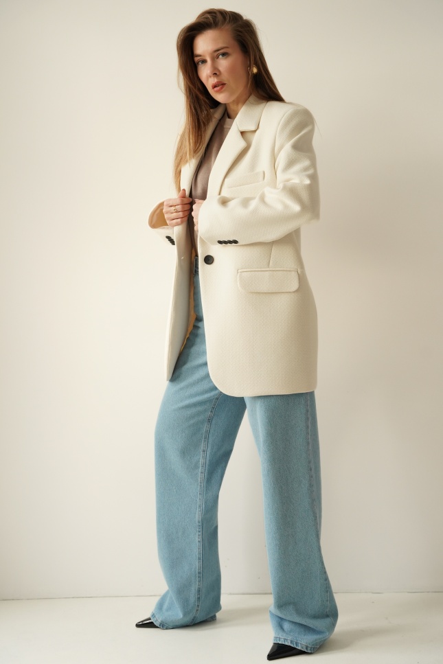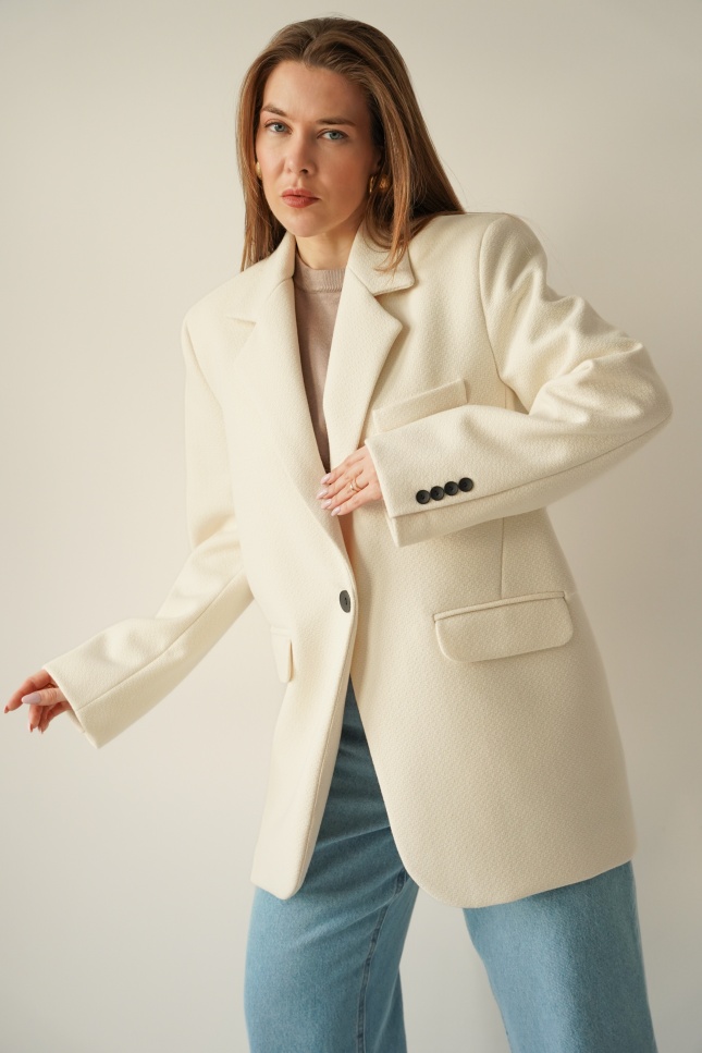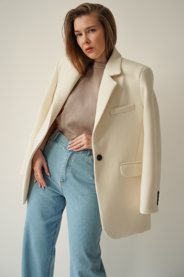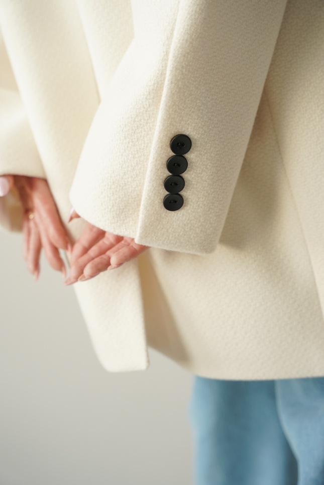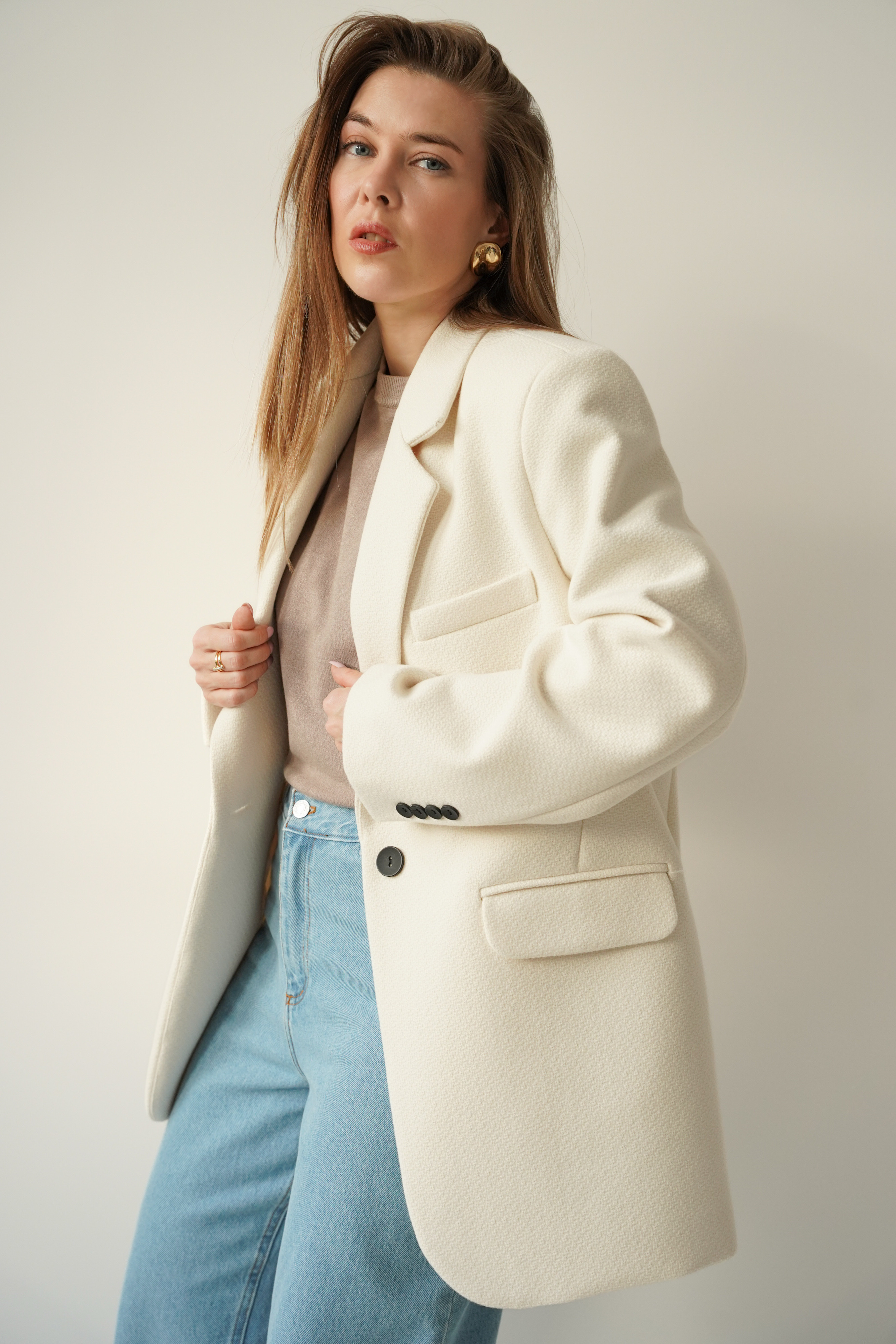 RITA to klasyczna, casualowa marynarka o eleganckim designie i lekko oversizowym fasonie. Wykonana z grubszej, płaszczowej tkaniny (65% bawełna, 15% wiskoza), zapewnia strukturę, trwałość i komfort noszenia. Zapinana jednorzędowo, wykończona klasycznym kołnierzem i mankietami z guzikami. Idealna zarówno do eleganckich stylizacji ze spodniami na kant, jak i w casualowych zestawach z jeansami lub dresem. Ponadczasowy model na lata.