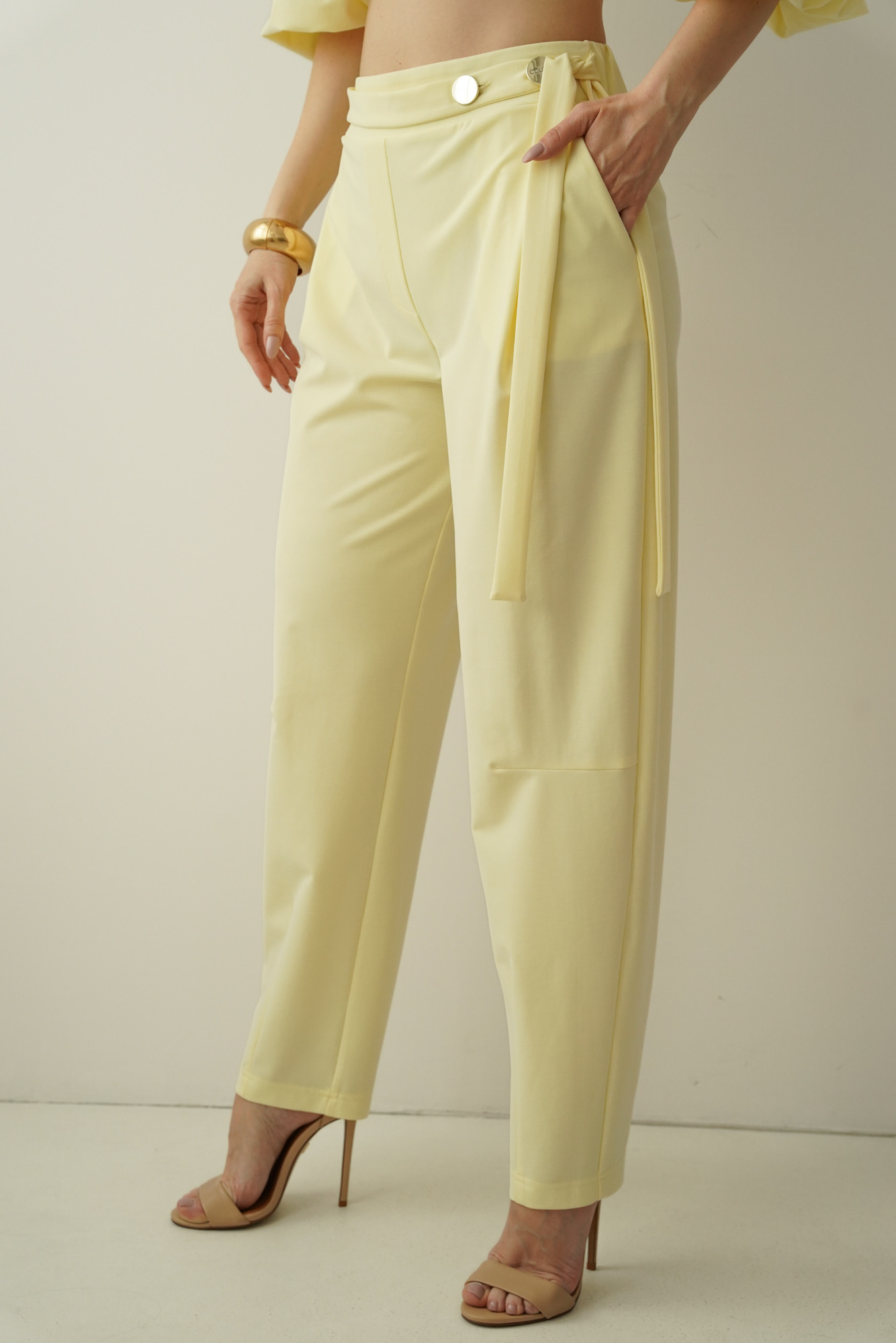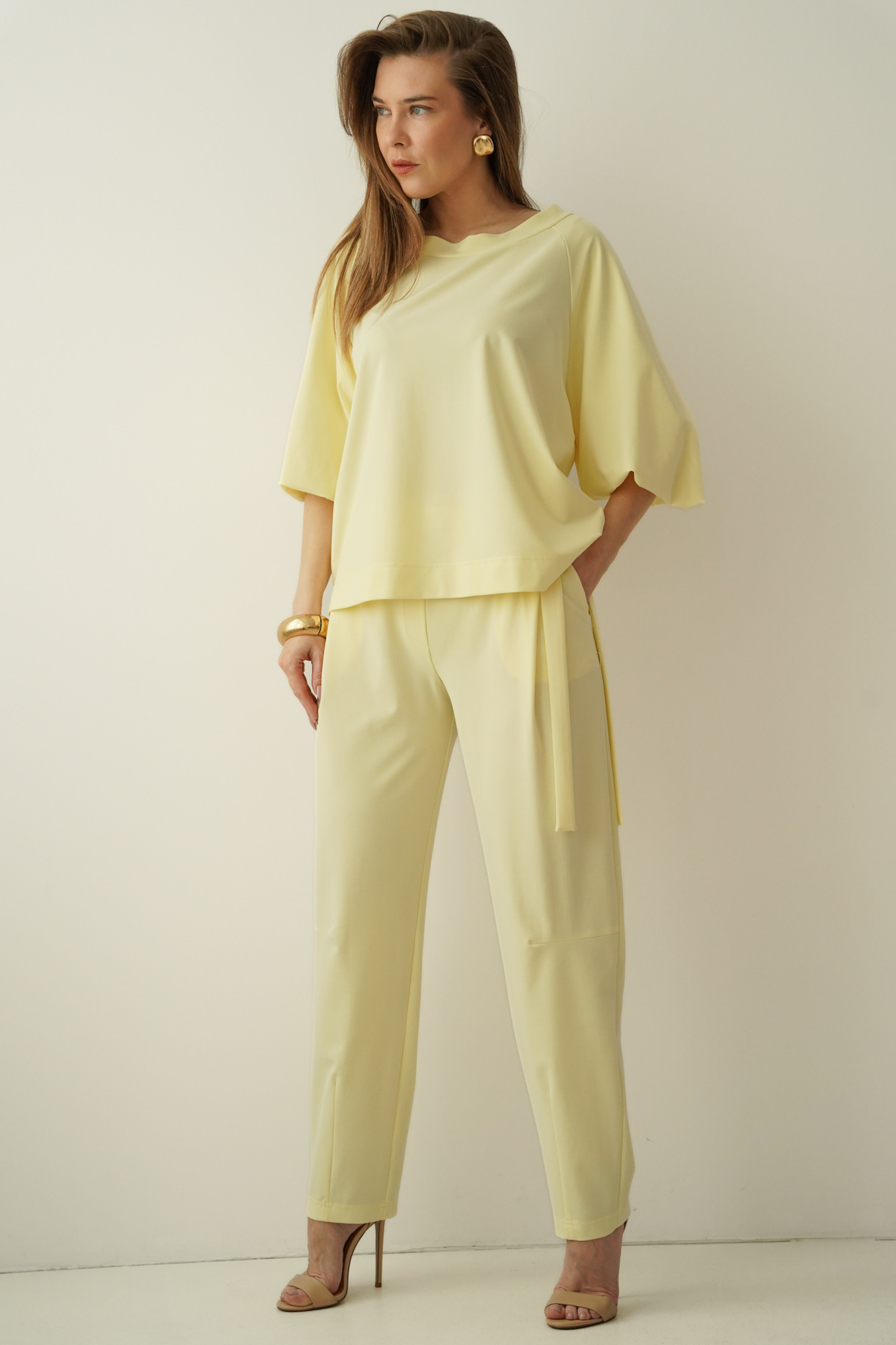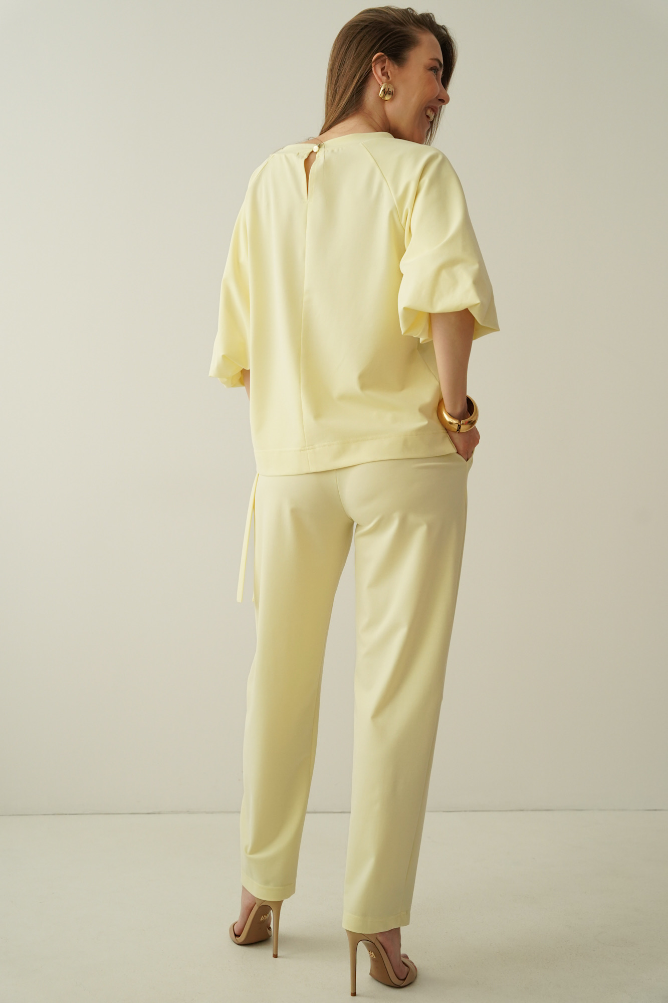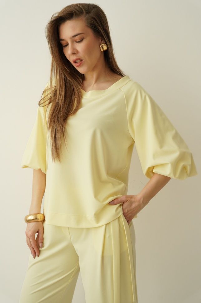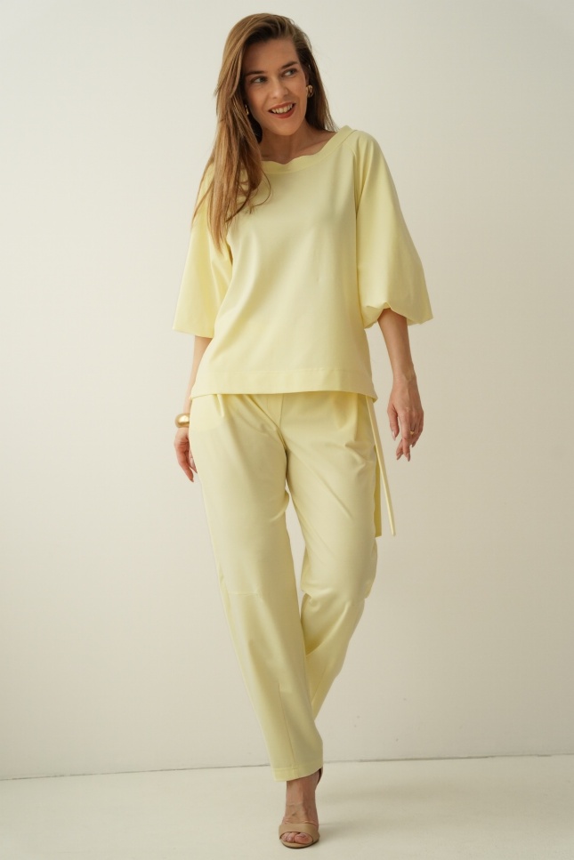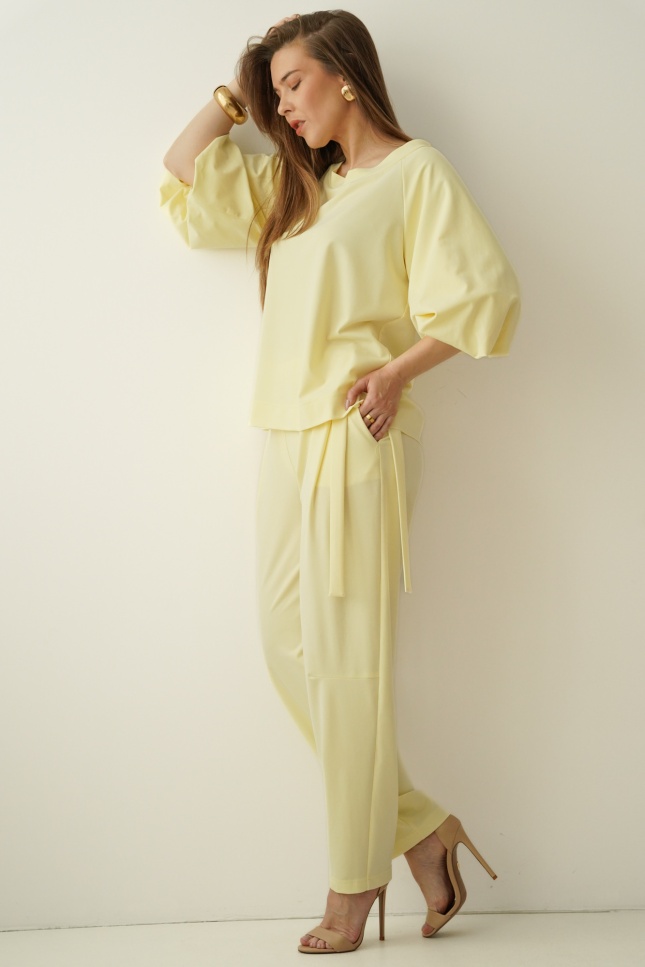 Elegancki casualowy komplet z bufiastymi rękawami Margo pastelowy żółty