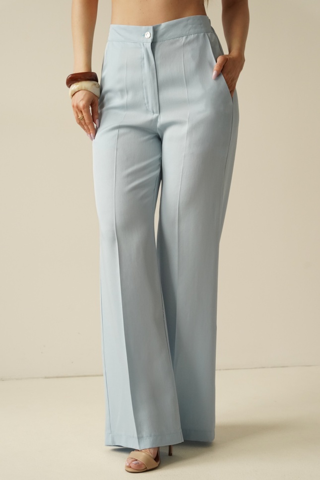 Uszyty z naturalnej tkaniny (90% wiskoza, 10% cupro), łączy miękkość, oddychalność i subtelny, szlachetny połysk. Doskonale układa się na sylwetce, zapewniając komfort i elegancki efekt wizualny.