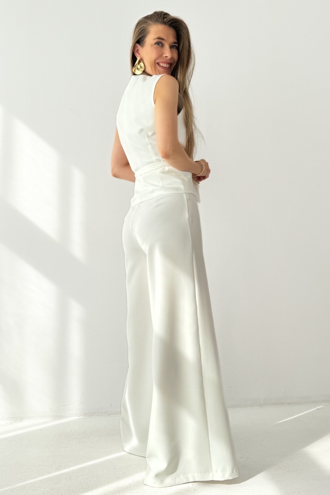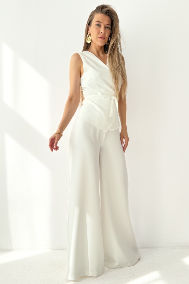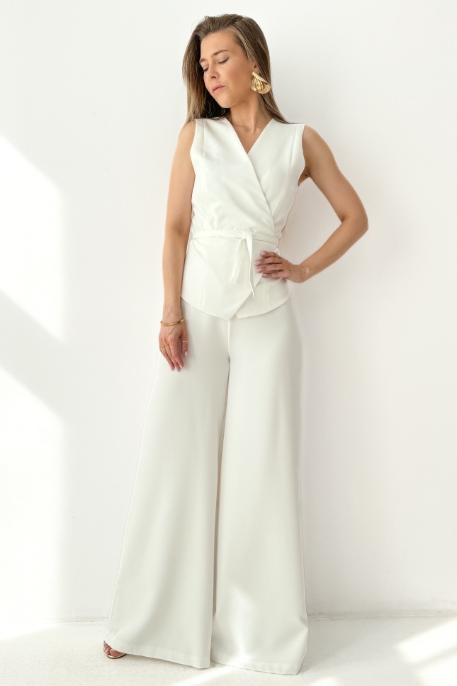 Elegancki komplet z wiązaną kamizelką i spodniami palazzo Coco cream