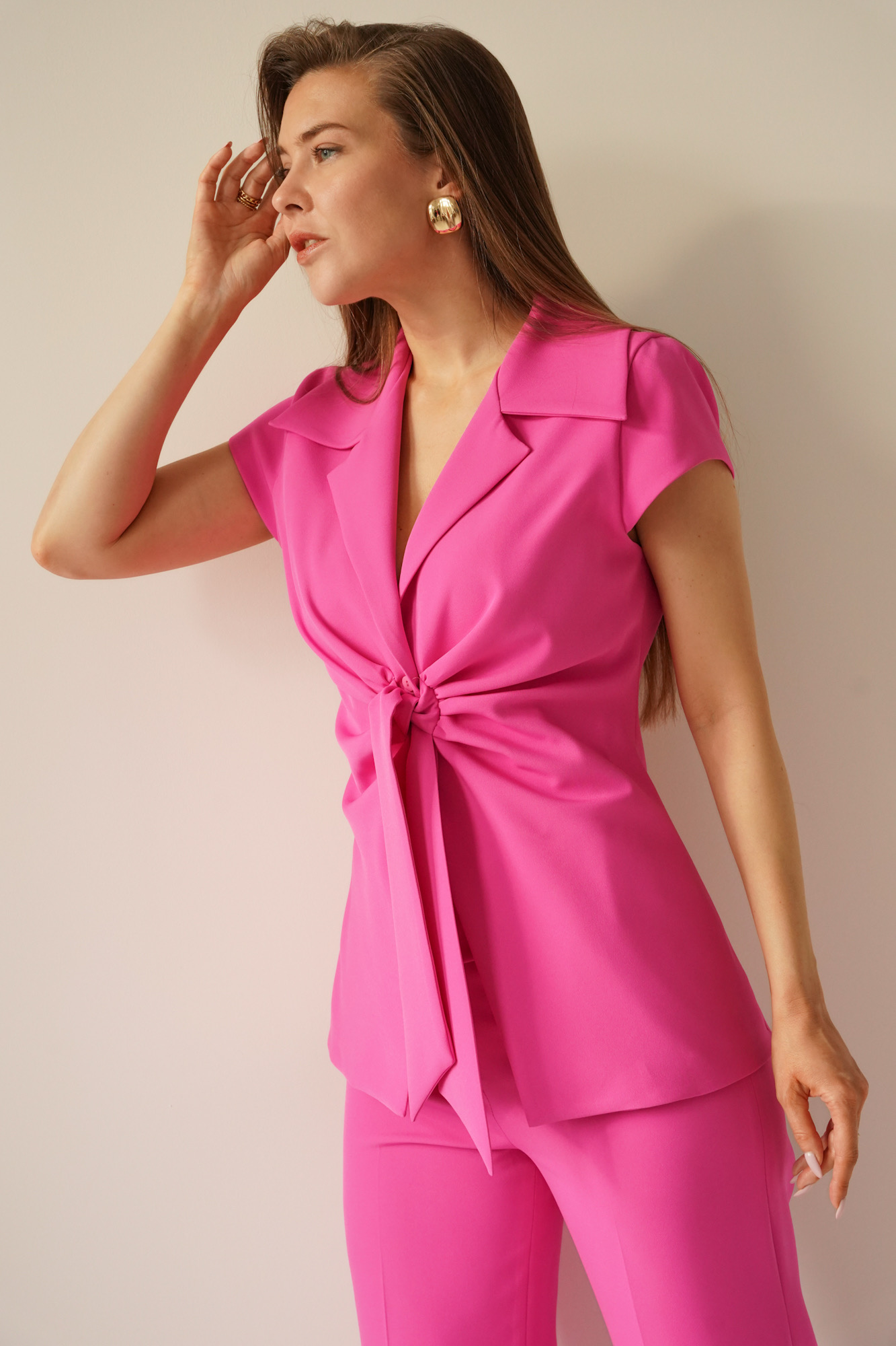 Elegancki żakiet z wiązaniem z kompletu Grace fuksja