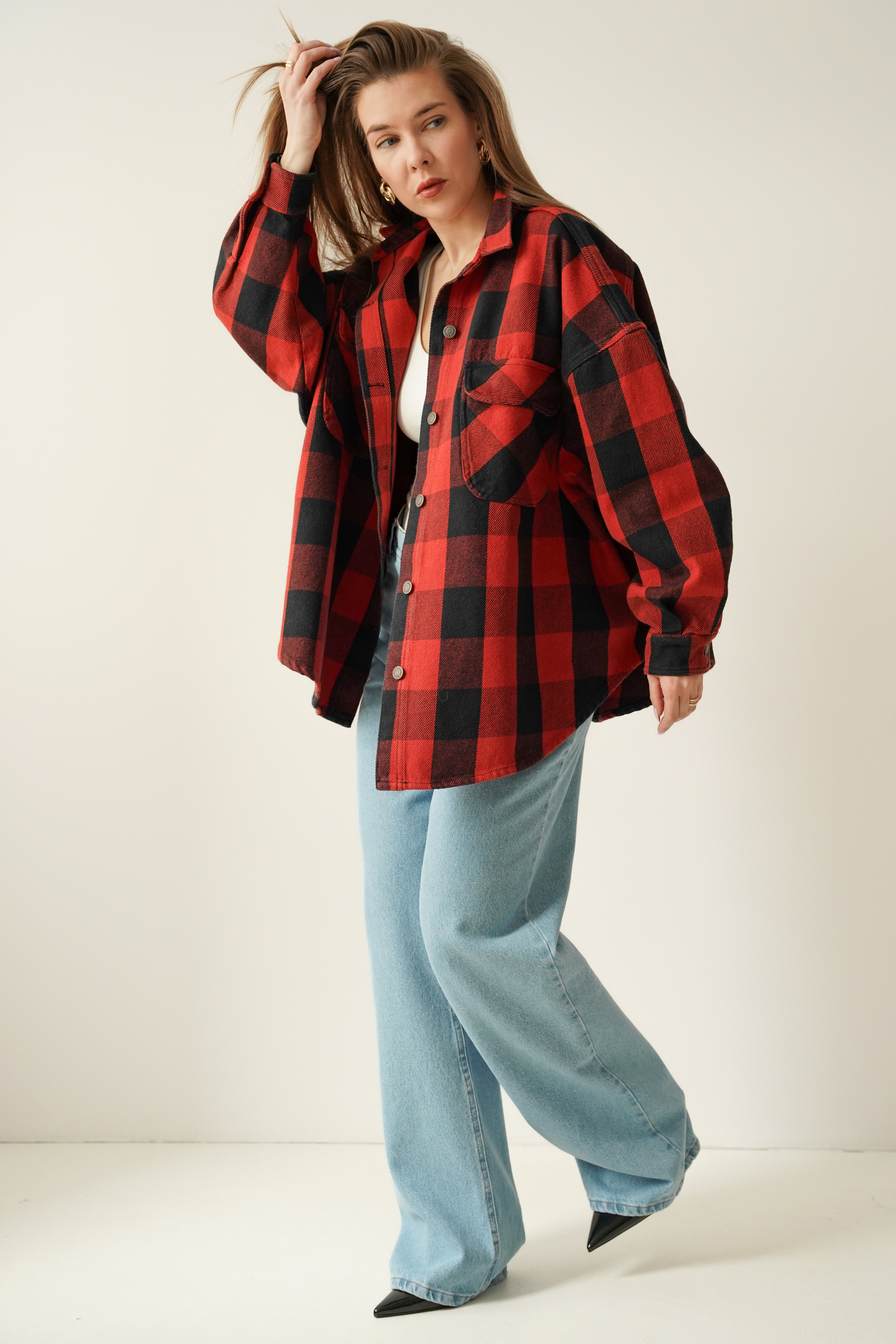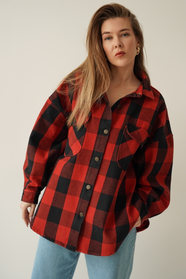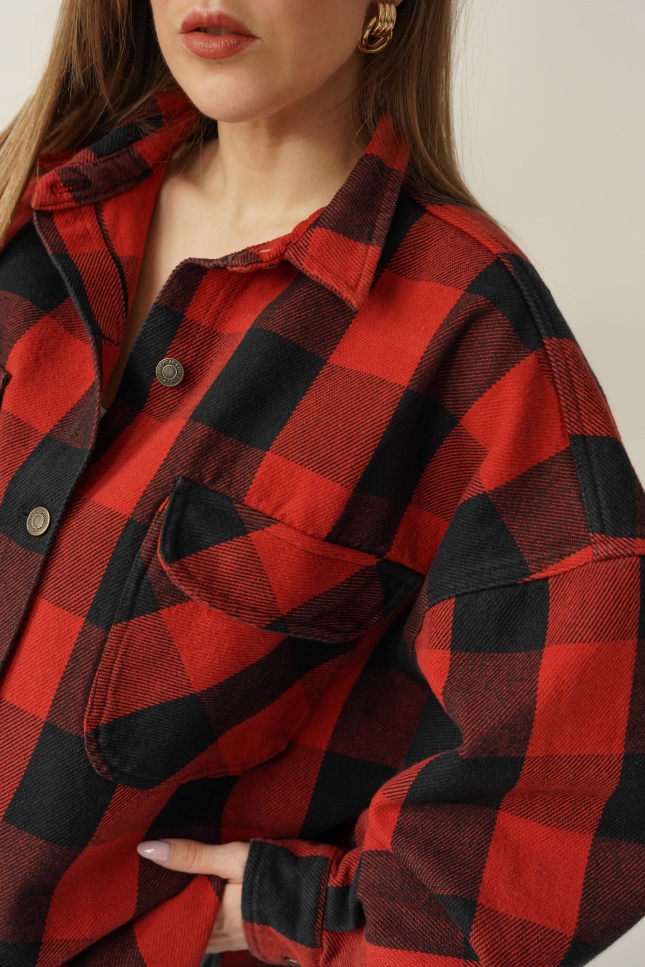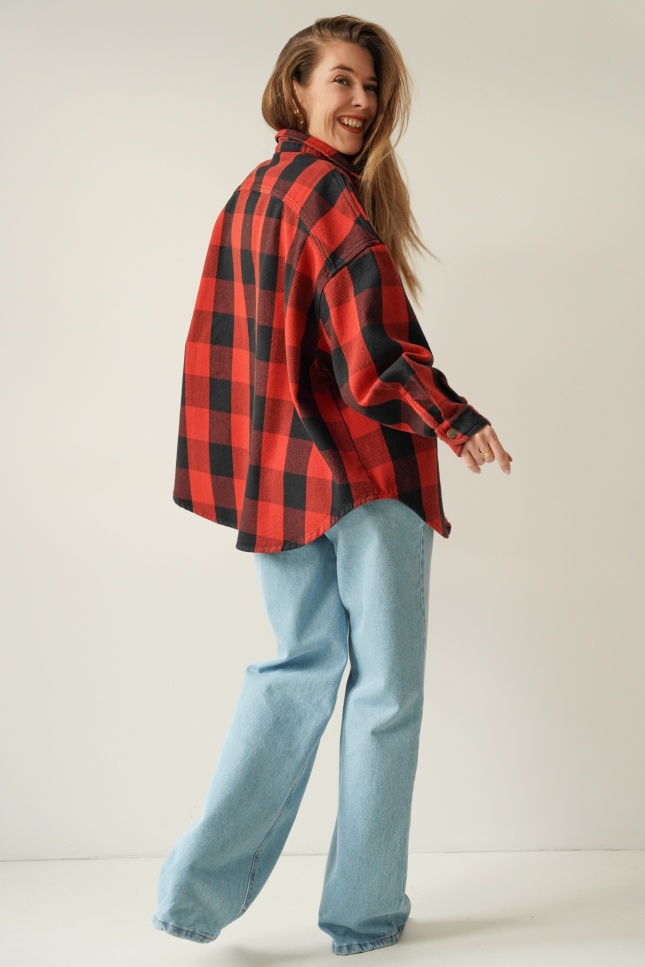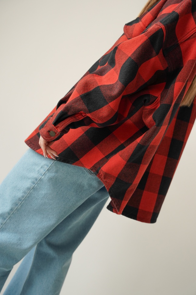 Jeansowa kurtka streetwear Urban czarno-czerwona krata