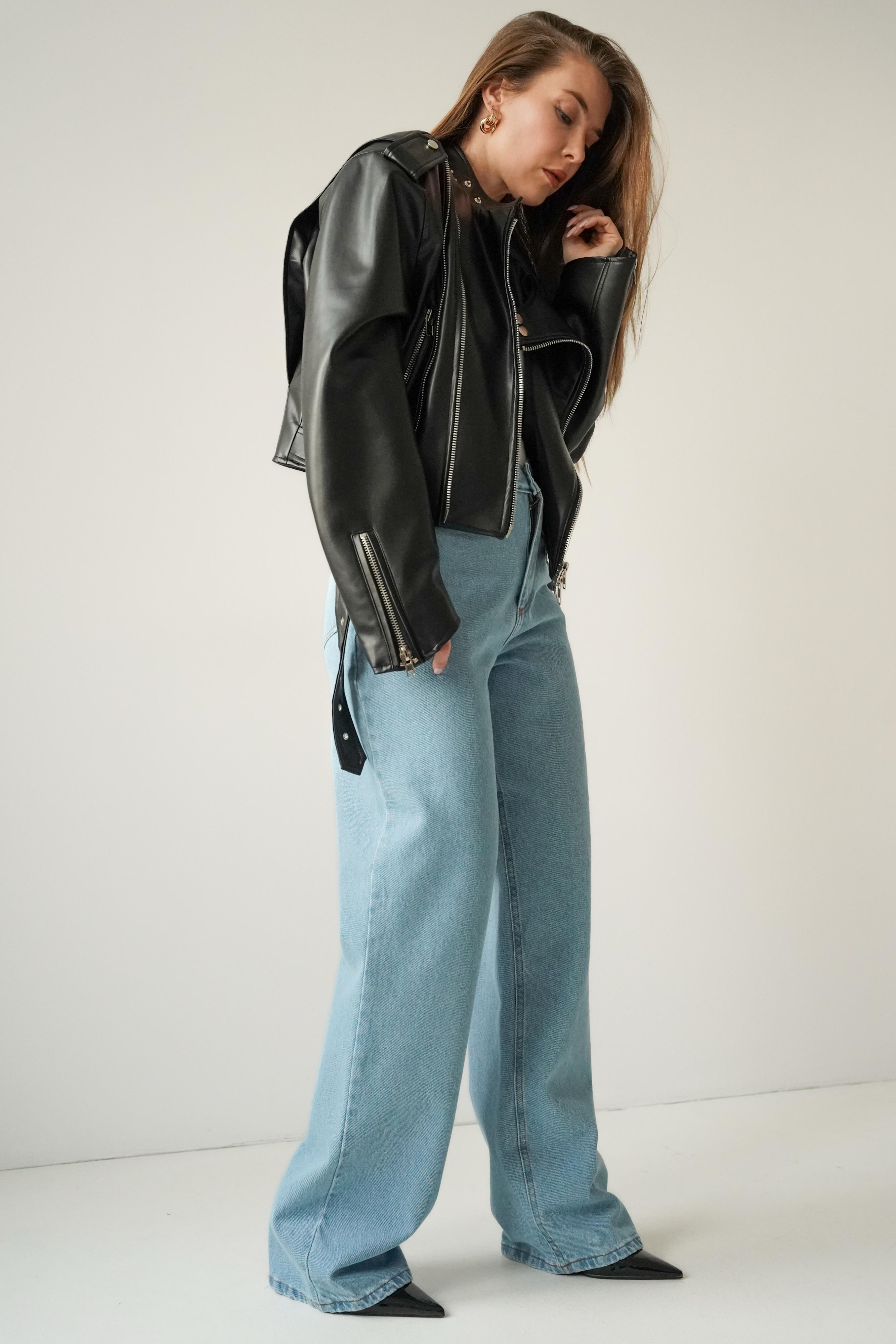 • klasyczny fason z szerszą, prostą nogawką,
