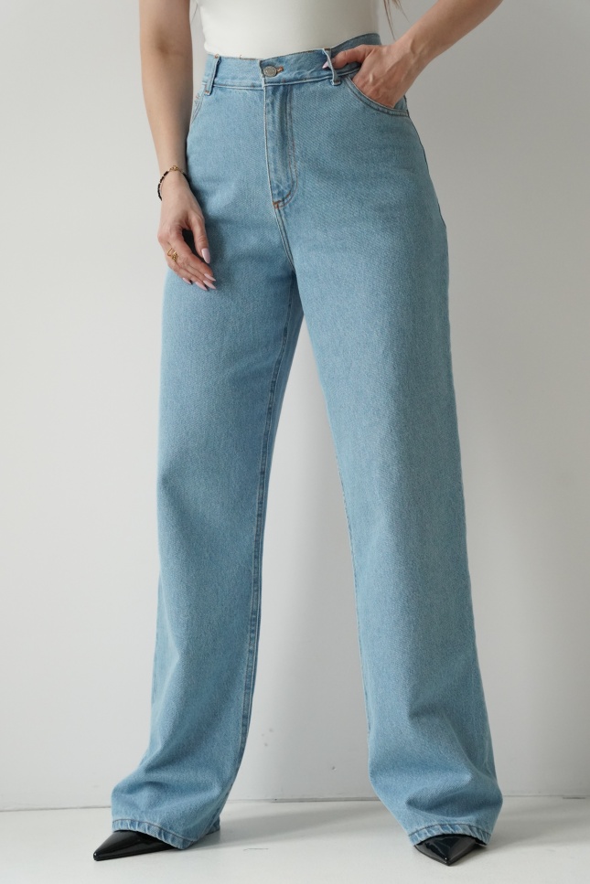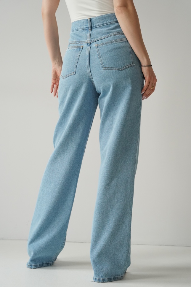 Jeansy classic fit wide leg z wysokim stanem light denim blue