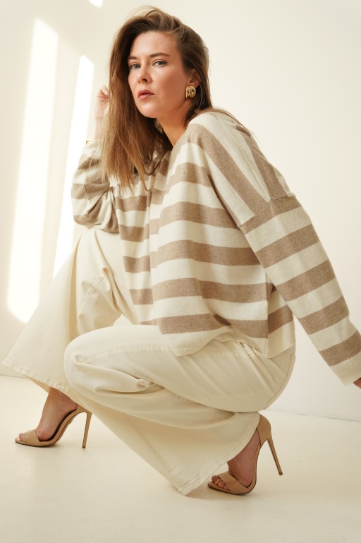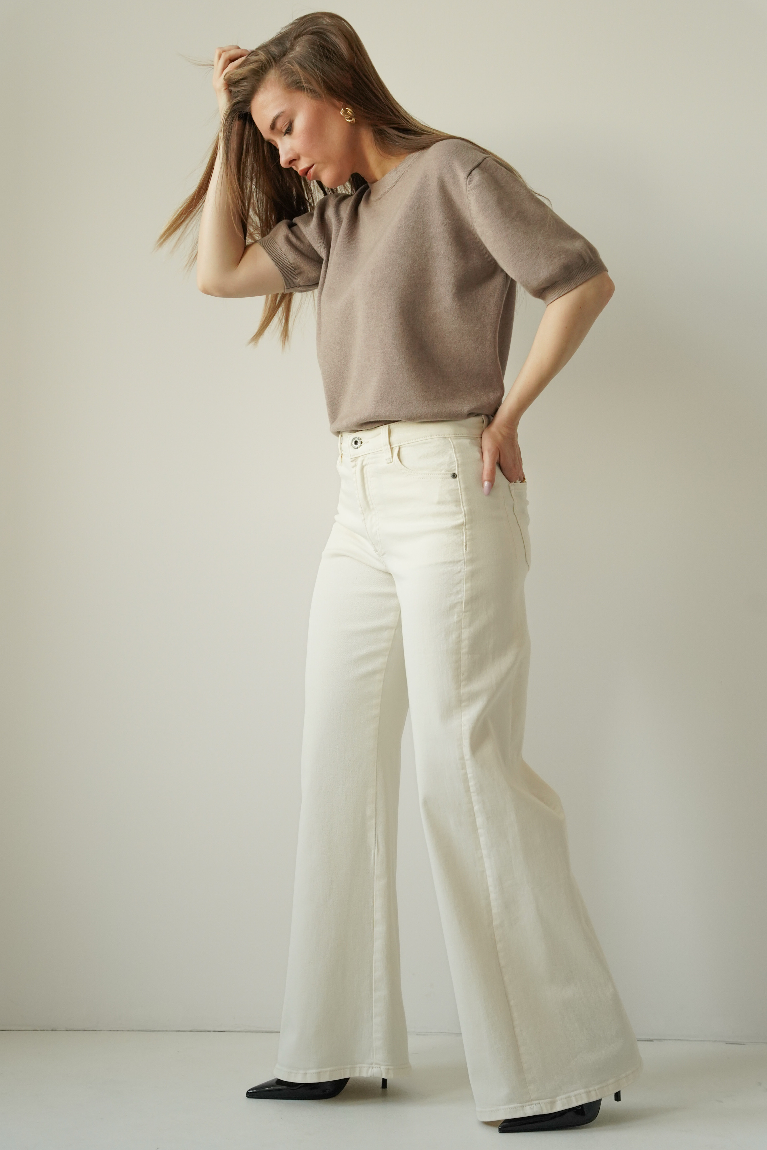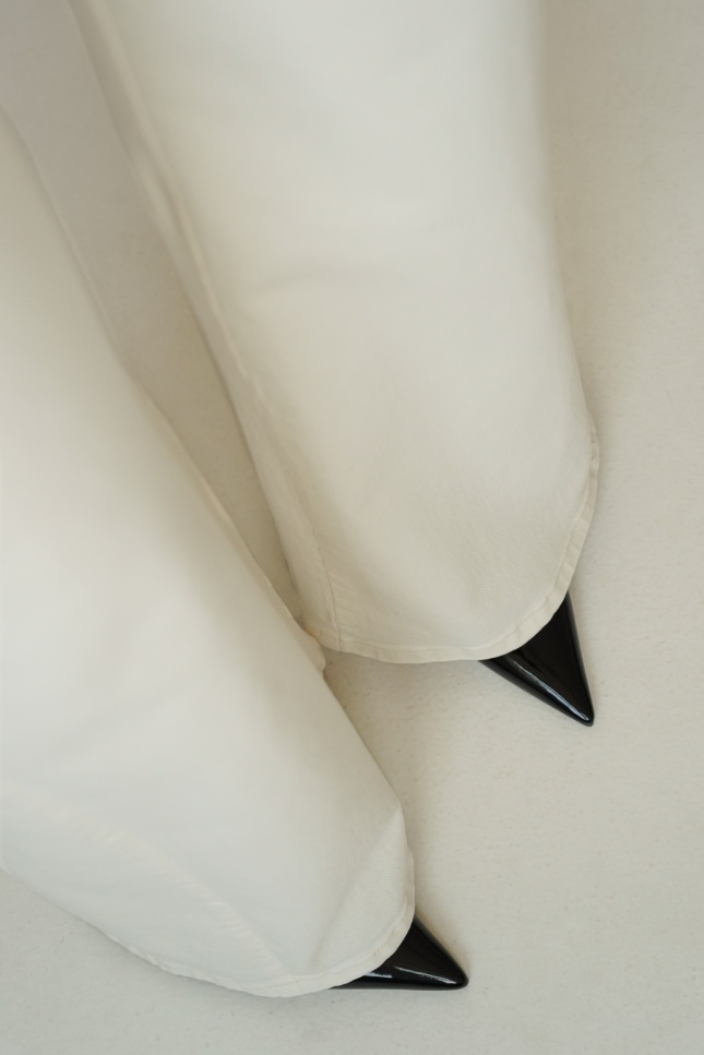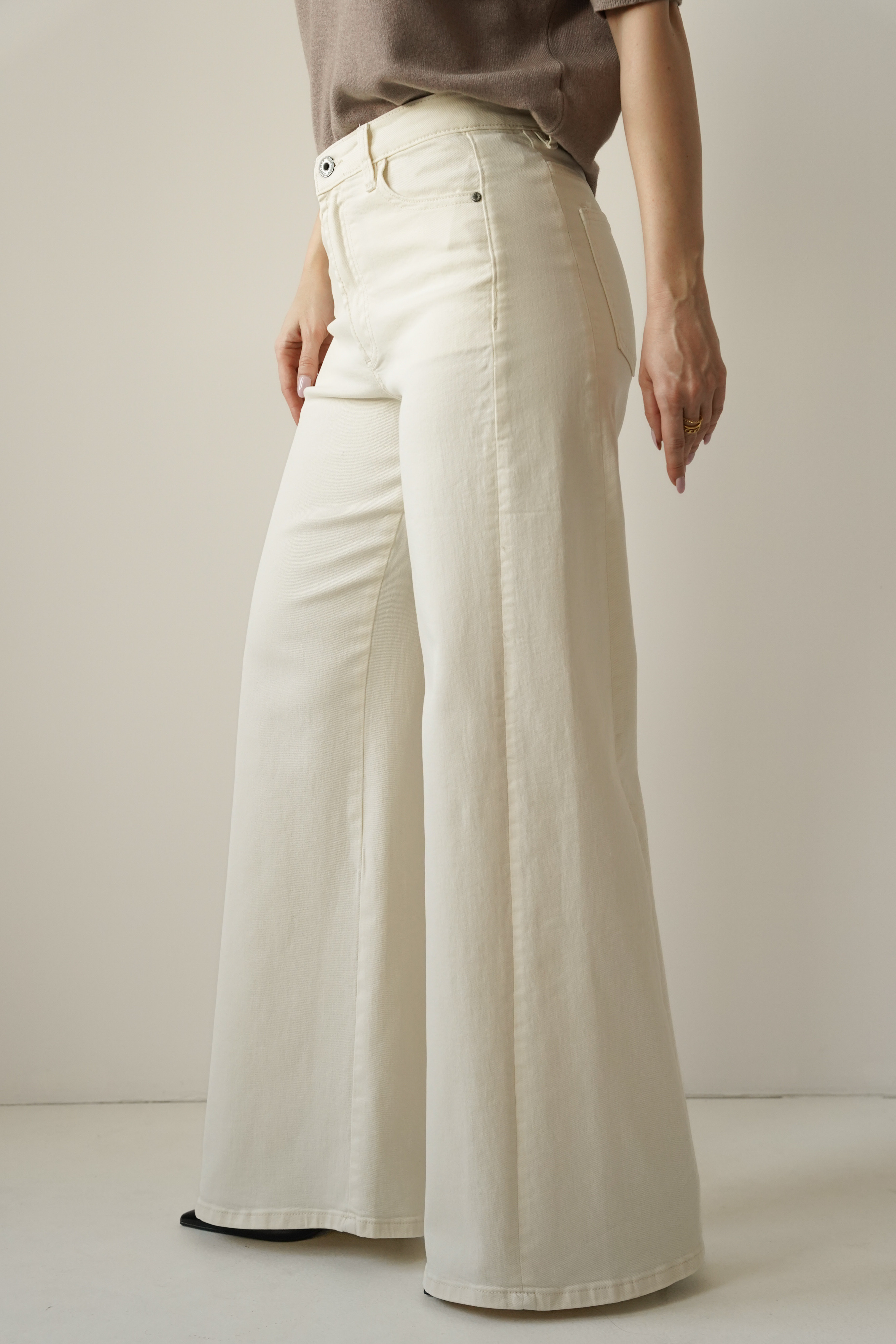 CLOUDE to jeansowe spodnie o fasonie wide leg, wykonane z wysokiej jakości bawełny w modnym odcieniu cloud dancer. Proste, szerokie nogawki, klasyczne zapięcie na guzik i zamek oraz minimalistyczna forma czynią je ponadczasowym wyborem na co dzień i na bardziej dopracowane stylizacje.