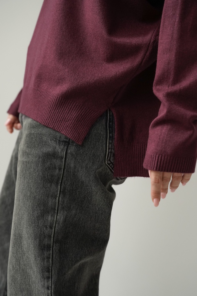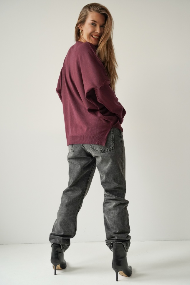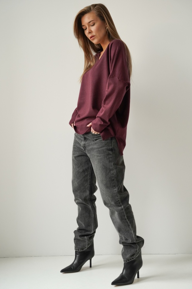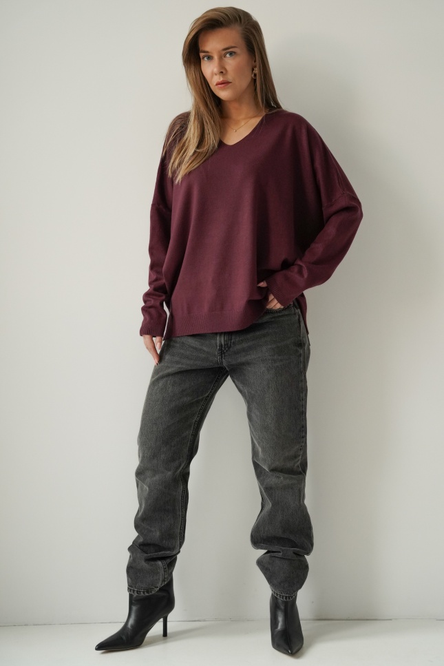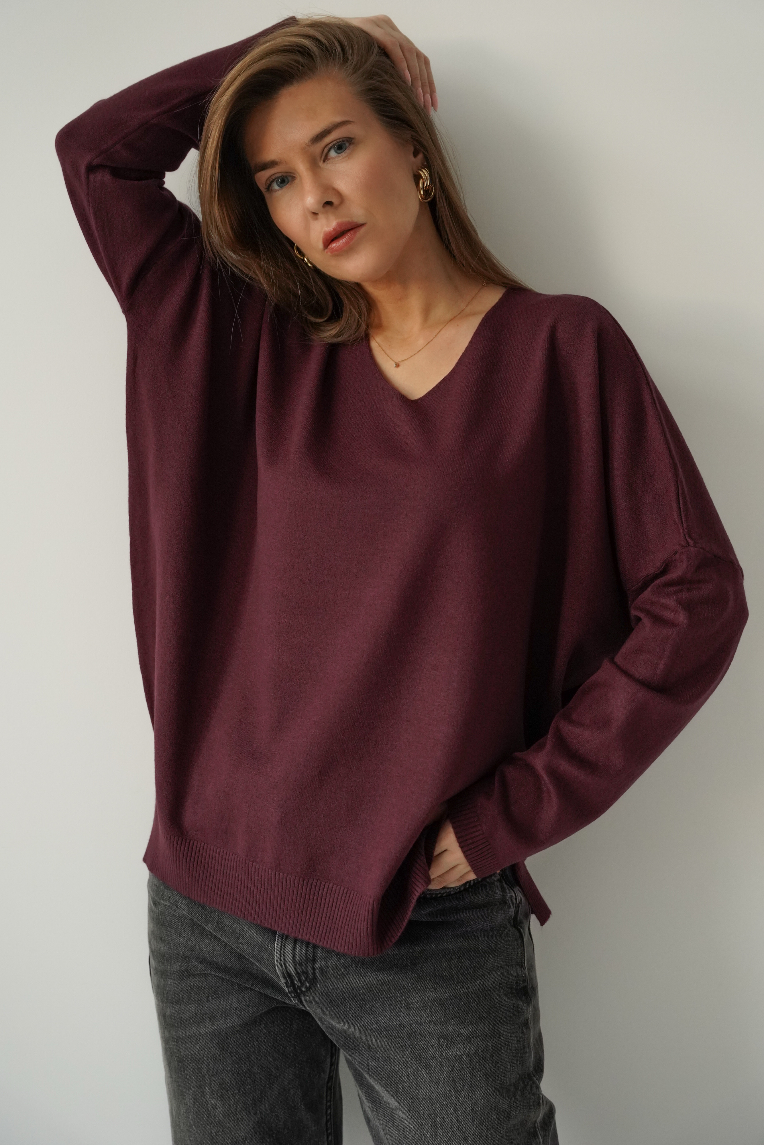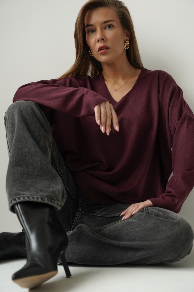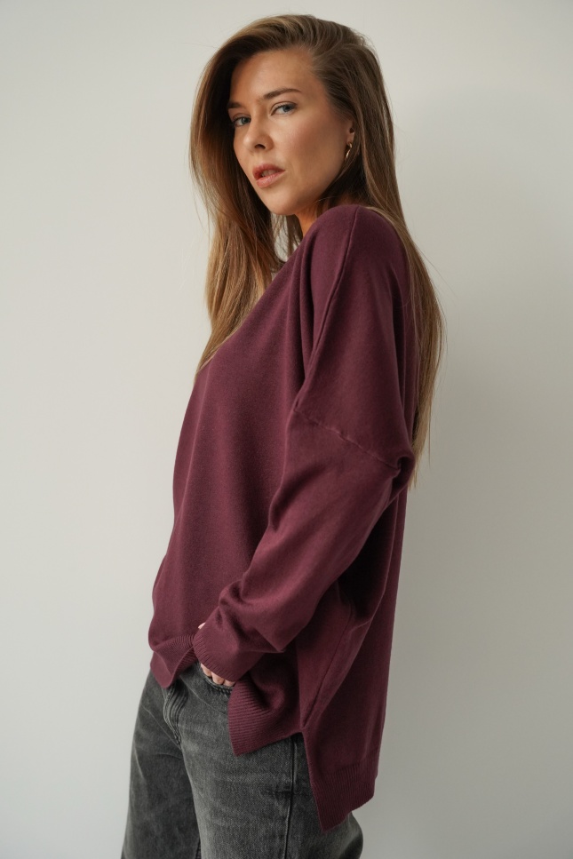 Kaszmirowy sweterek z dekoltem w serek Pura burgund