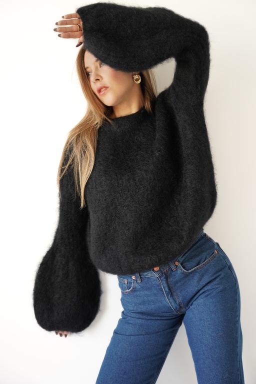Puszysty sweterek z kid moheru z rękawami typu dzwonek Philo czarny