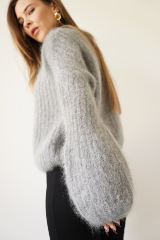 Puszysty sweterek z kid moheru z rękawami typu dzwonek Philo szary