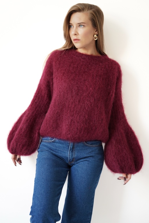 Puszysty sweterek z kid moheru z rękawami typu dzwonek Philo burgund