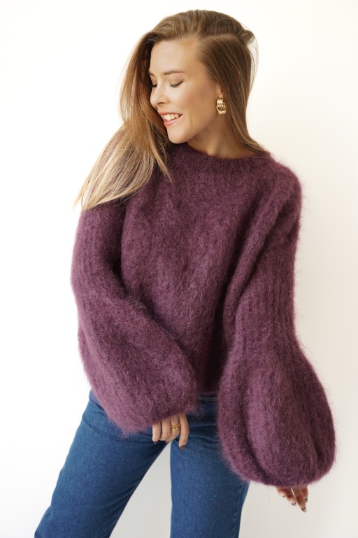 Puszysty sweterek z kid moheru z rękawami typu dzwonek Philo śliwka