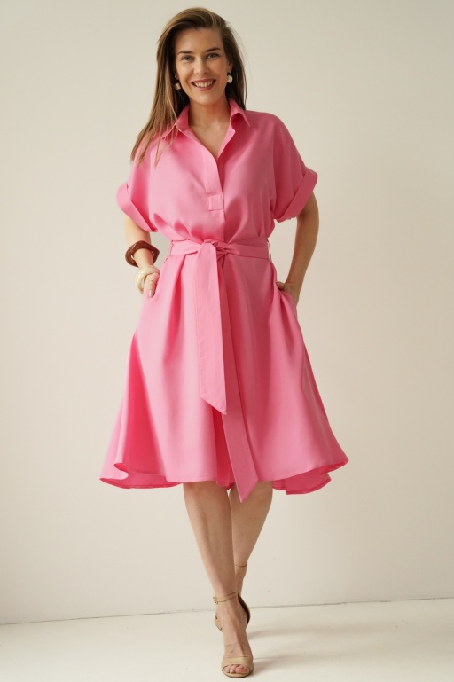 Luźna sukienka szmizjerka z domieszką jedwabiu Fiore pink imperiale