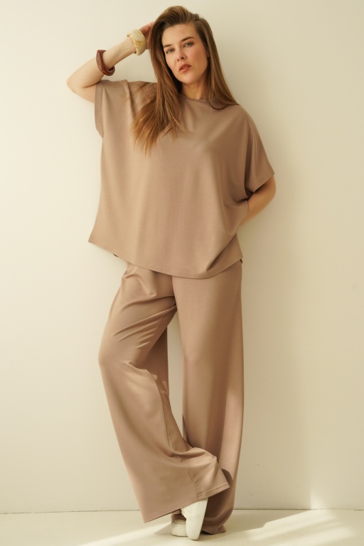 Minimalistyczny luźny komplet z modalu Dasha cappuccino