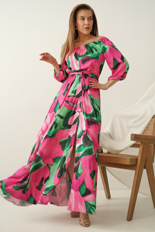 Maxi sukienka typu hiszpanka z rozcięciem Carmen contour rose