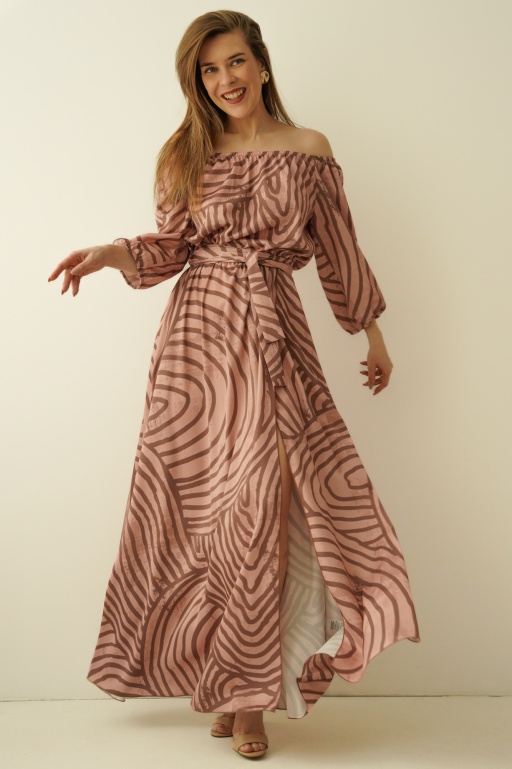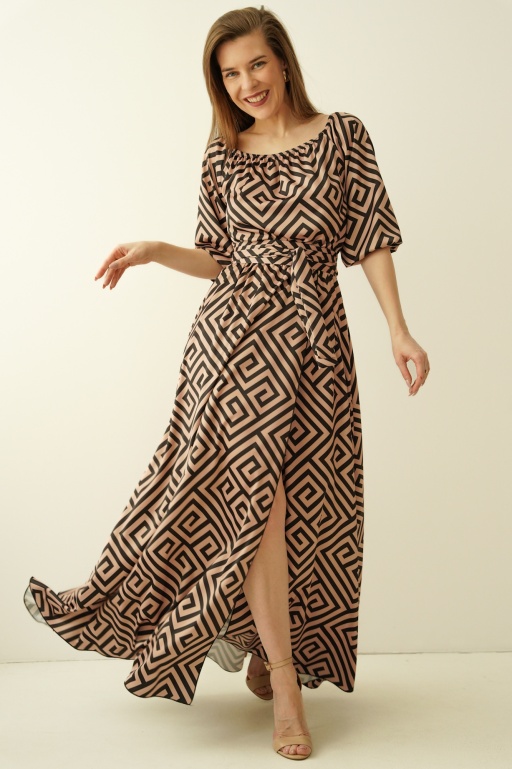 Maxi sukienka typu hiszpanka z rozcięciem Carmen marble