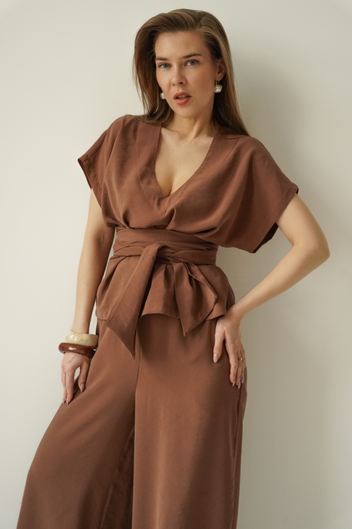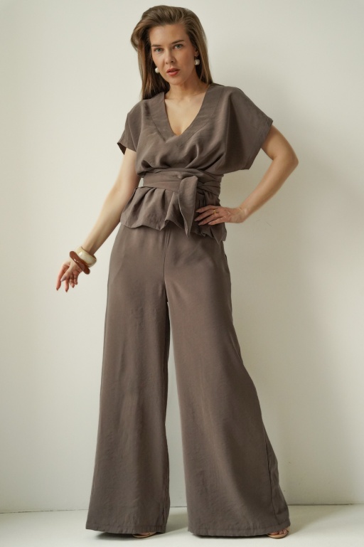 Minimalistyczny komplet z szerokimi spodniami Sonia mocca
