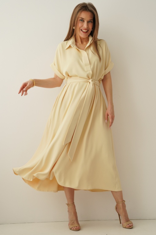 Luźna sukienka smart casual z kołnierzykiem Elan pastelowy żółty