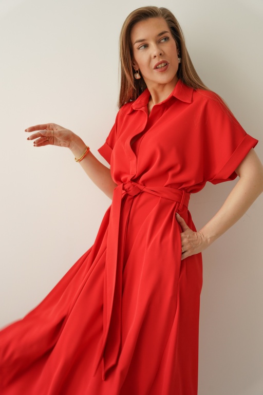 Luźna sukienka smart casual z kołnierzykiem Elan czerwona