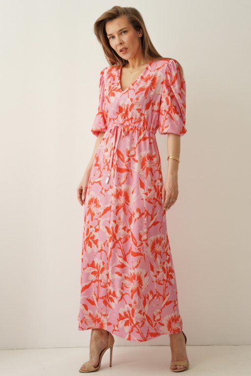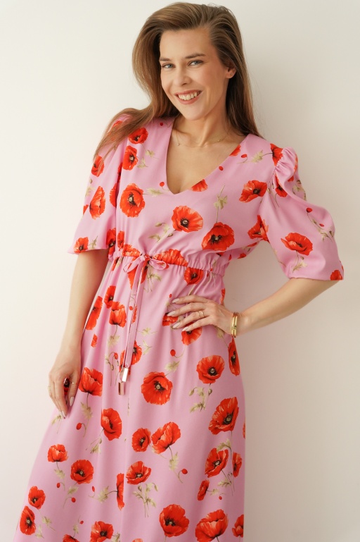 Kobieca sukienka w kwiatowy wzór z bufiastymi rękawami Florence poppy