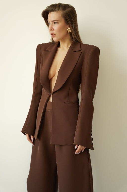 Elegancki komplet garniturowy office look Inez czekoladowy