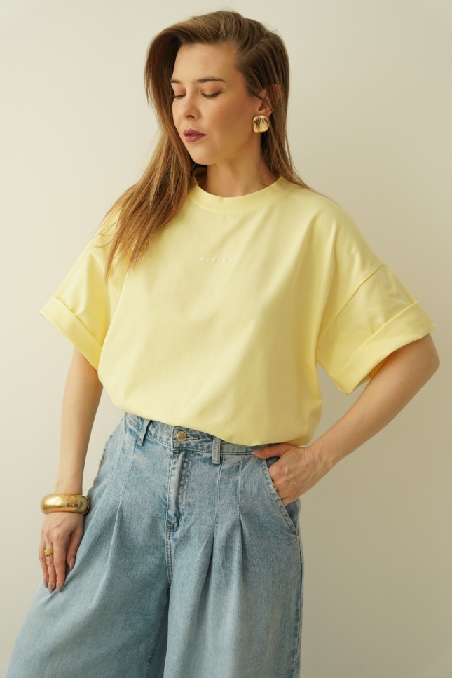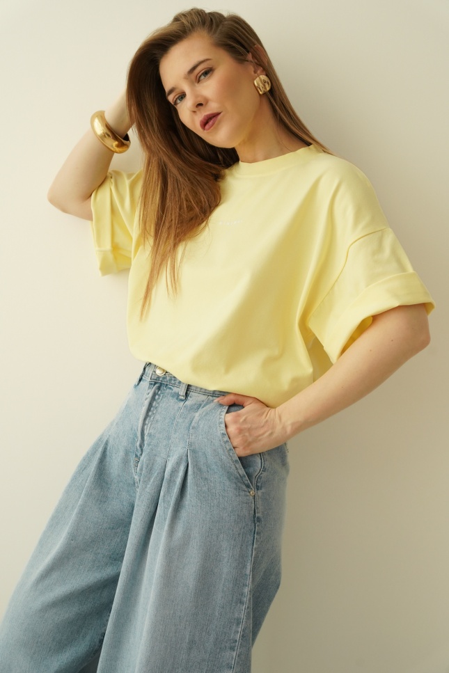 Klasyczny basic t-shirt Puro pastelowy żółty