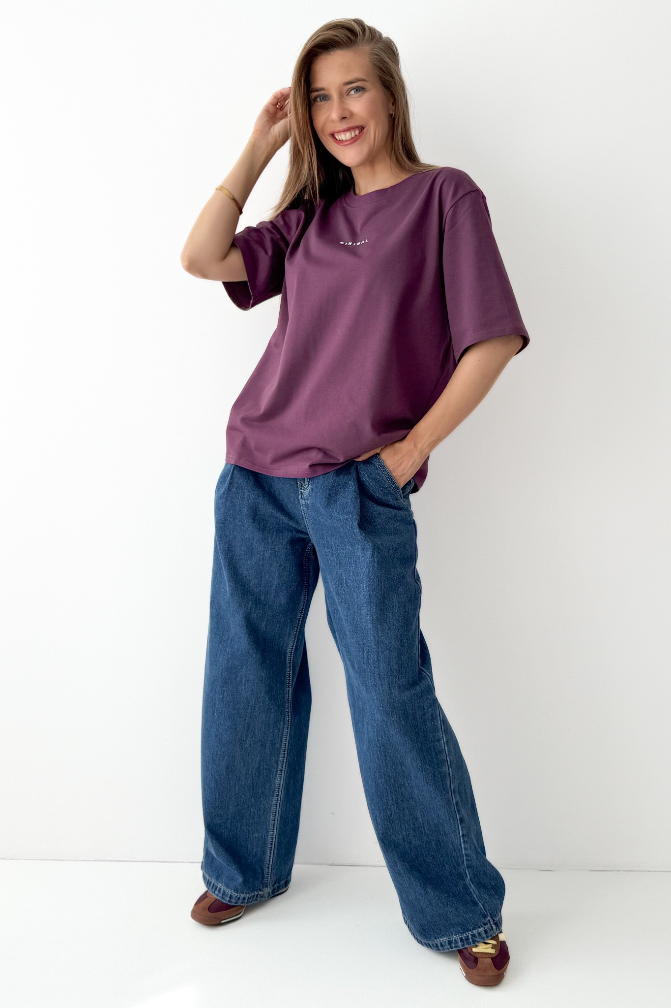 Klasyczny, basicowy t-shirt z minimalistycznym nadrukiem to kwintesencja współczesnej prostoty. Wykonany z miękkiej, delikatnej bawełny z subtelnym dodatkiem elastanu, doskonale dopasowuje się do sylwetki, zapewniając komfort noszenia przez cały dzień.