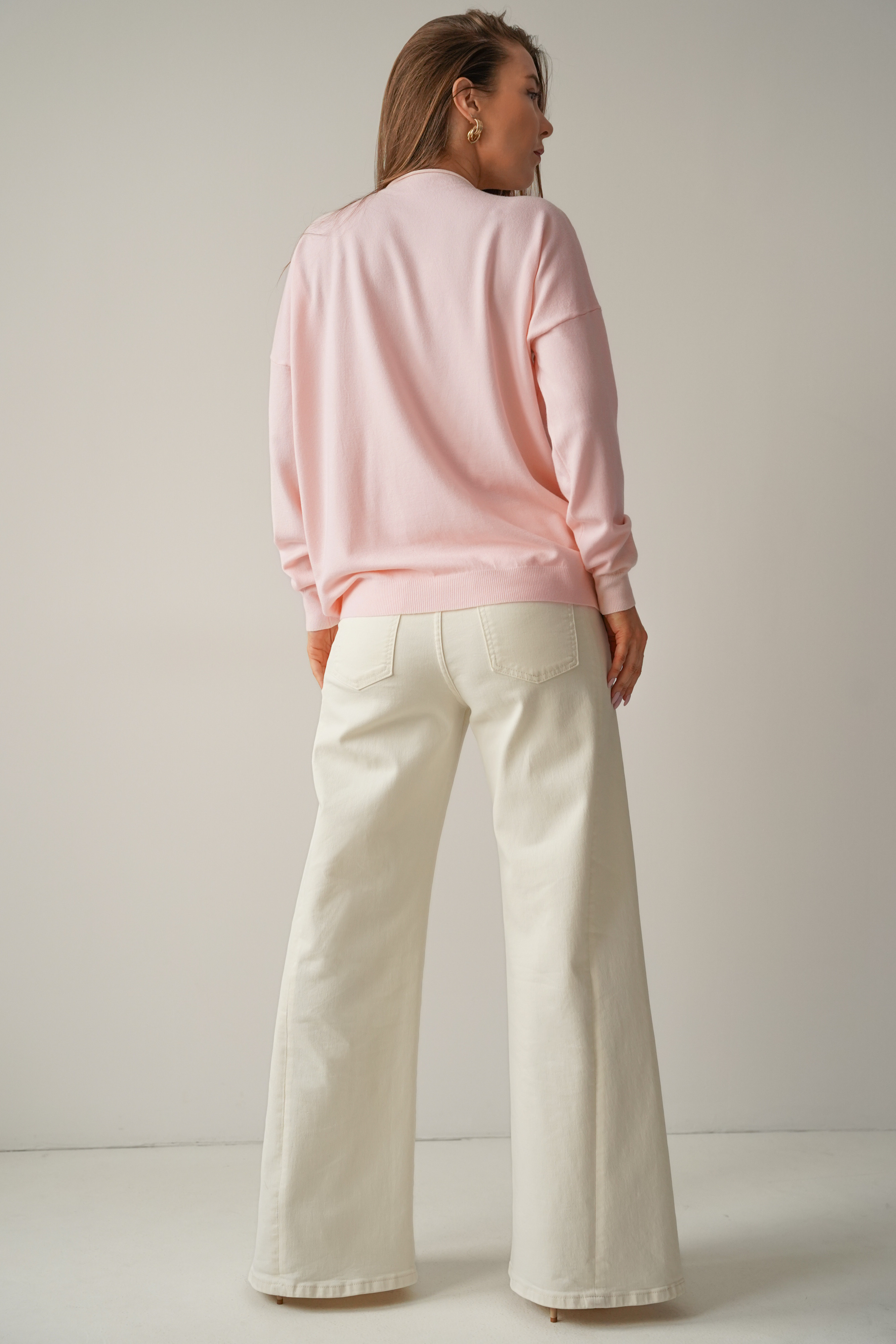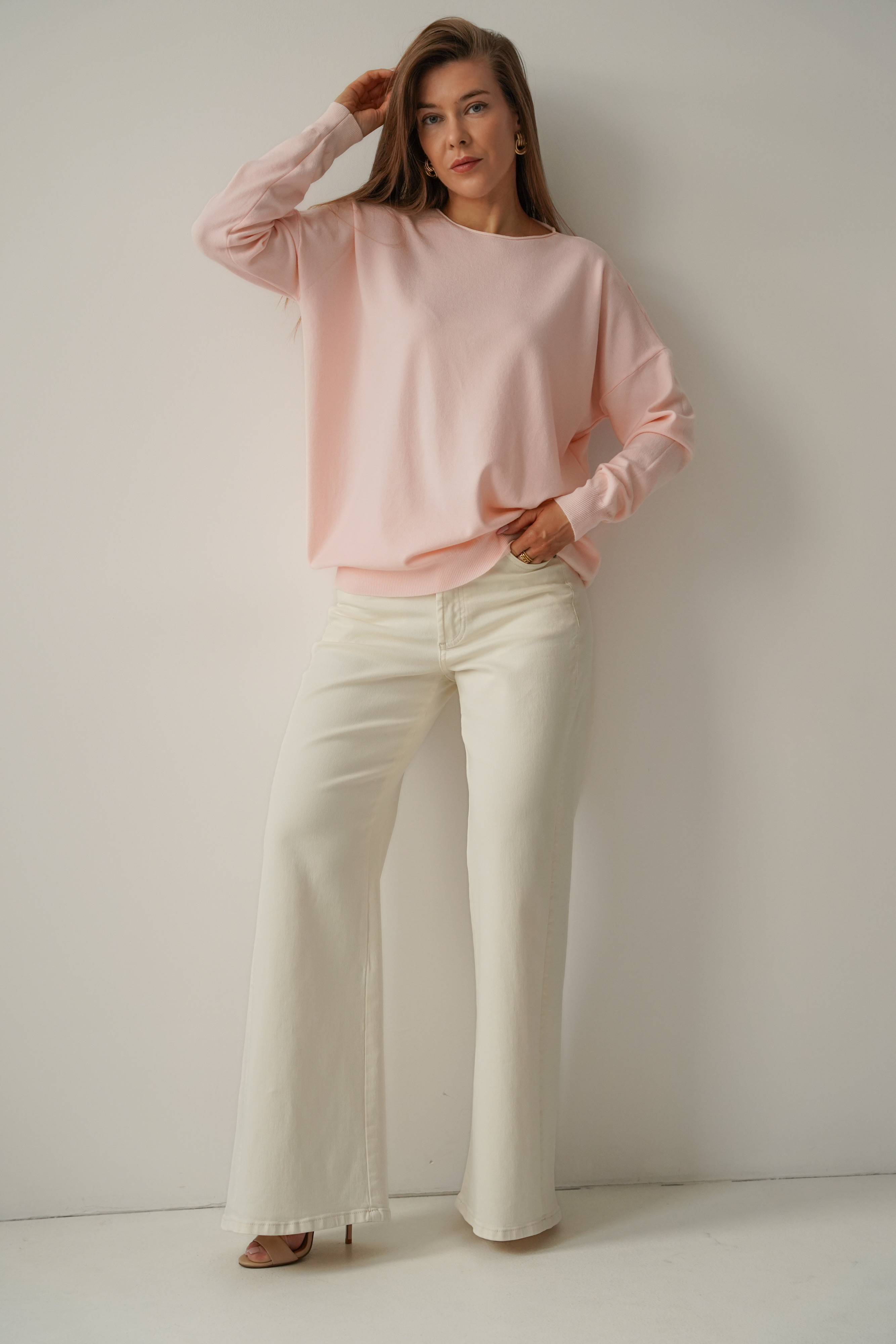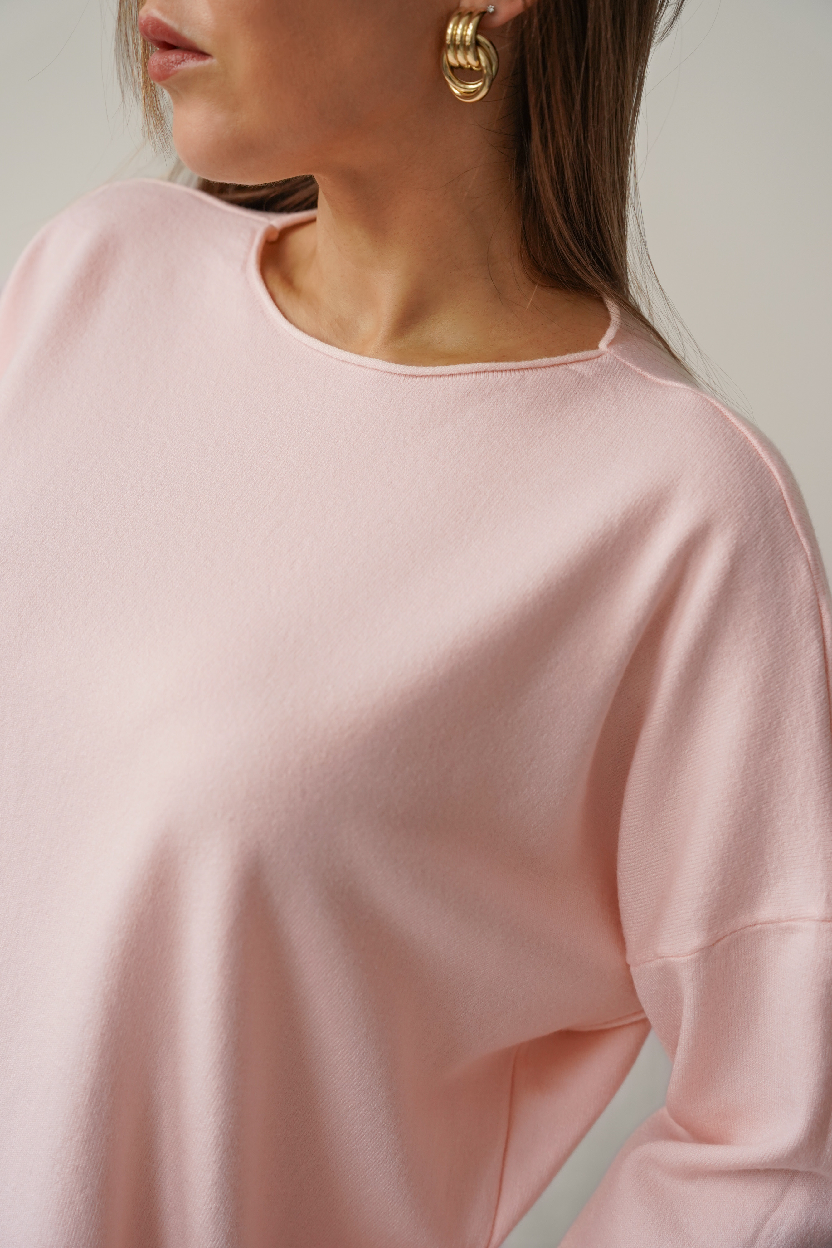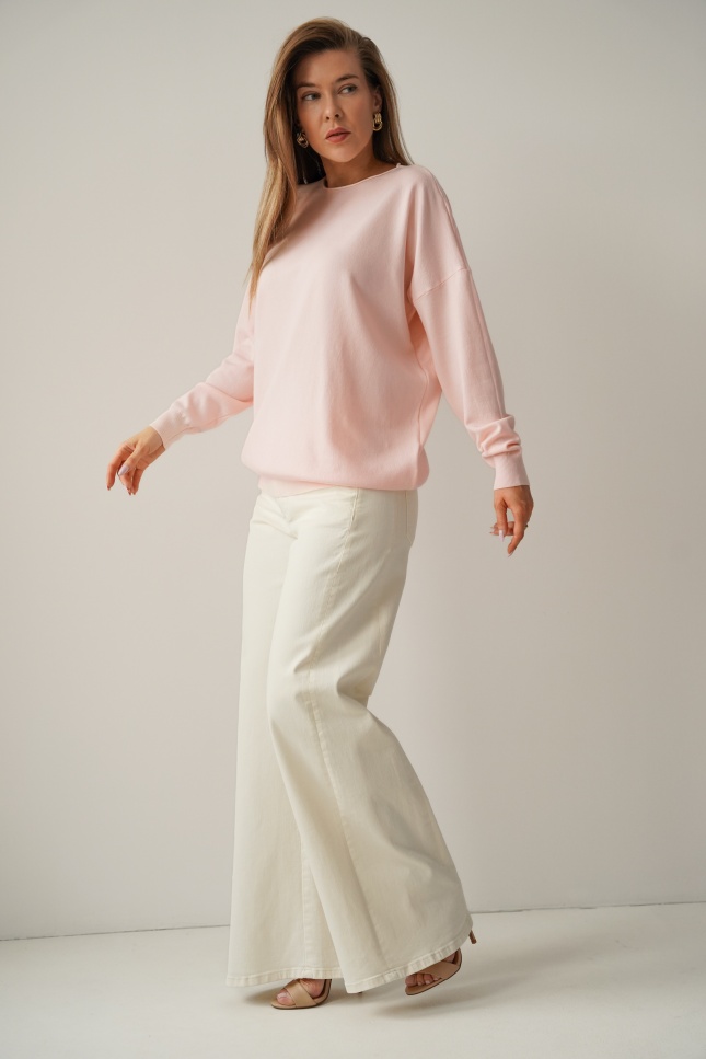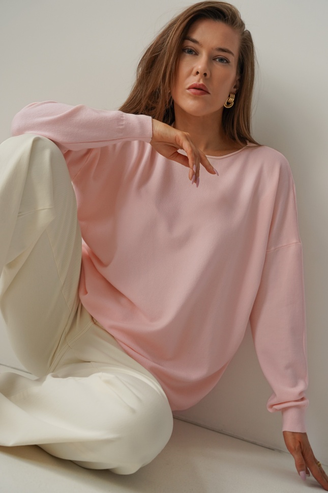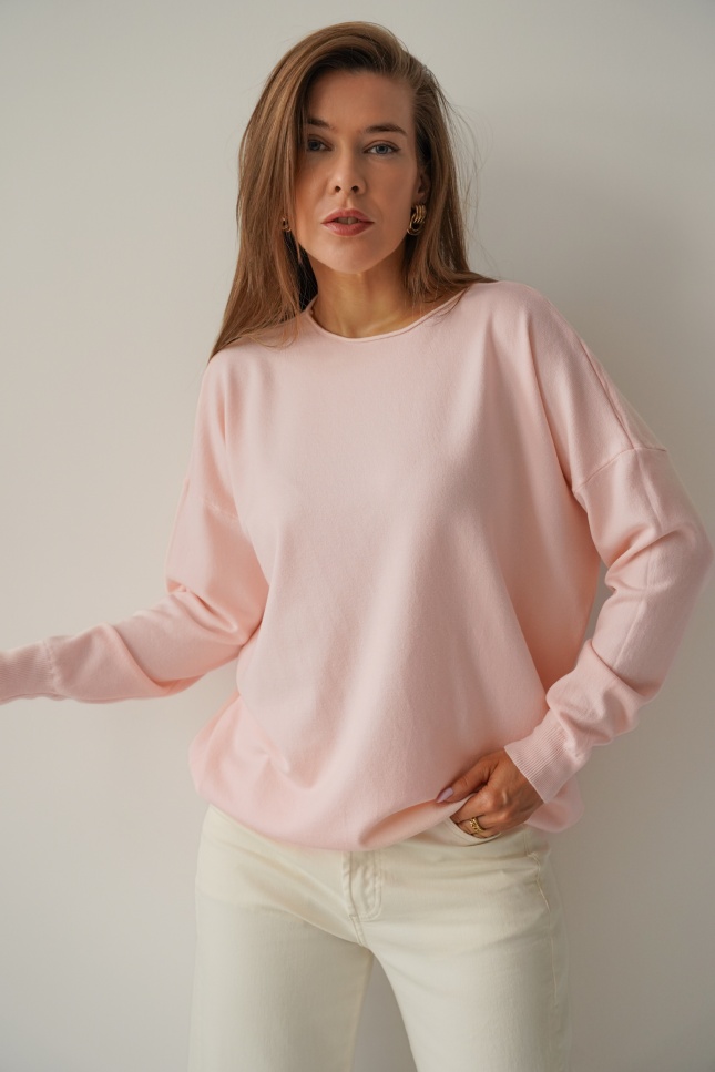Klasyczny luźny sweterek z kaszmirem Ette pudrowy róż