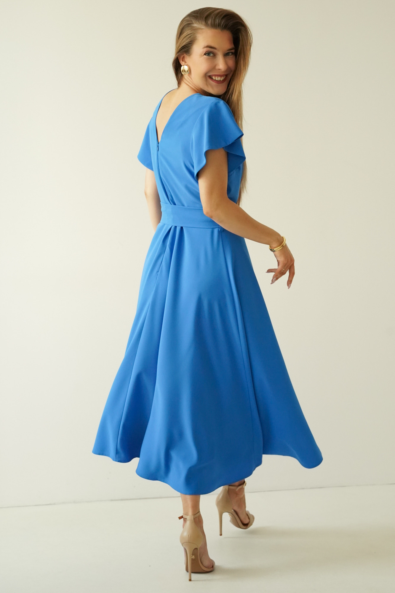 „Feminine Charm” będzie perfekcyjnym wyborem zarówno na wyjątkowe okazje, takie jak wesele, komunia czy rodzinne uroczystości, jak i w eleganckiej odsłonie do biura, na spotkania biznesowe, czy romantyczny obiad w mieście. Zestaw ją z klasycznymi sandałkami na obcasie lub eleganckimi czółenkami, dodaj subtelną biżuterię, a uzyskasz look zgodny z trendami..