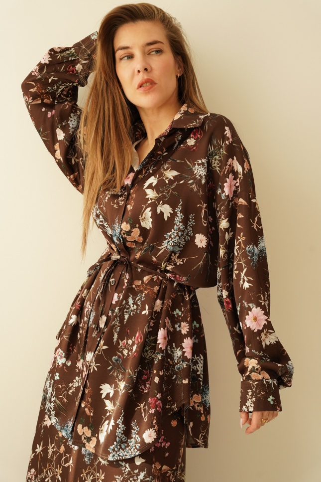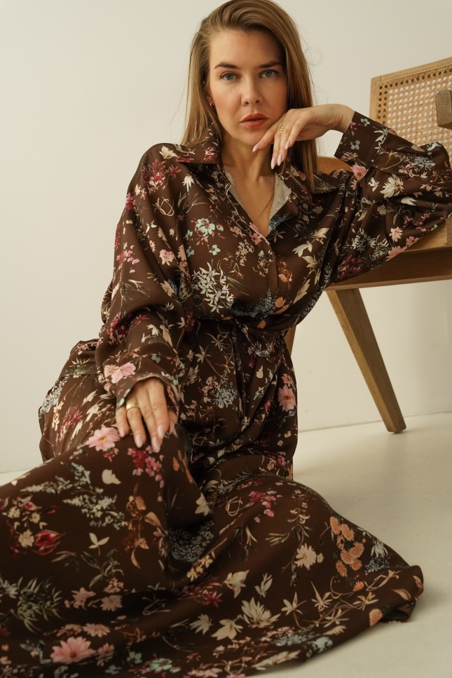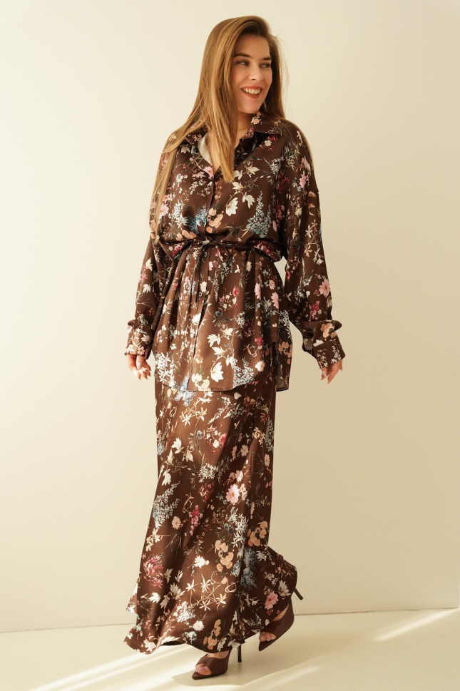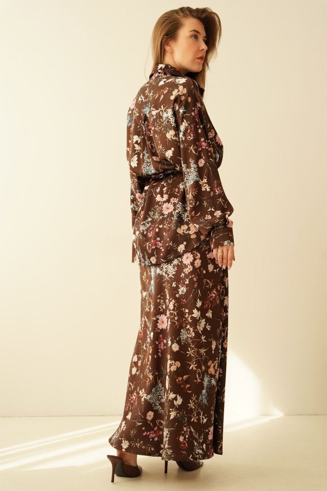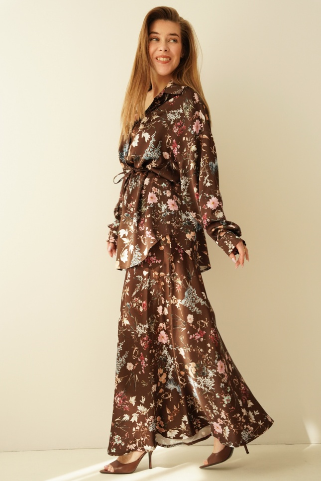 Kobiecy komplet koszula i spódnica maxi Anais chocolate meadow