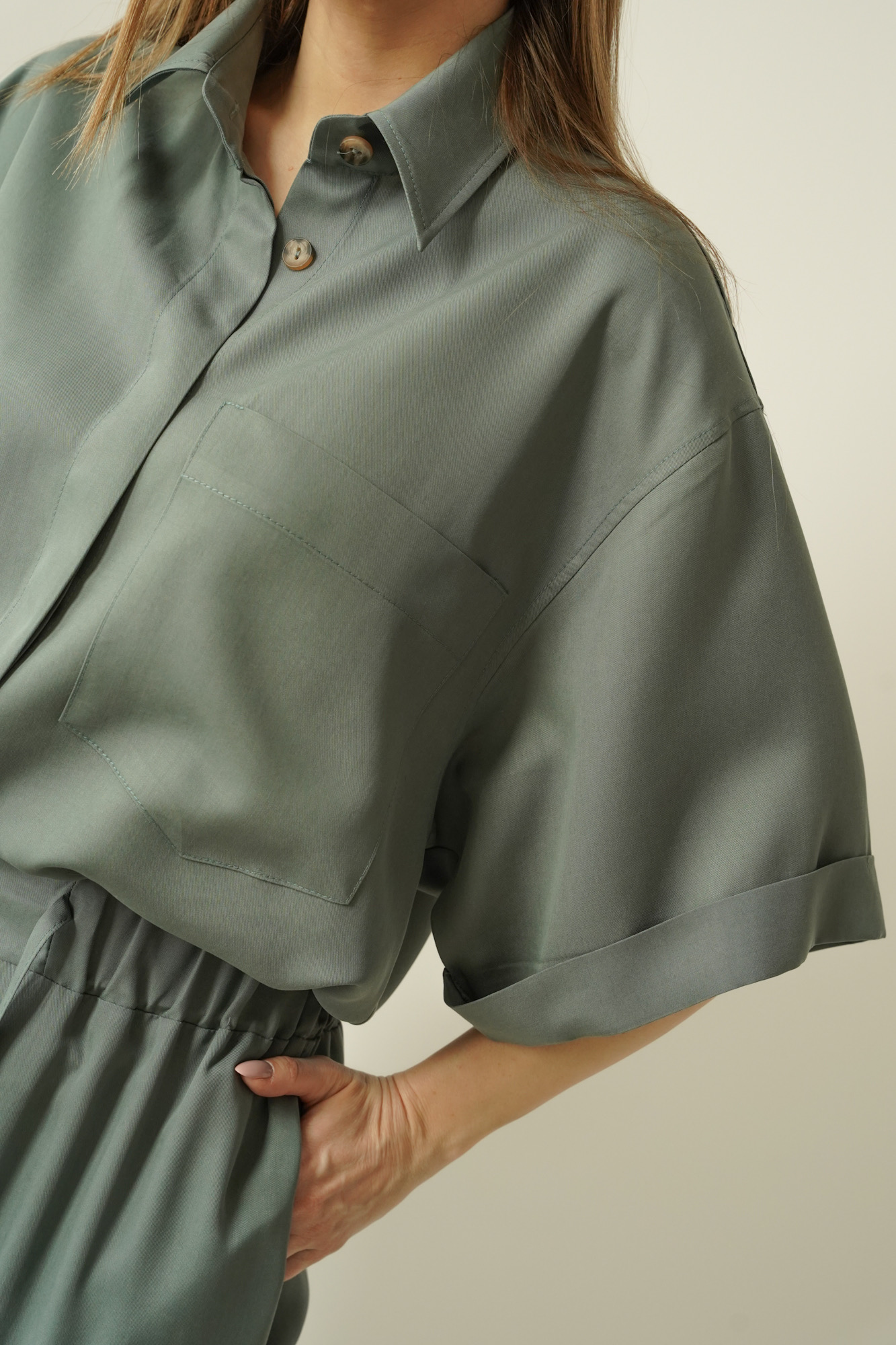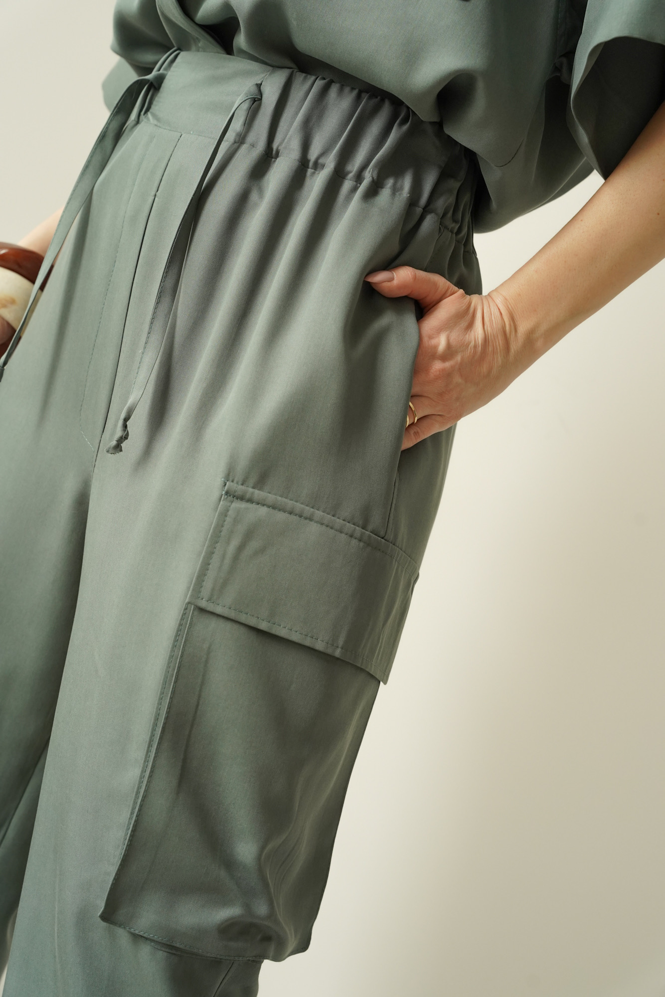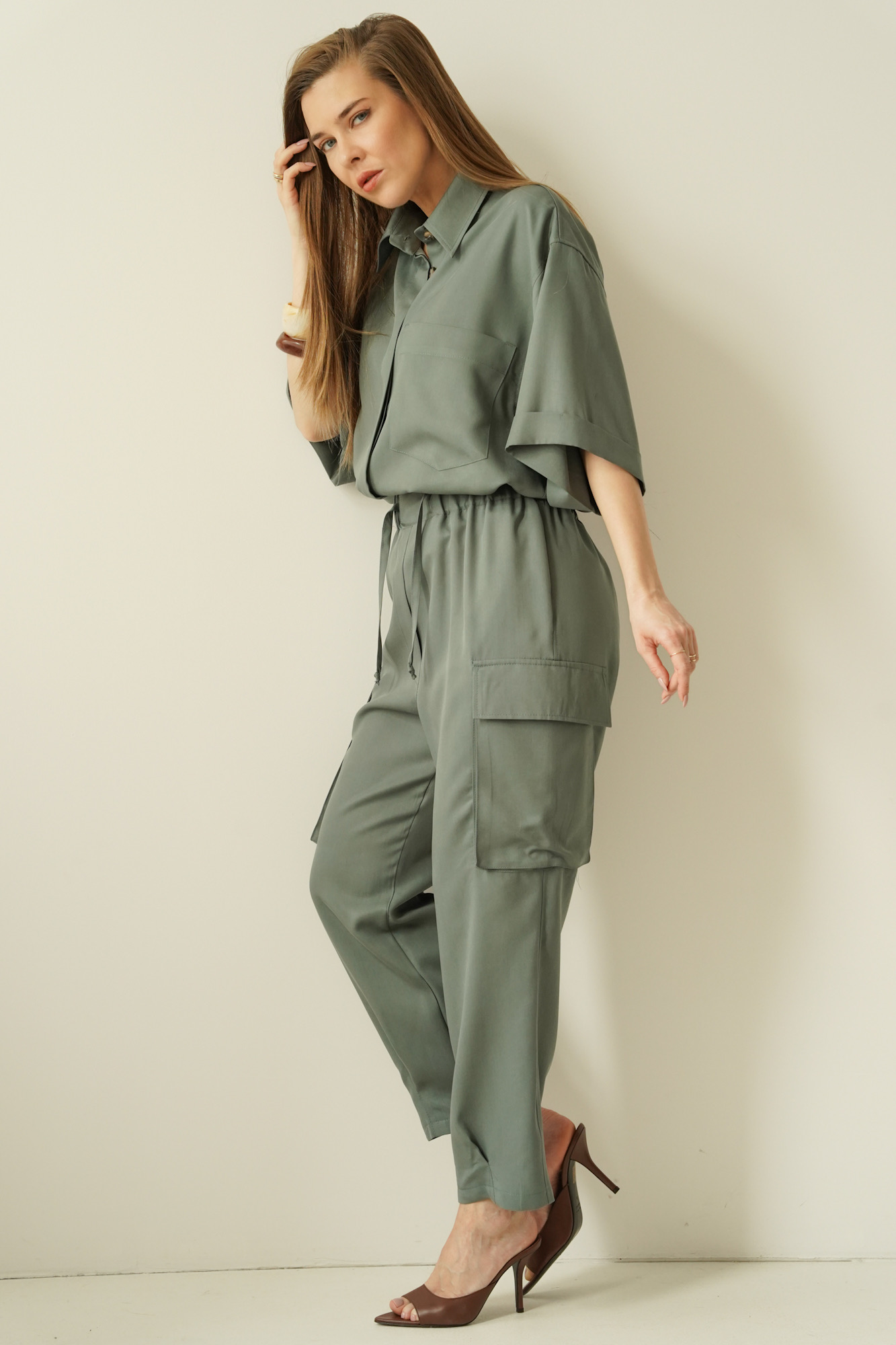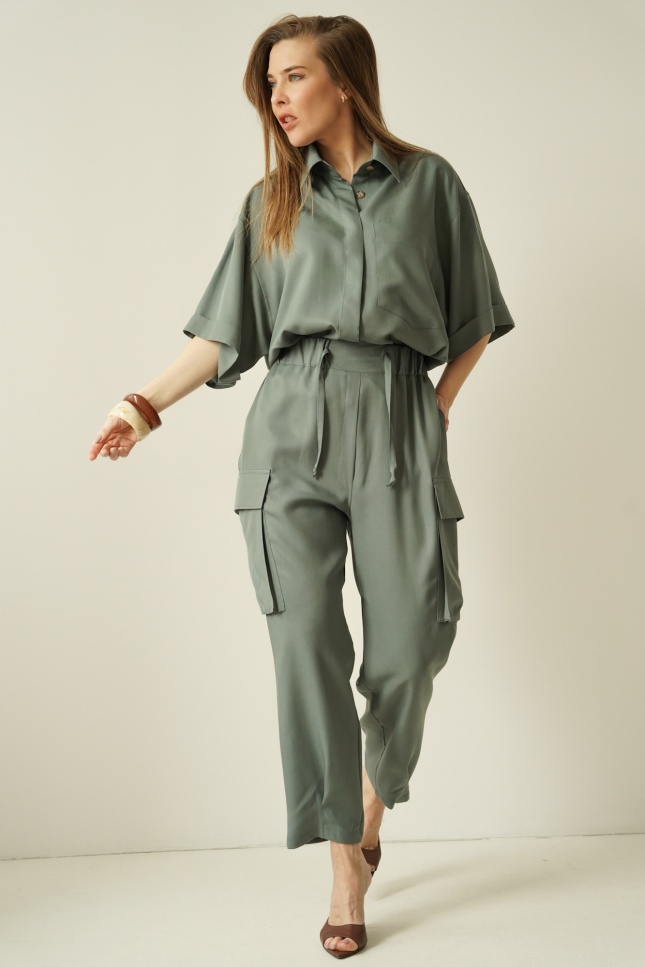 Safari to casualowy komplet damski inspirowany stylem safari, uszyty w polskiej szwalni z naturalnej, przewiewnej tkaniny 100% tencel. Zestaw tworzą nowoczesna pudełkowa koszula oraz spodnie cargo ze zwężanymi nogawkami, które nadają sylwetce modowego, miejskiego charakteru. Tencel jest miękki, oddychający i przyjemny dla skóry, dzięki czemu komplet doskonale sprawdza się w sezonie wiosna–lato. Model Safari to idealny wybór na co dzień, do miasta, na wyjazdy i do stylizacji smart casual. Ponadczasowa forma, naturalny materiał i lokalna produkcja sprawiają, że to komplet premium, który łączy wygodę z nowoczesną elegancją.