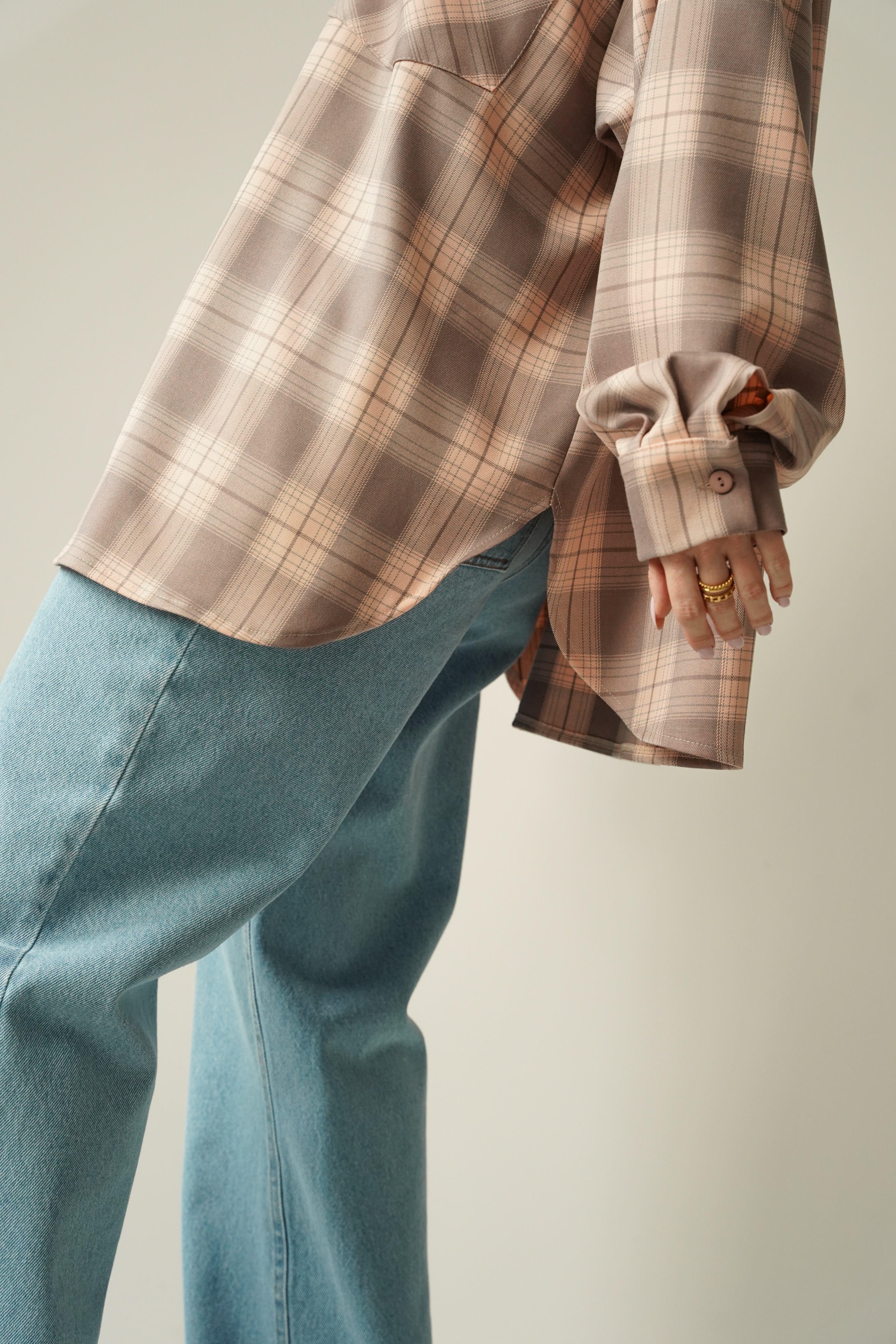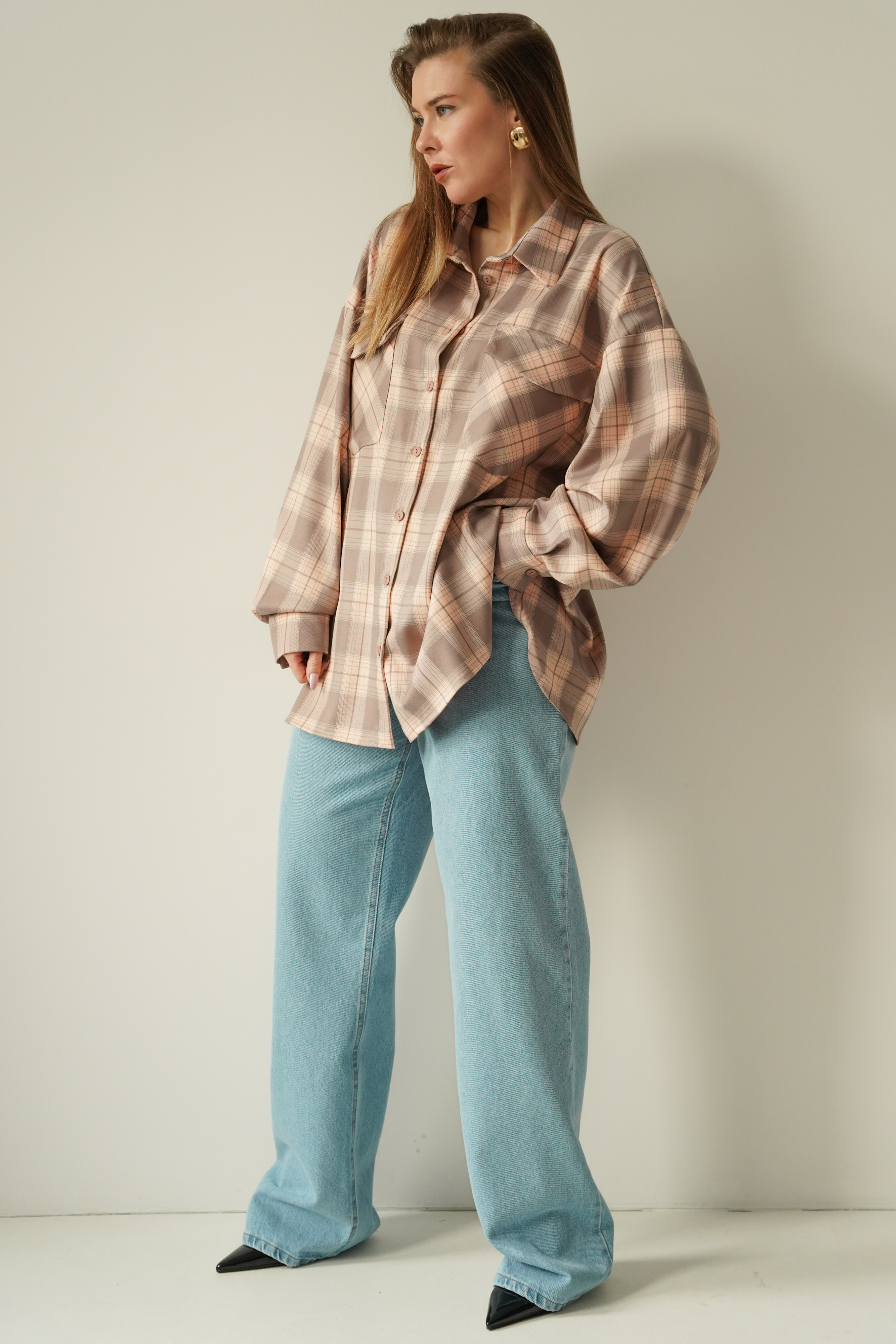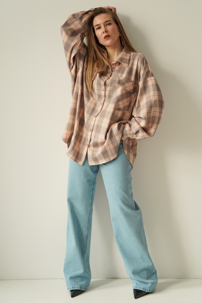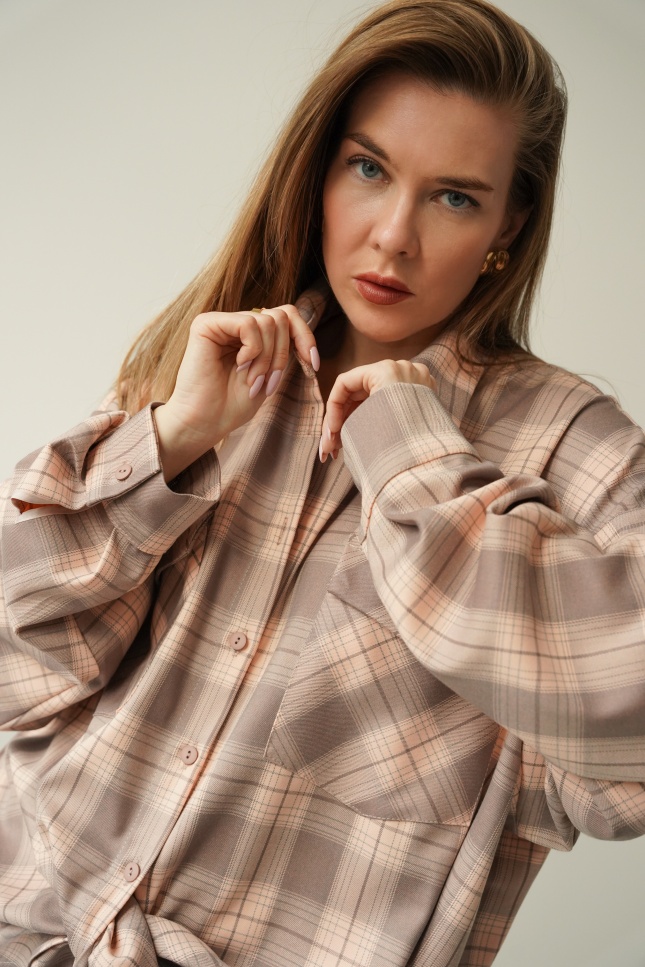 Oversizowa koszula EASE z klasycznym kołnierzykiem i mankietami. Uszyta z miękkiej mieszanki wiskozy i bawełny, w pastelową kratę. Lekka, oddychająca, idealna do codziennych stylizacji w duchu nowoczesnego streetwearu.