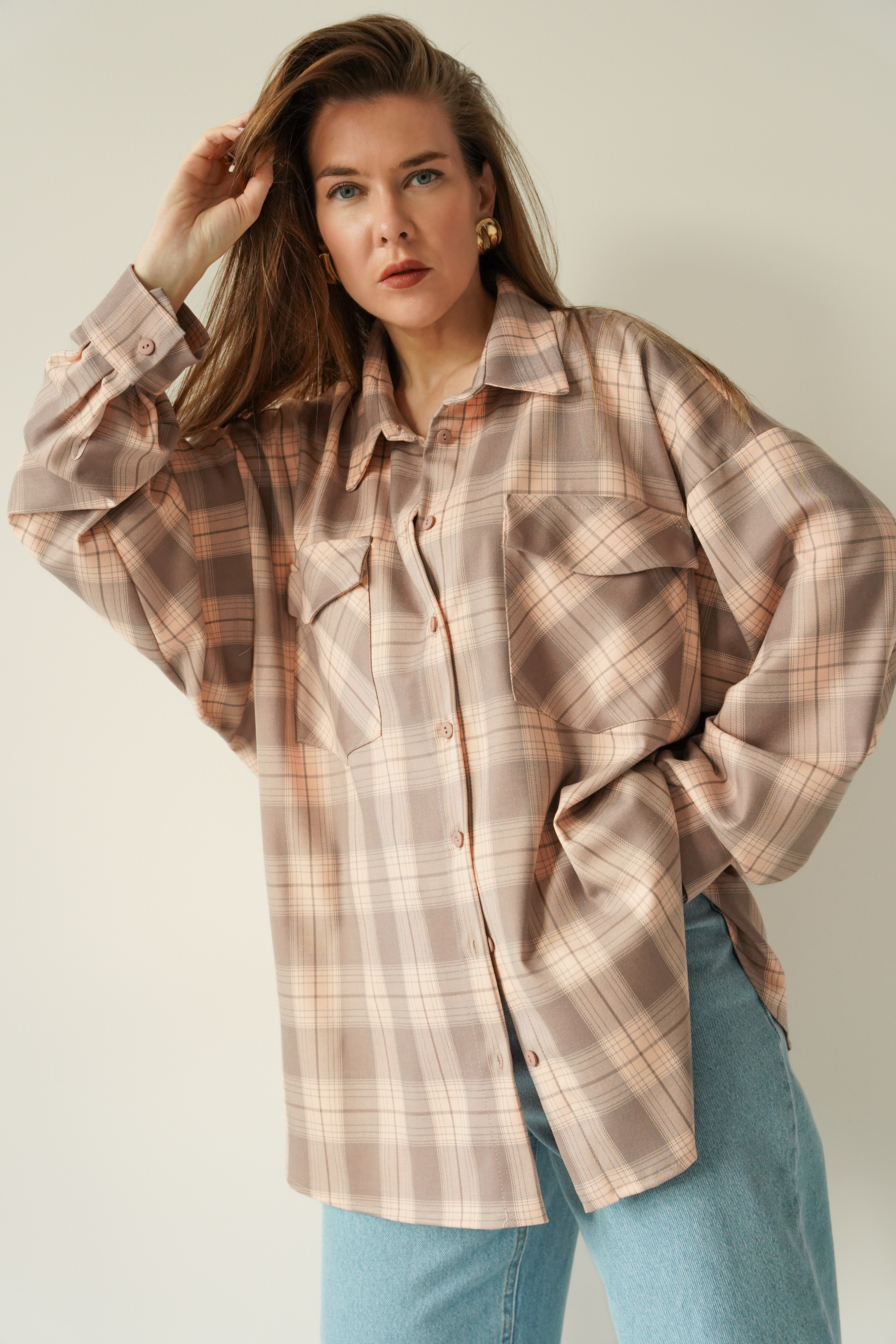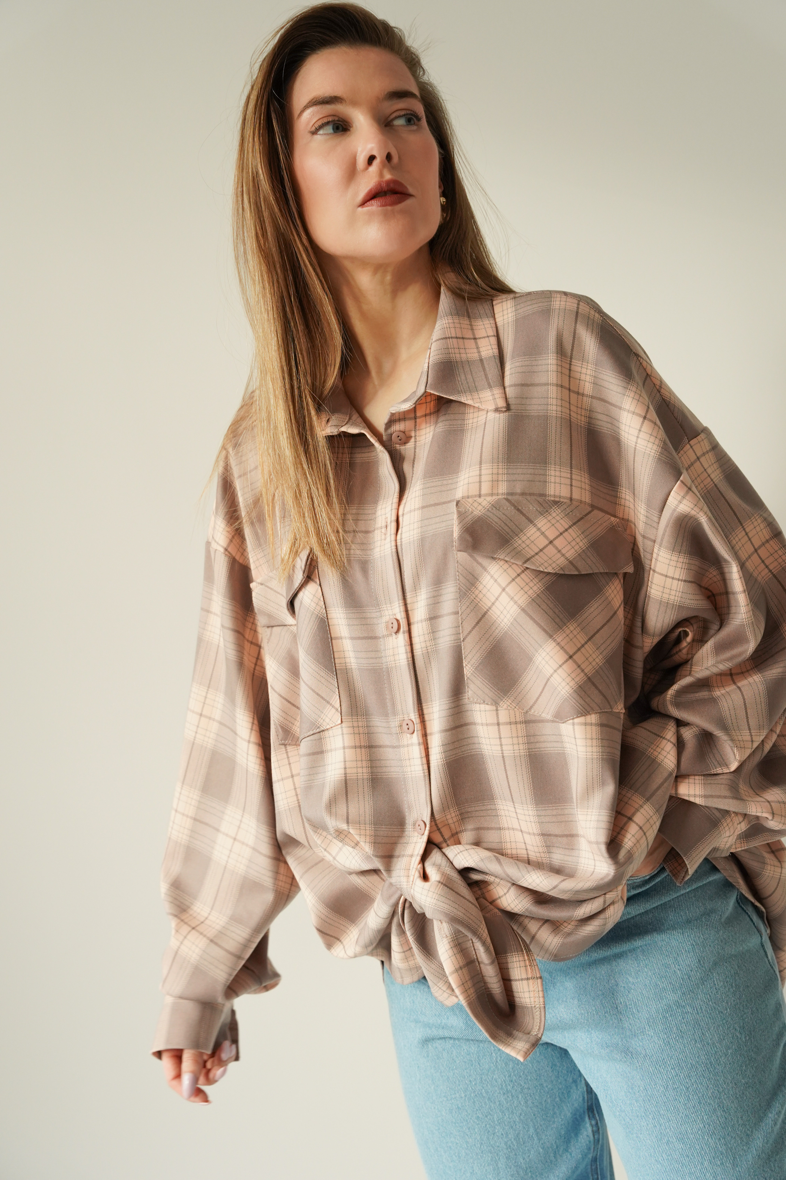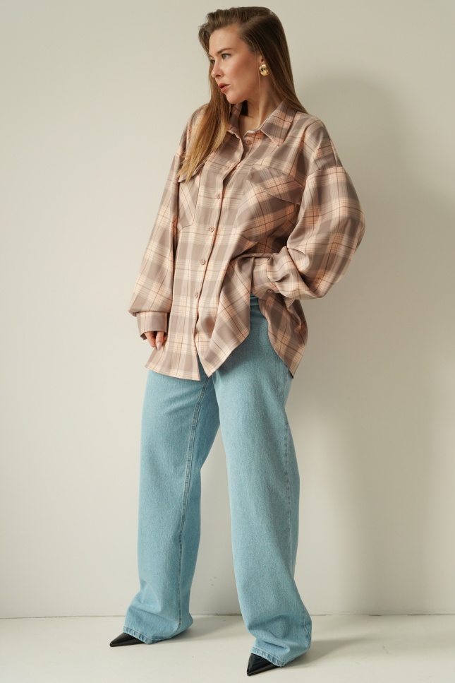 Oversizowa koszula EASE z klasycznym kołnierzykiem i mankietami. Uszyta z miękkiej mieszanki wiskozy i bawełny, w pastelową kratę. Lekka, oddychająca, idealna do codziennych stylizacji w duchu nowoczesnego streetwearu.