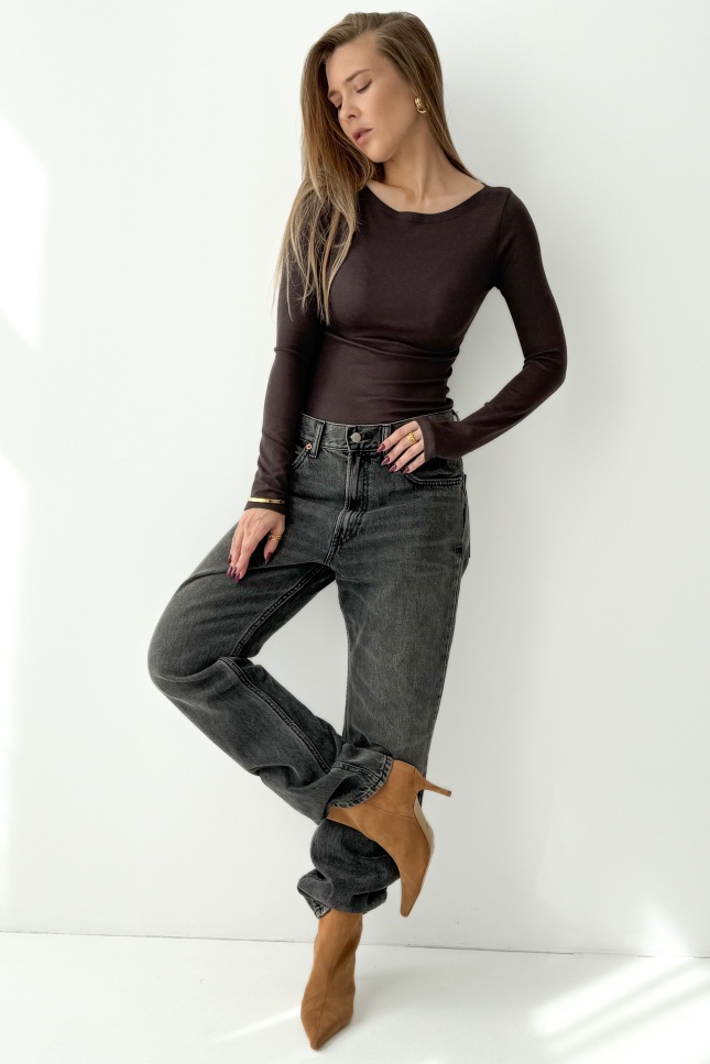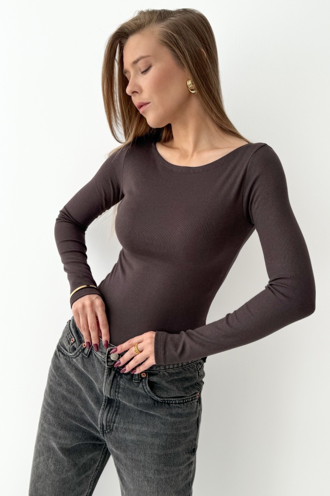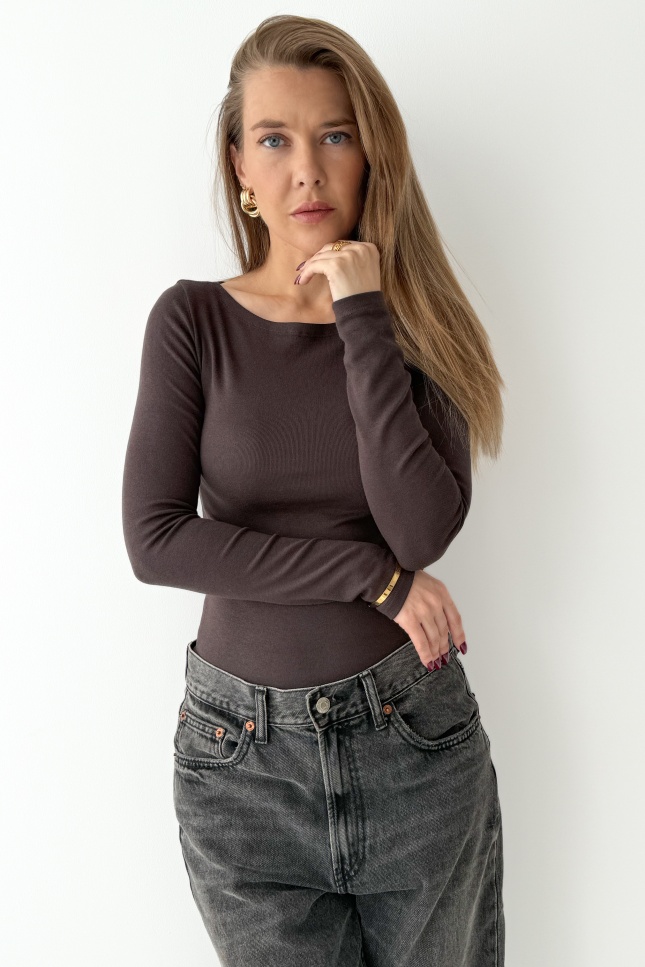 Klasyczny longsleeve z bawełny organicznej i modalu Lia czekolada