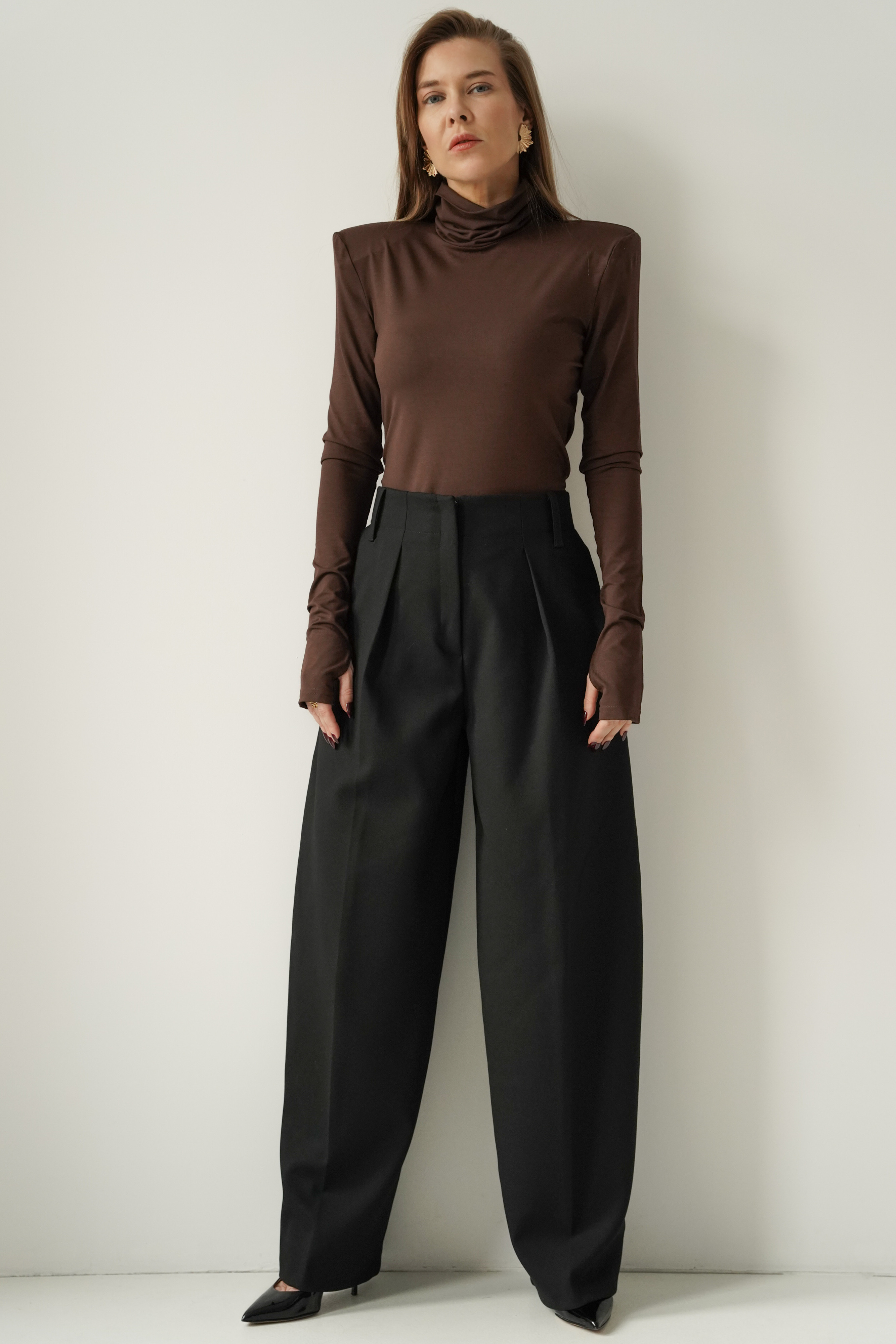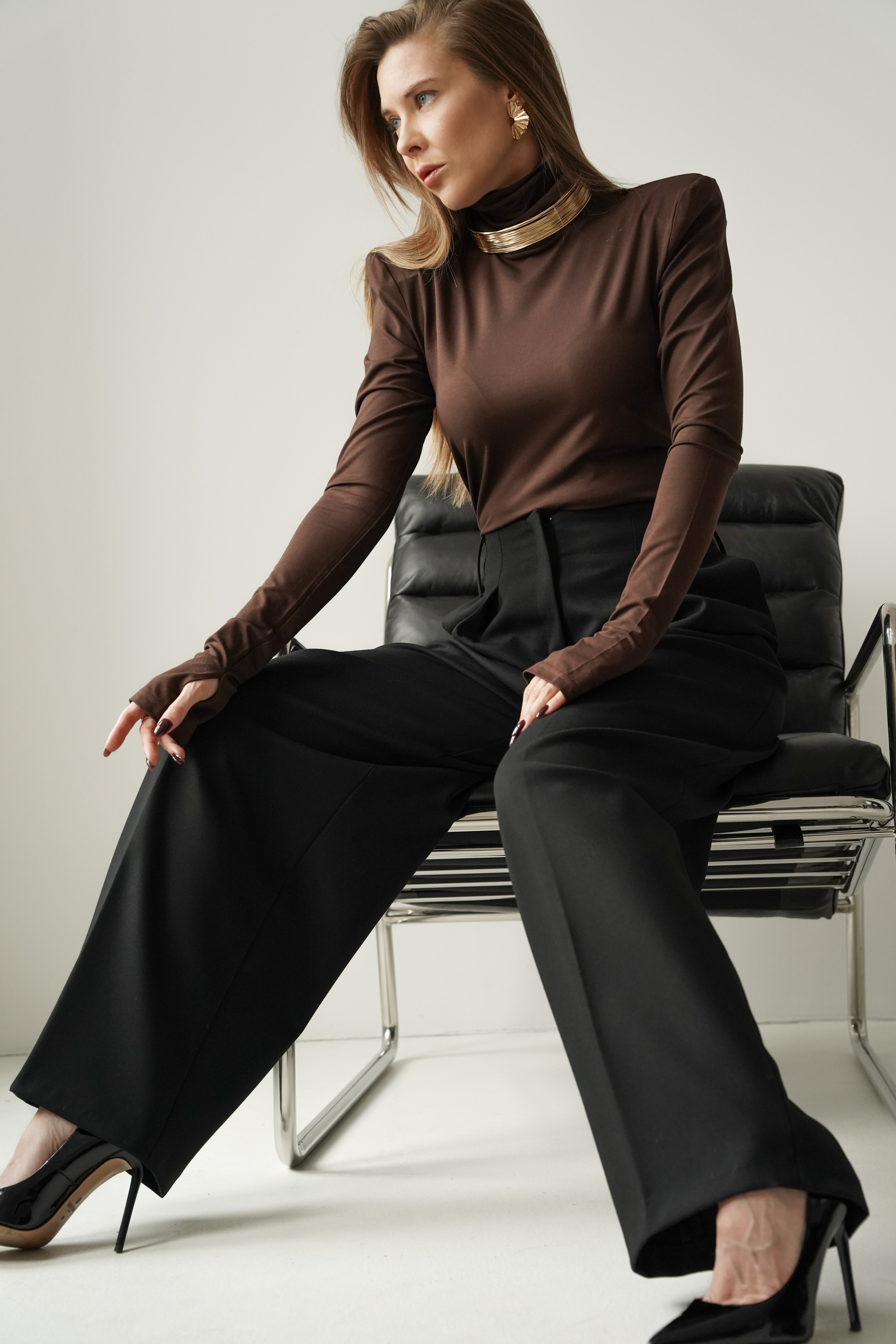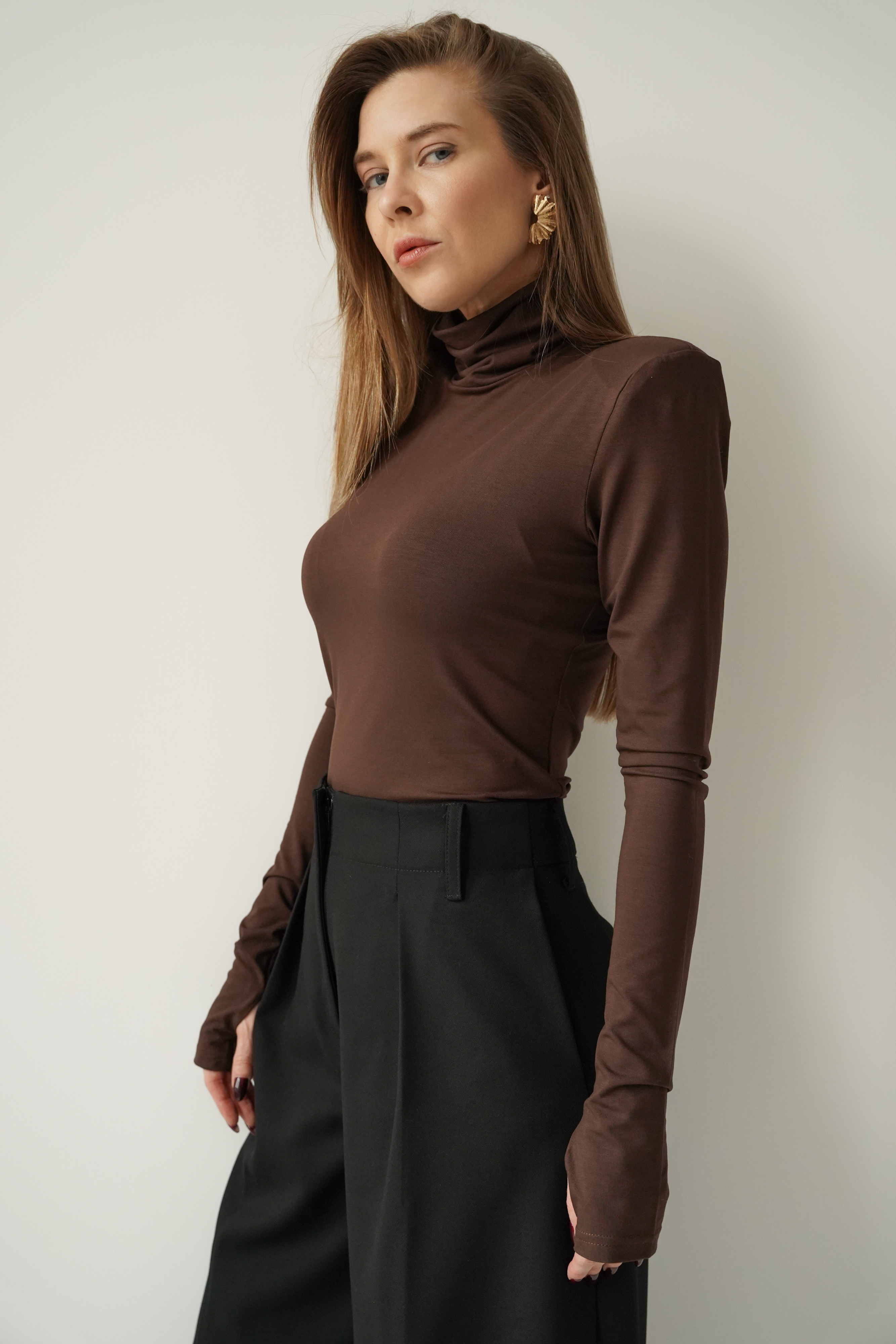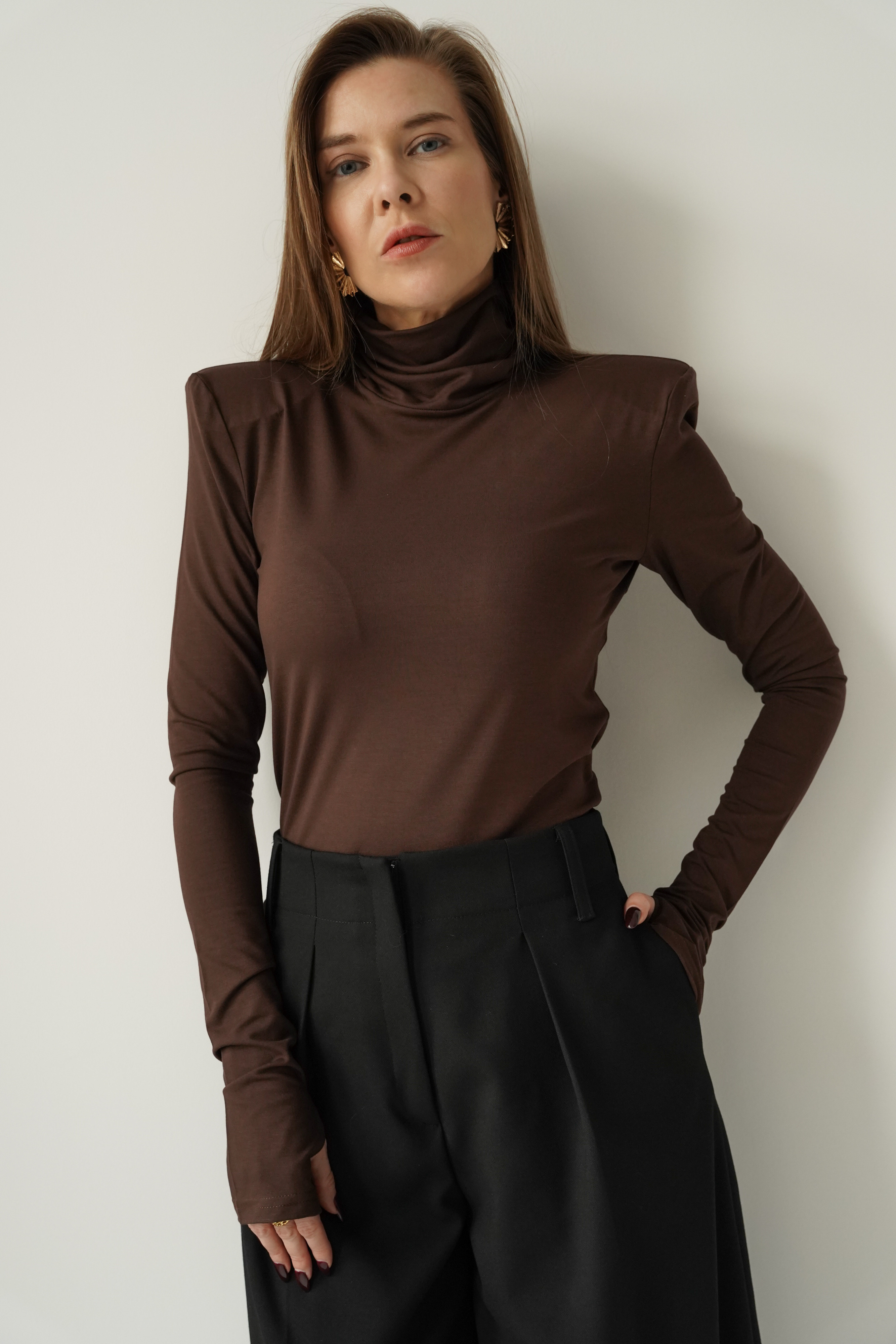 „MONÉ” to nowoczesny golf z miękkiego modalu, wyposażony w poduszki w ramionach i długie rękawy z otworem na kciuk. Minimalistyczny, elegancki, idealny jako baza stylizacji biznesowych, wieczorowych i casualowych. Wygodny, lekko chłodny w dotyku, pięknie układa się na sylwetce.
