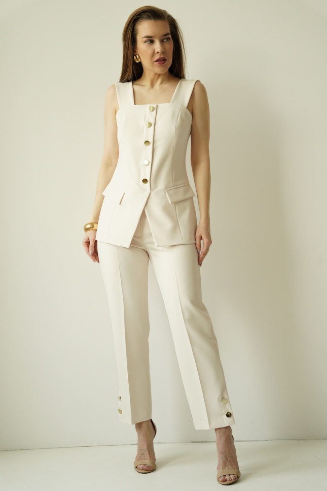Elegancki komplet z dłuższą kamizelką Megan jasny beż