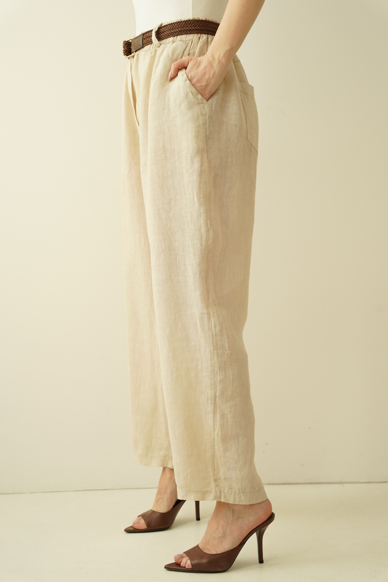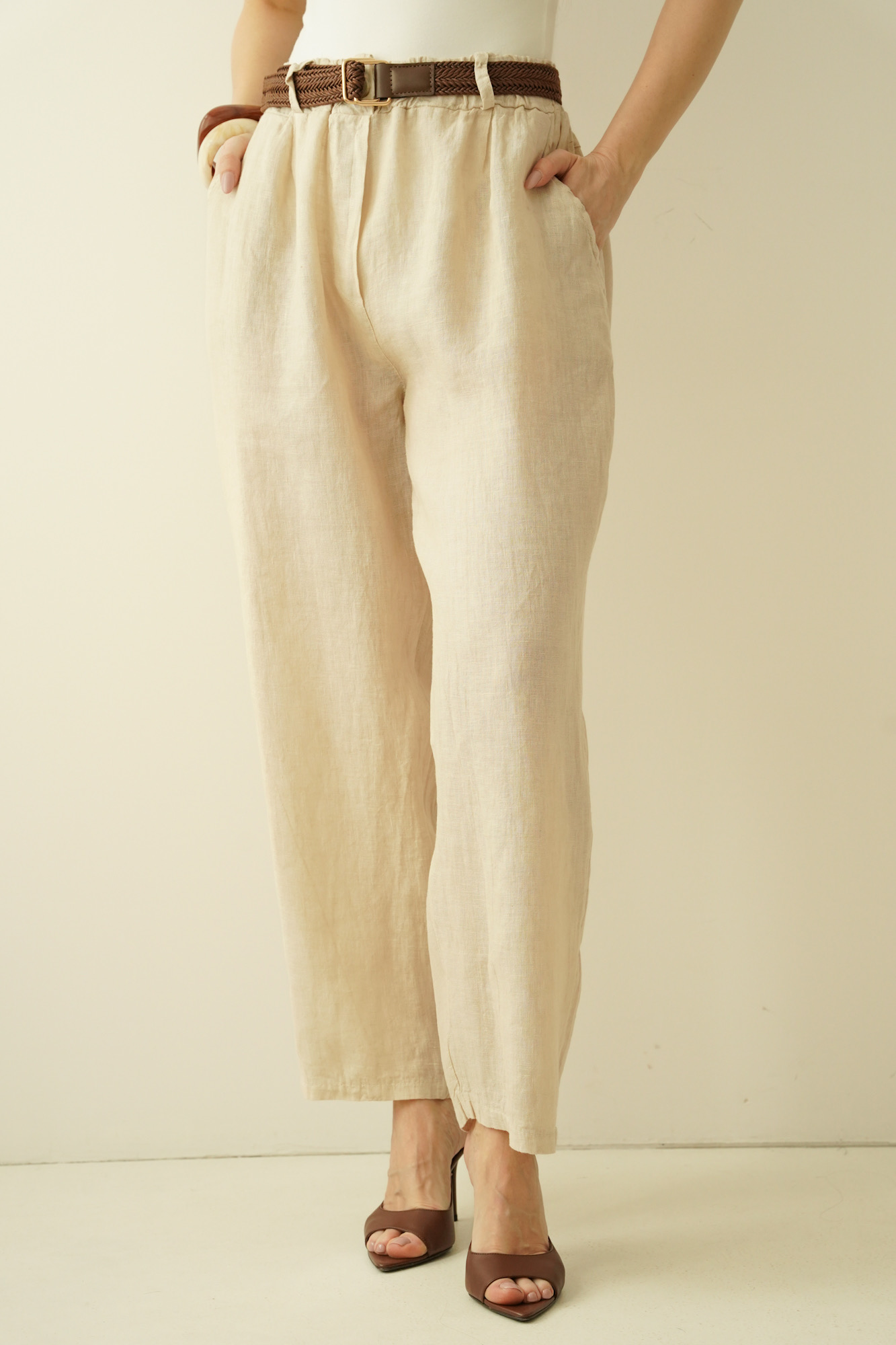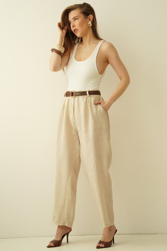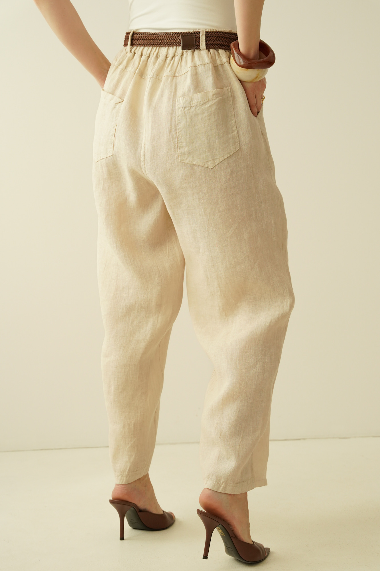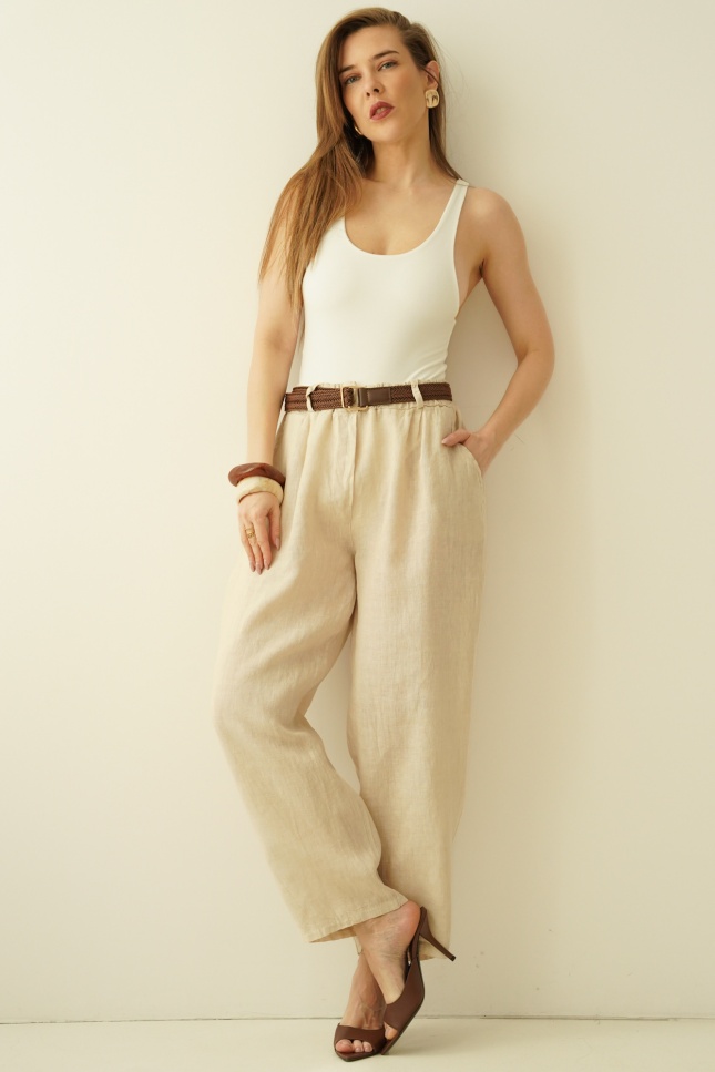 Lniane luźne spodnie z wyższym stanem Kaila beżowe