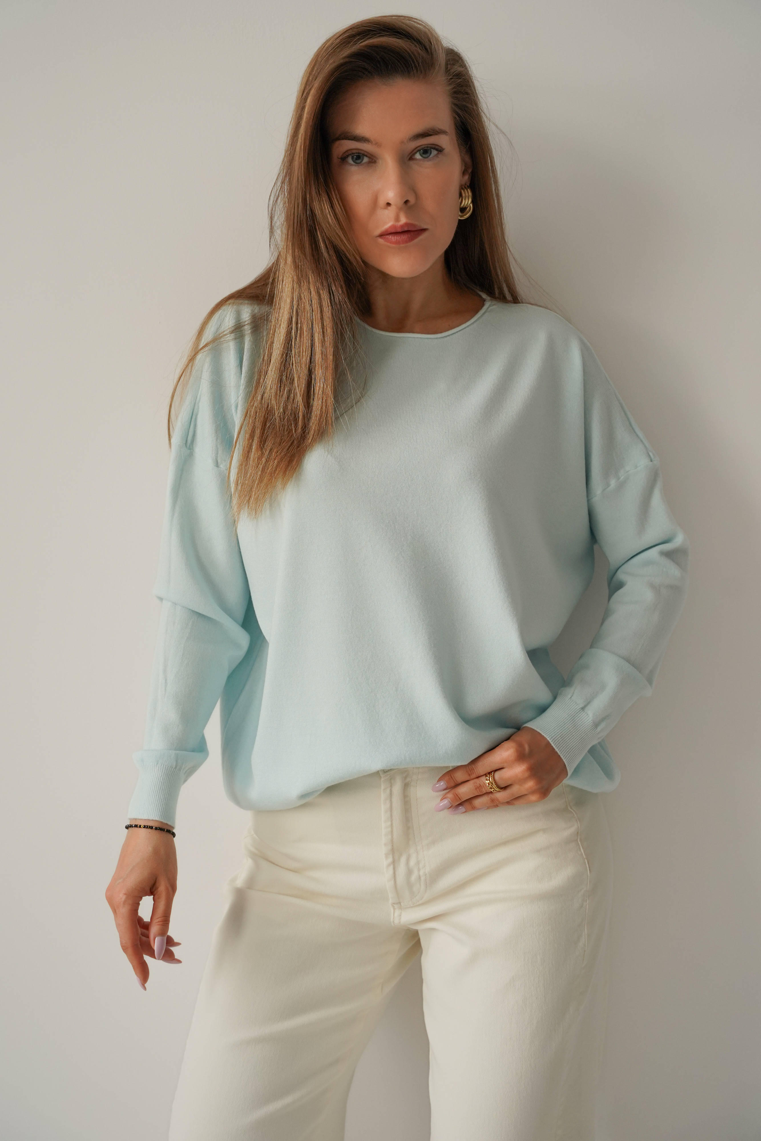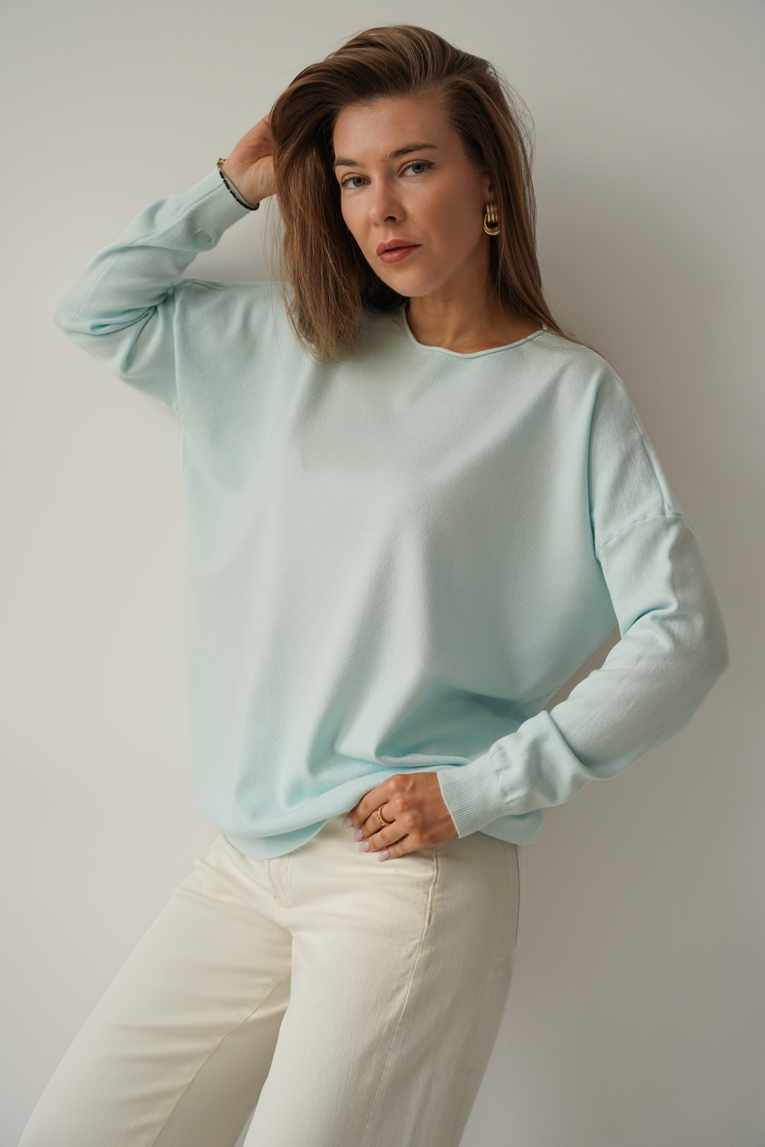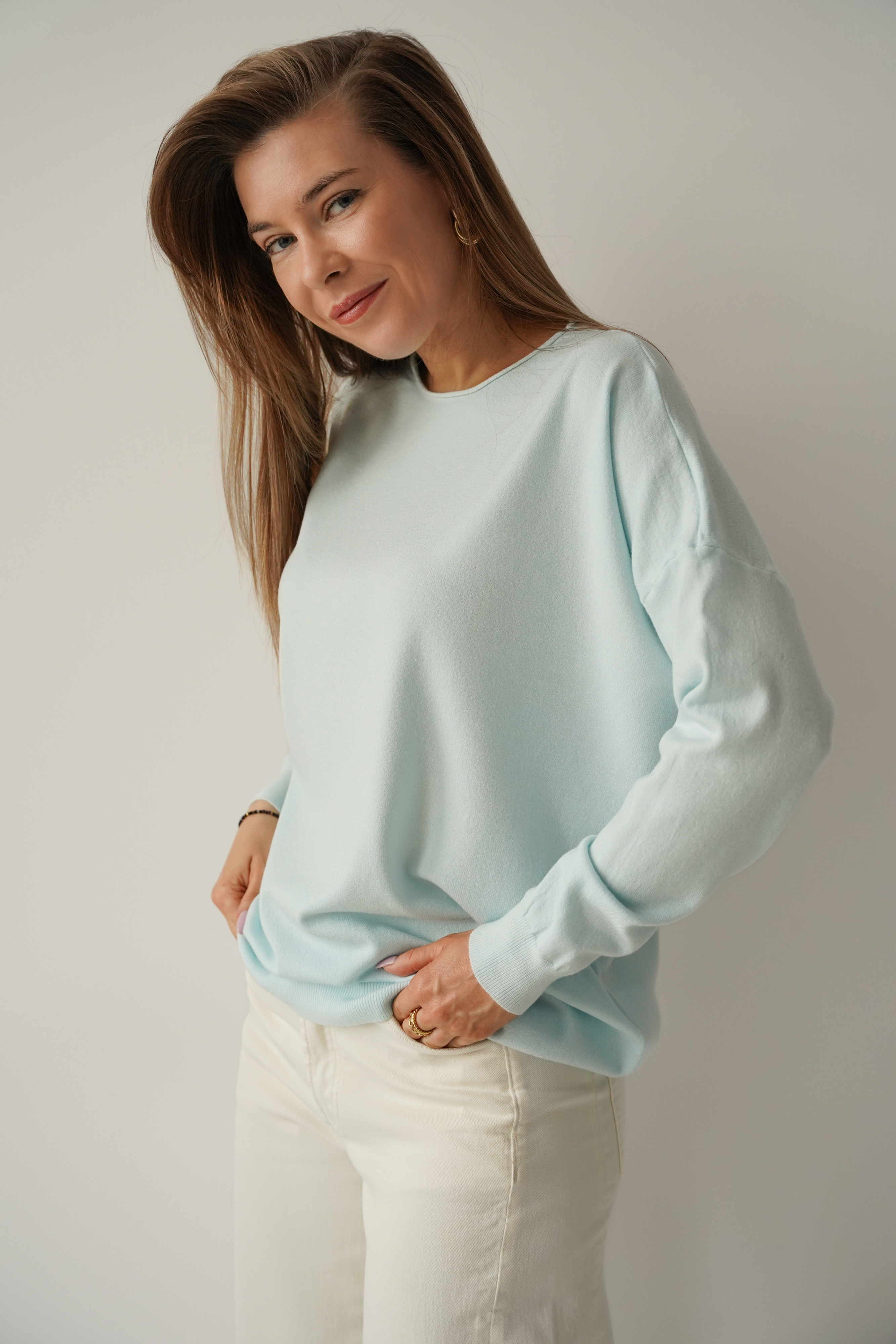Klasyczny luźny sweterek z kaszmirem Ette icy blue