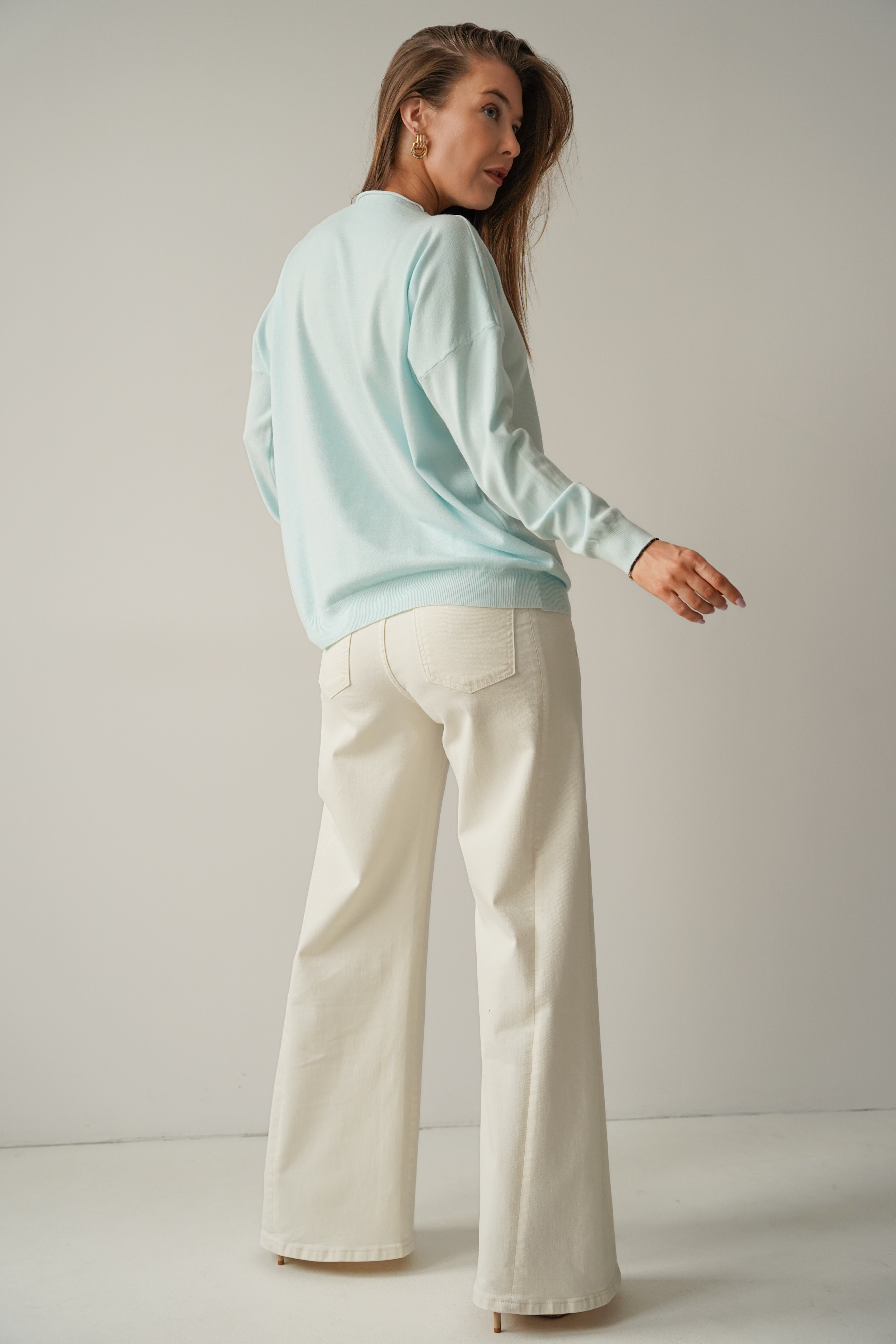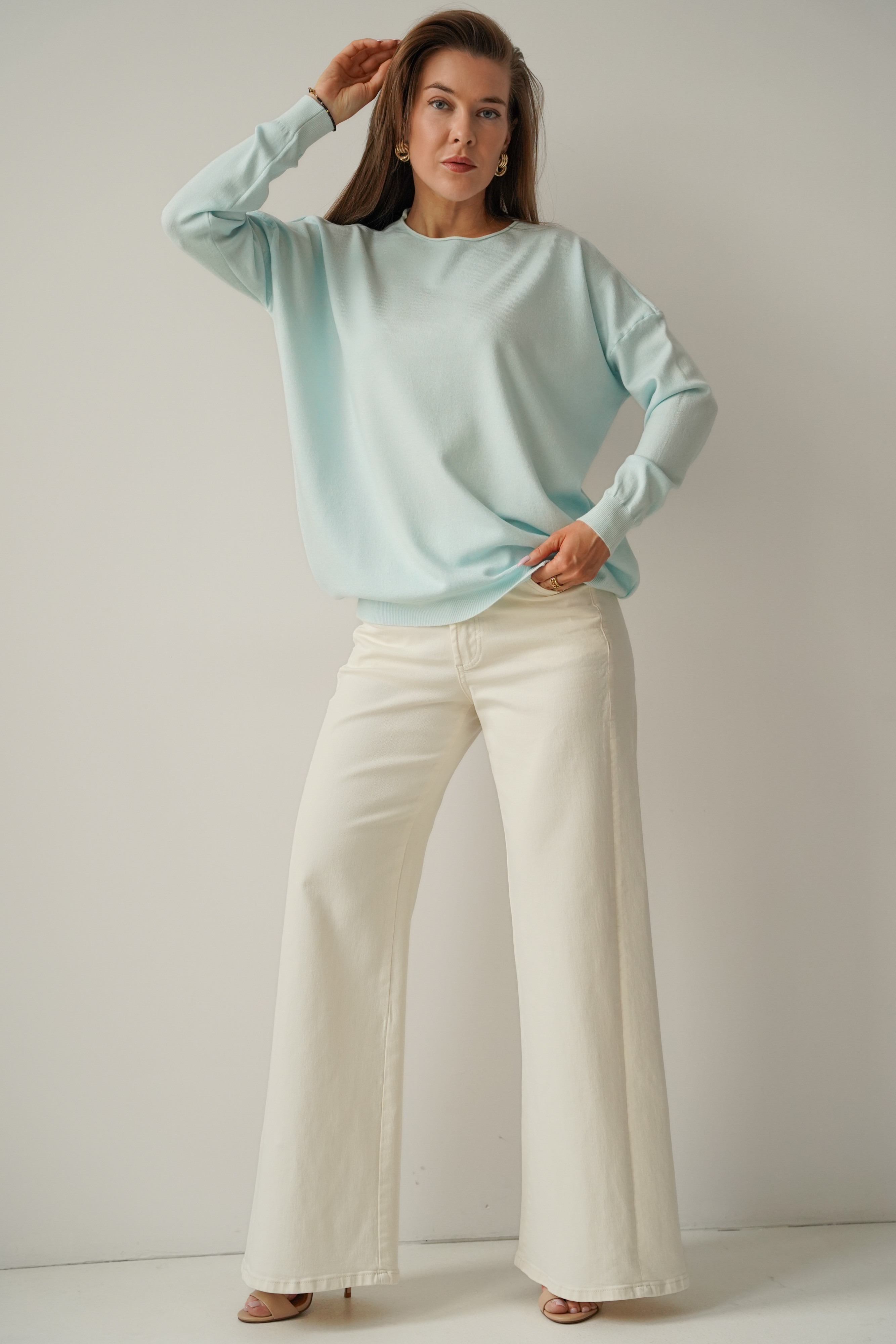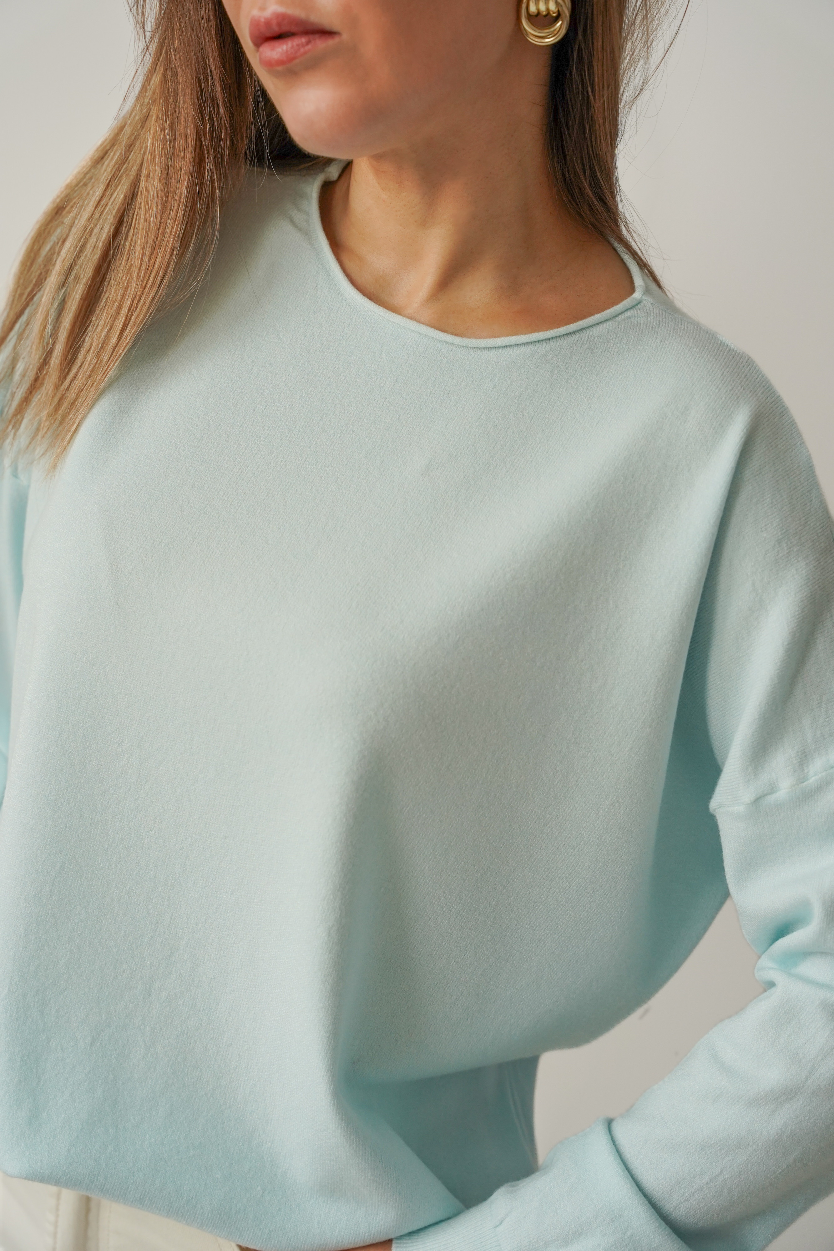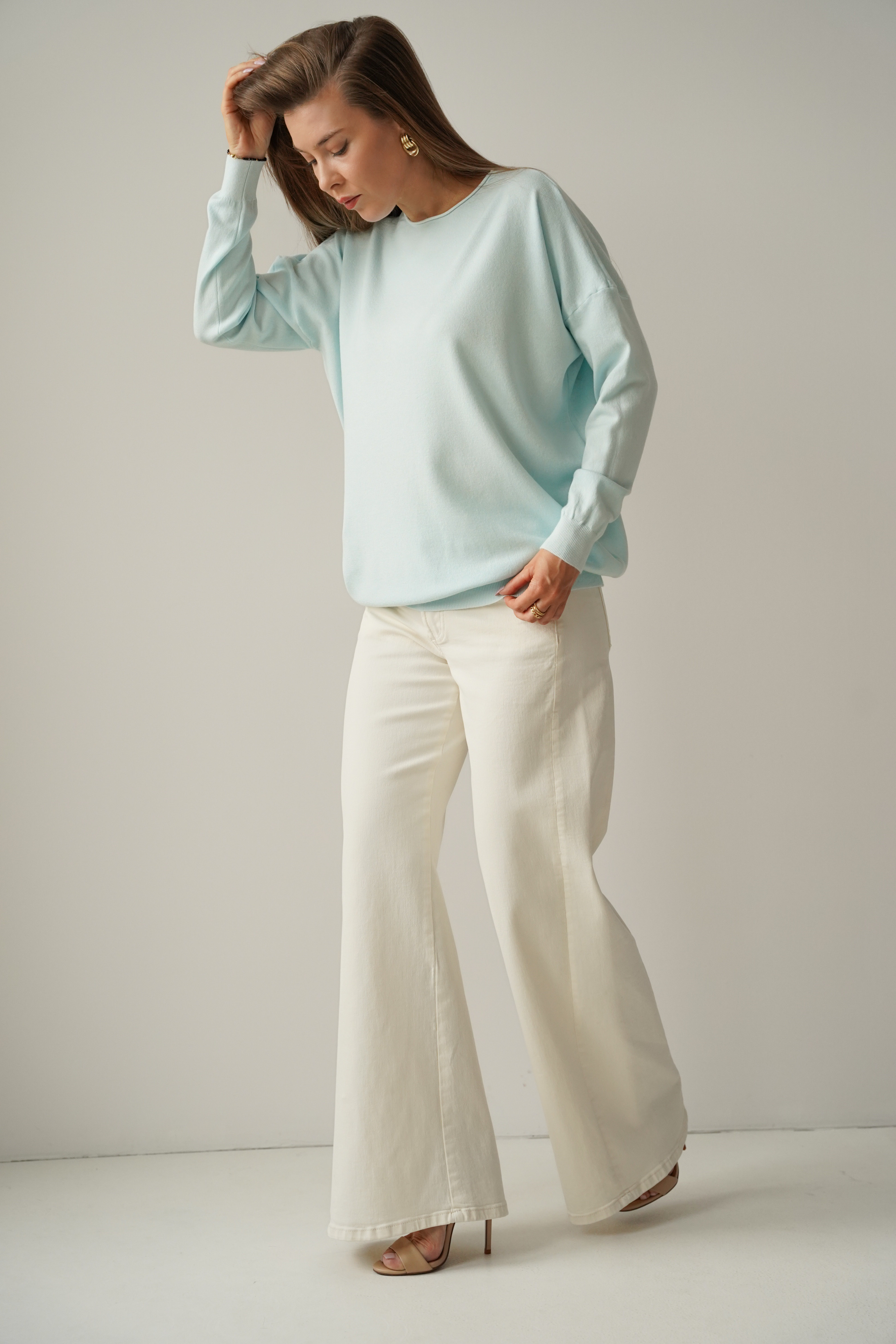 Klasyczny luźny sweterek z kaszmirem Ette icy blue
